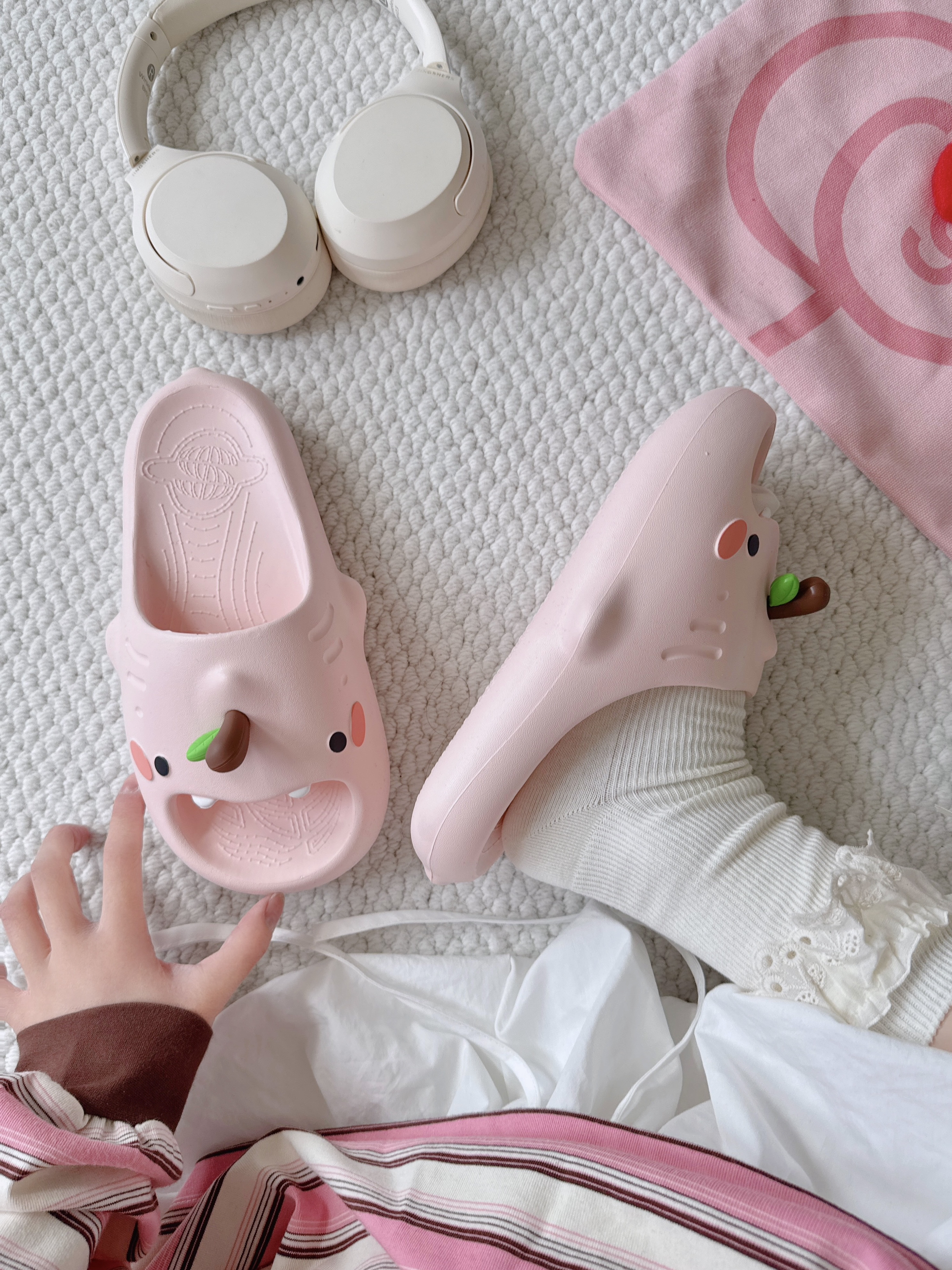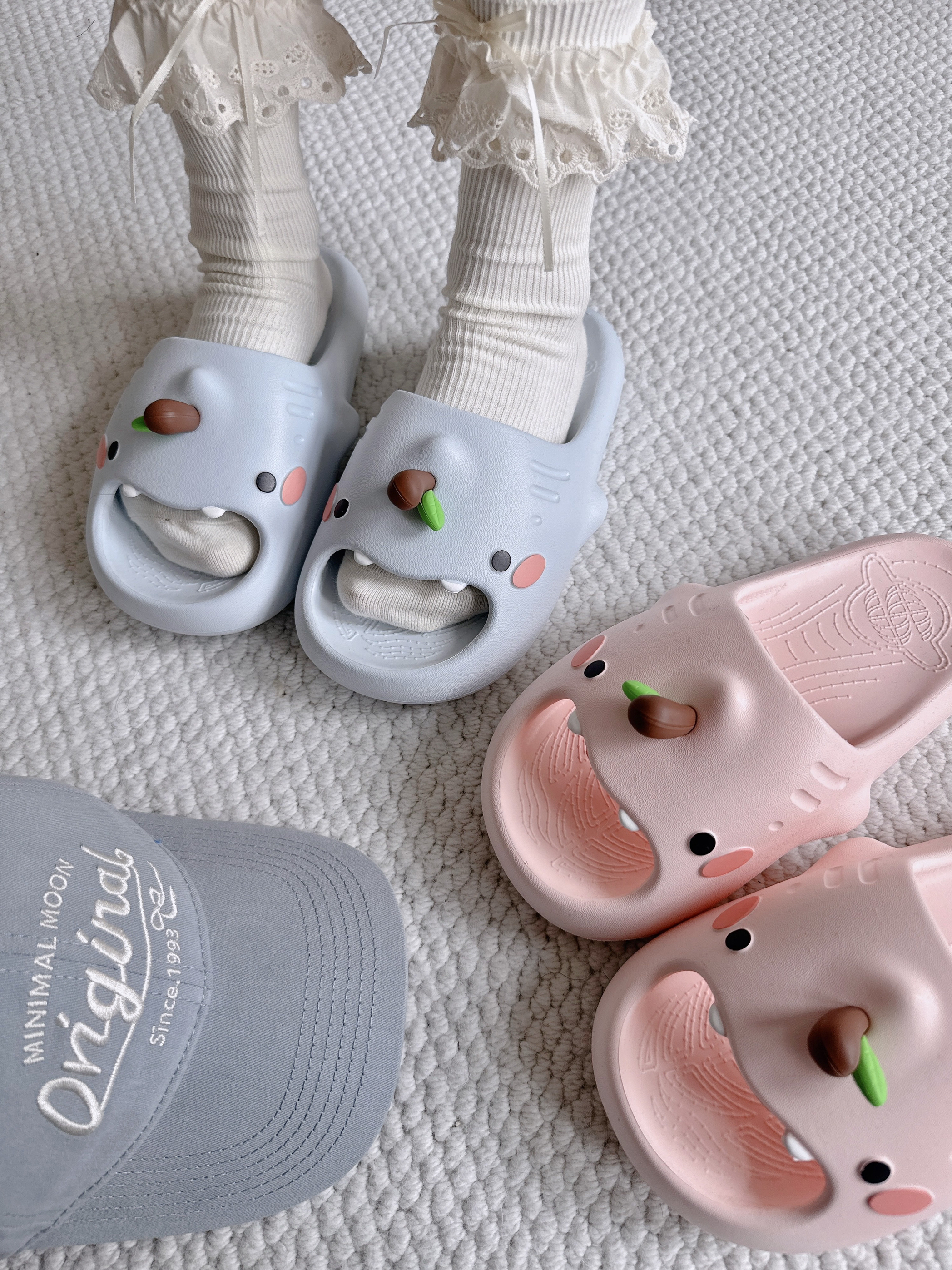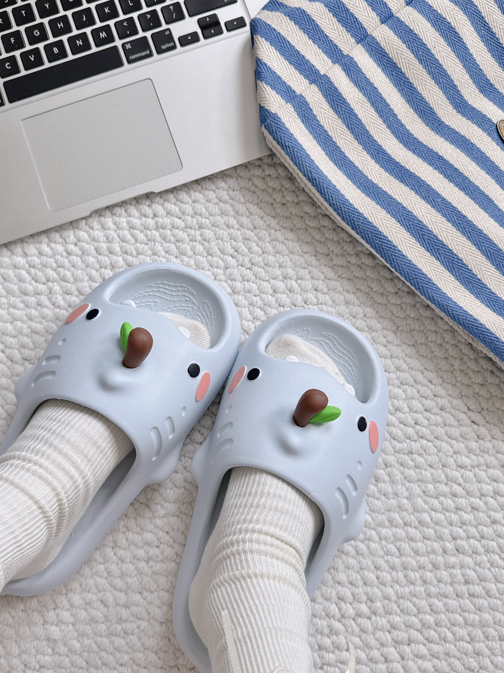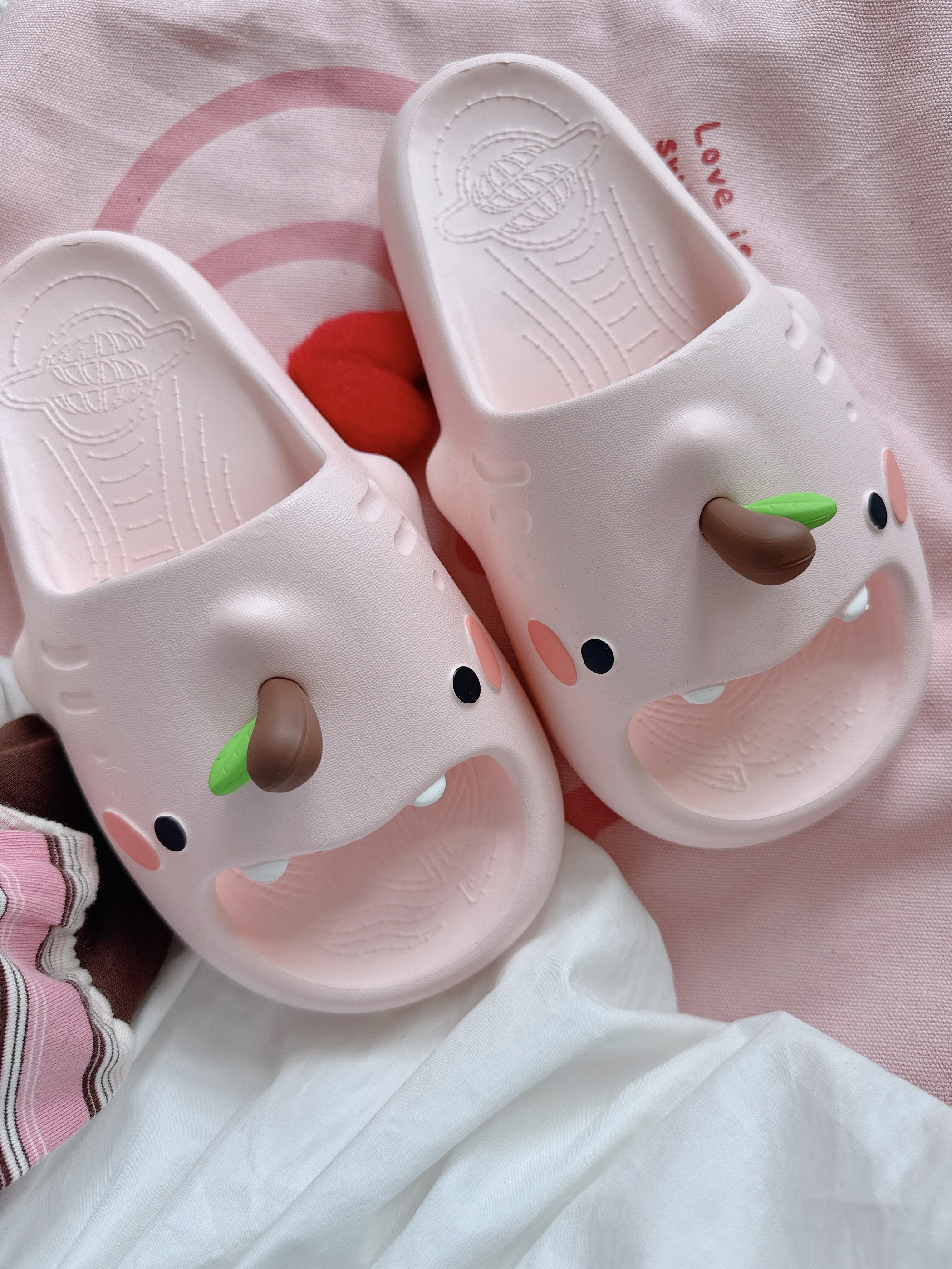 - 𝚌𝚑𝚒𝚔𝚘𝚔𝚞把可爱狠狠拿捏住啦! 苹果鞋花🍎和小奶牙 🦷 一整个被萌住! 3公分的EVA厚底 上脚跟踩在云朵似的☁ 不管是居家还是外出都炒鸡goood~