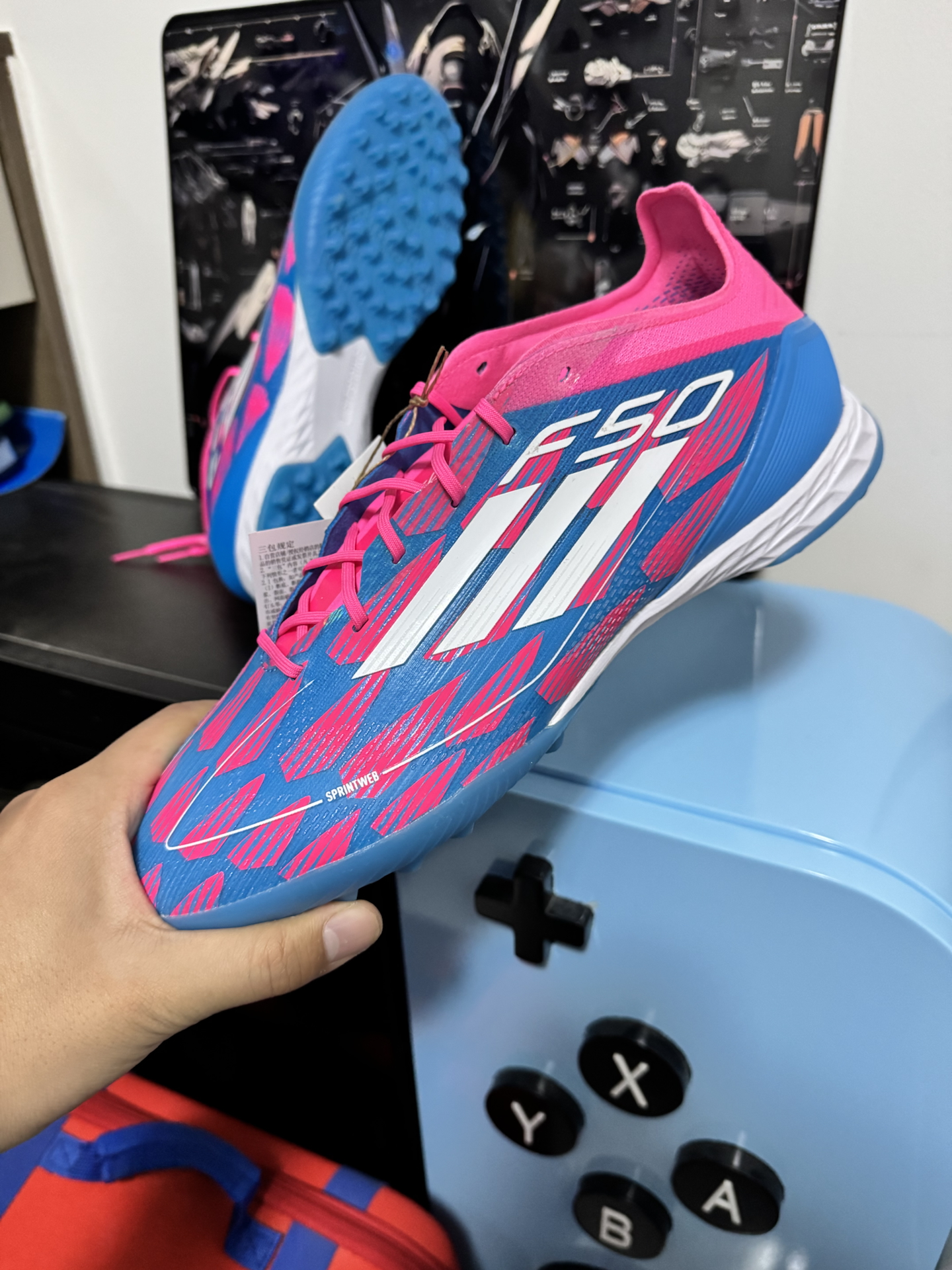 本篇笔记关联了adidas F50 Pro TF 足球鞋 次顶级胶质碎钉人造草地室外硬地缓震 太阳能蓝/白色/荧光粉等商品,为用户提供真实的使用体验和购买参考。