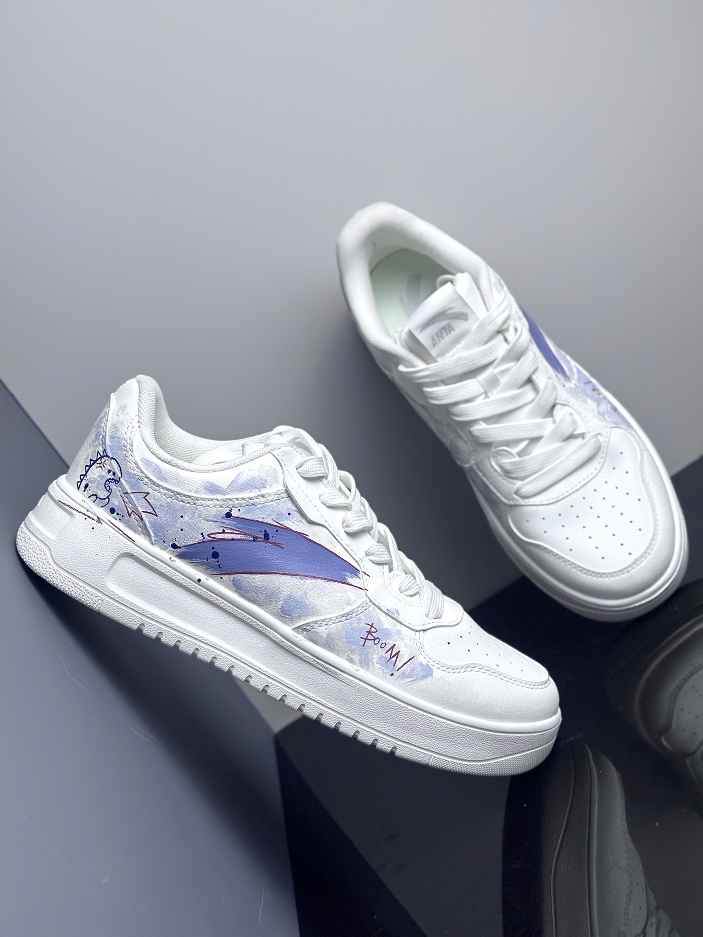 安踏的这款喷火龙涂鸦定制鞋,确实有点被惊艳到‼️ 本身这款小板鞋其实在脚感上就很舒服,中底是发泡材料而不是橡胶大底,所以很轻盈的通勤脚感也很舒软🤌🏻 另外再加上鞋面淡紫色的涂鸦风格,又给整双鞋子的颜值上了个档次。你别说 这个喷火龙还真可爱。😍 走路上完全不会撞鞋的🤏🏻 #可以定制的好礼物 #可以定制的好鞋 #520心随鞋动 #我的出游穿搭鞋子