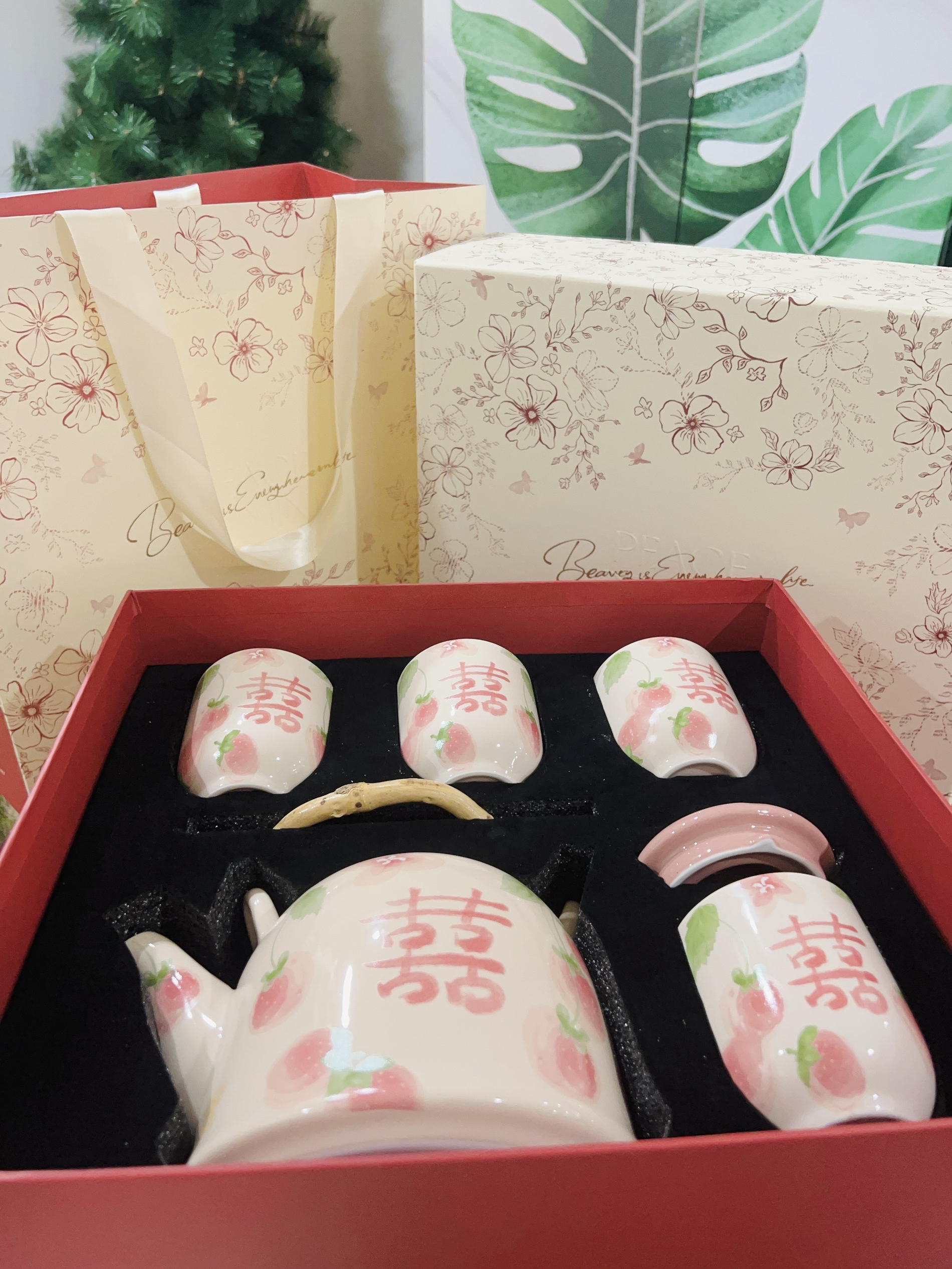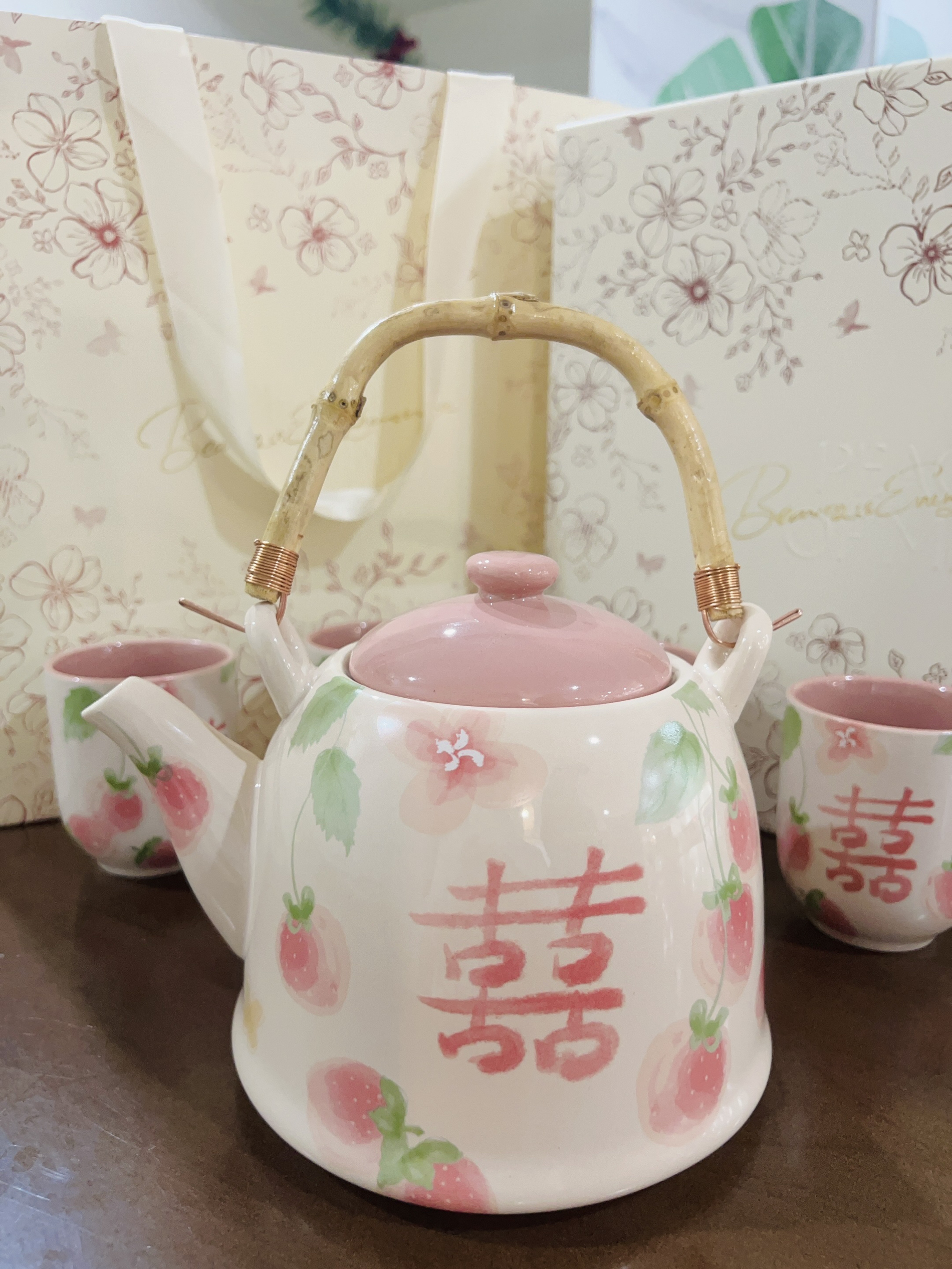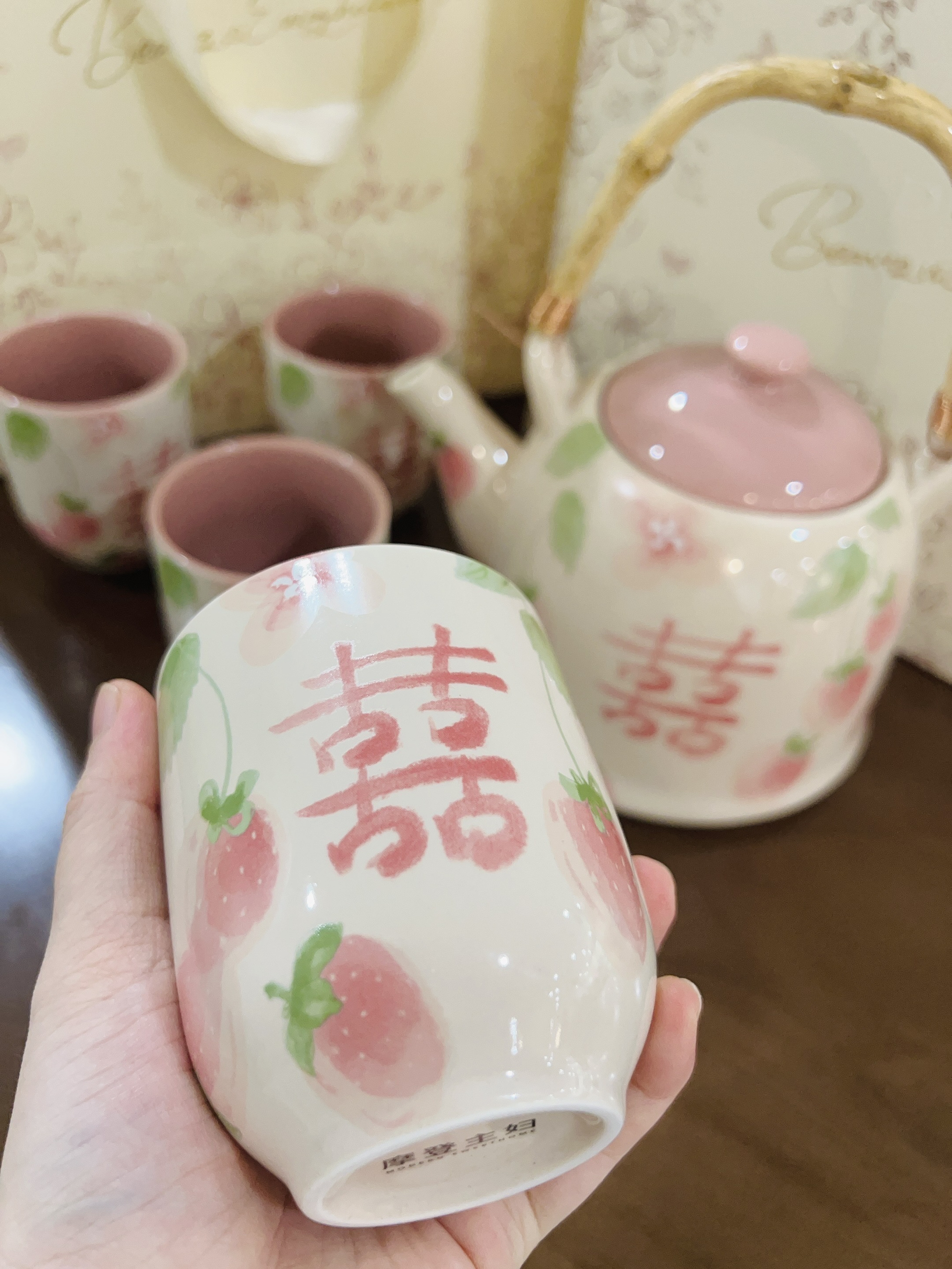 嘿嘿下个月闺闺要结婚了 提前给她准备了礼物🎁 是摩登夫妇家的茶壶套装 粉粉的喜字茶壶茶杯 用来当敬茶都可以的 陶瓷材质厚实 闻着无异味 闺蜜很喜欢 直夸我会挑