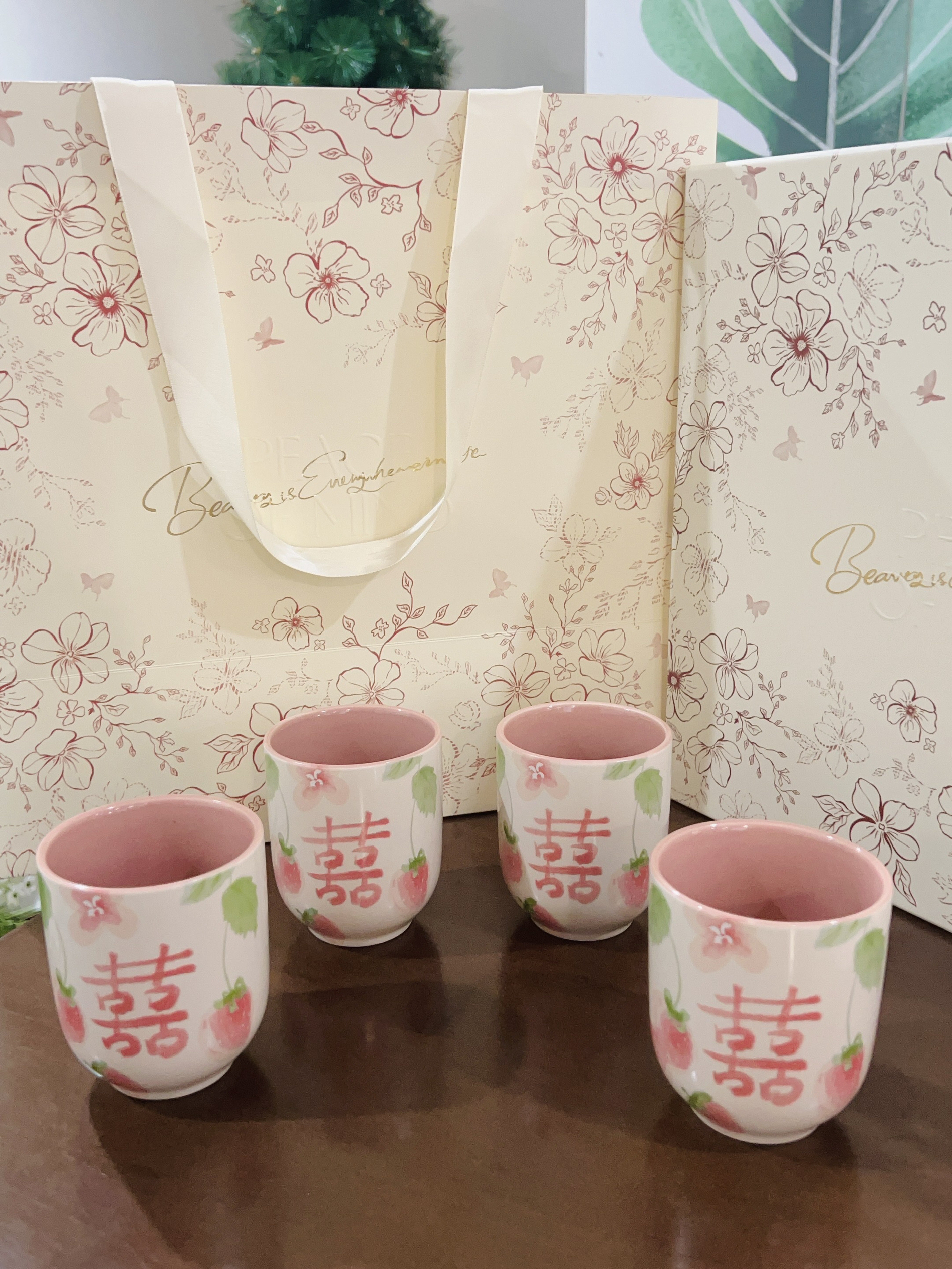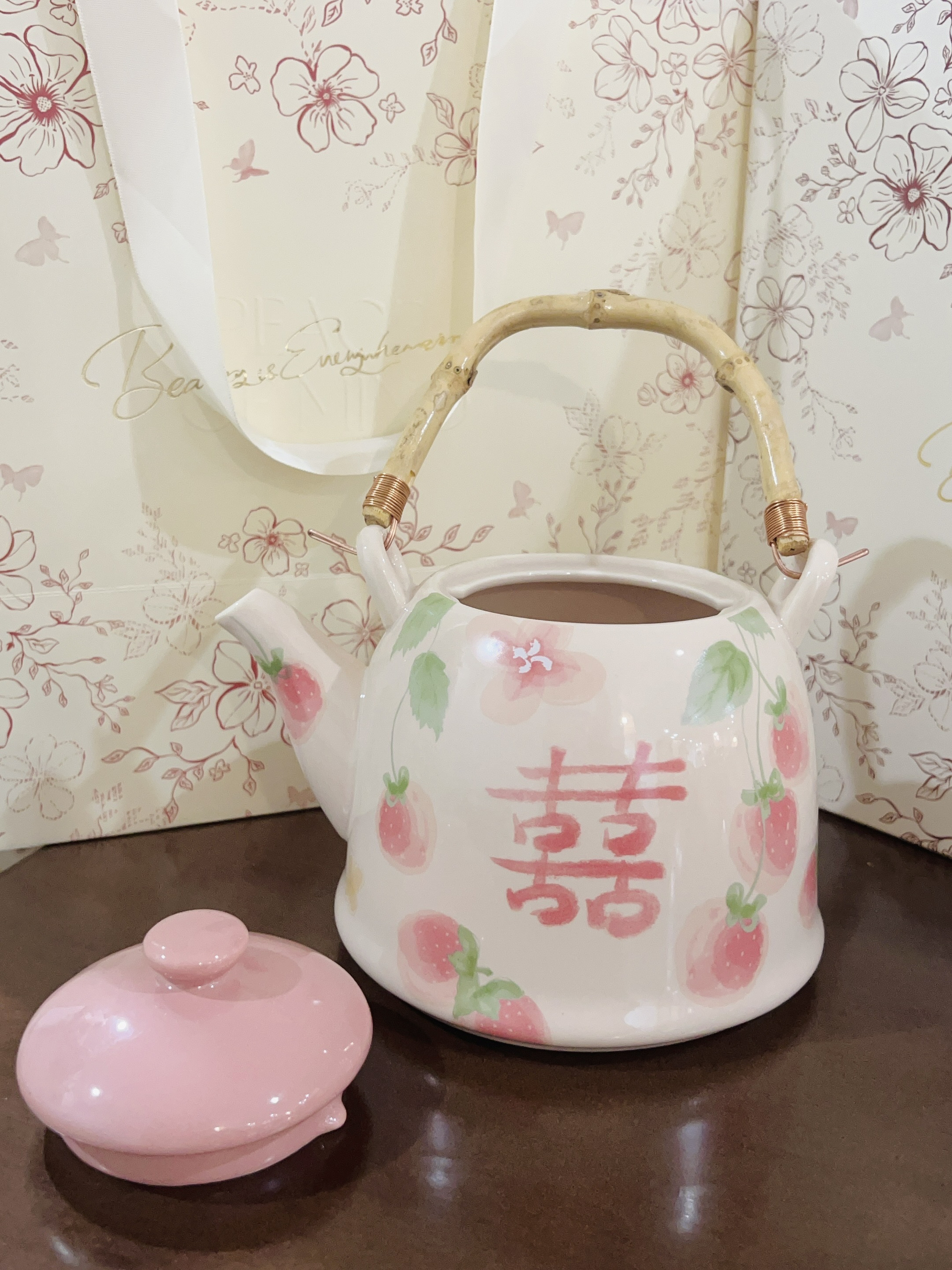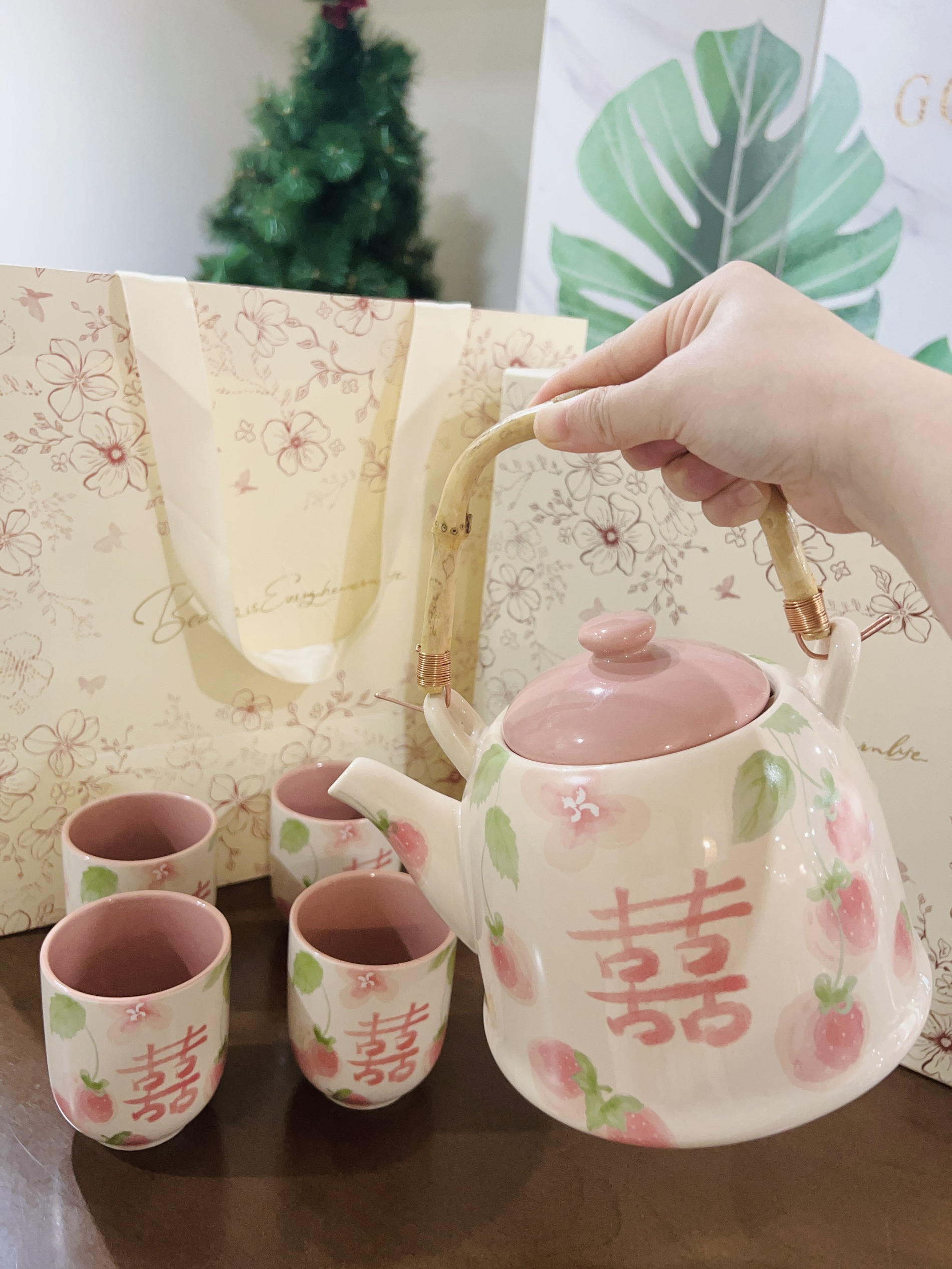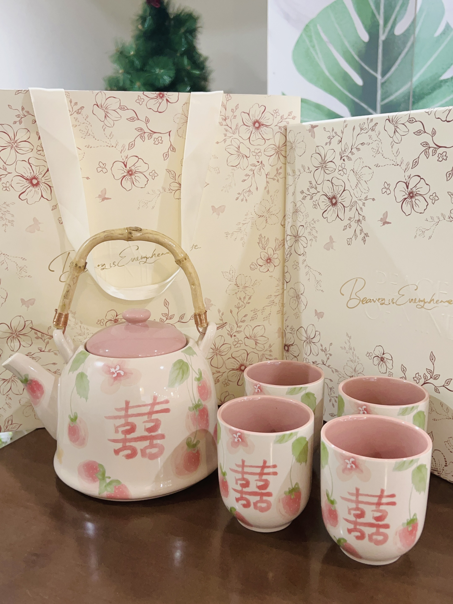 嘿嘿下个月闺闺要结婚了 提前给她准备了礼物🎁 是摩登夫妇家的茶壶套装 粉粉的喜字茶壶茶杯 用来当敬茶都可以的 陶瓷材质厚实 闻着无异味 闺蜜很喜欢 直夸我会挑