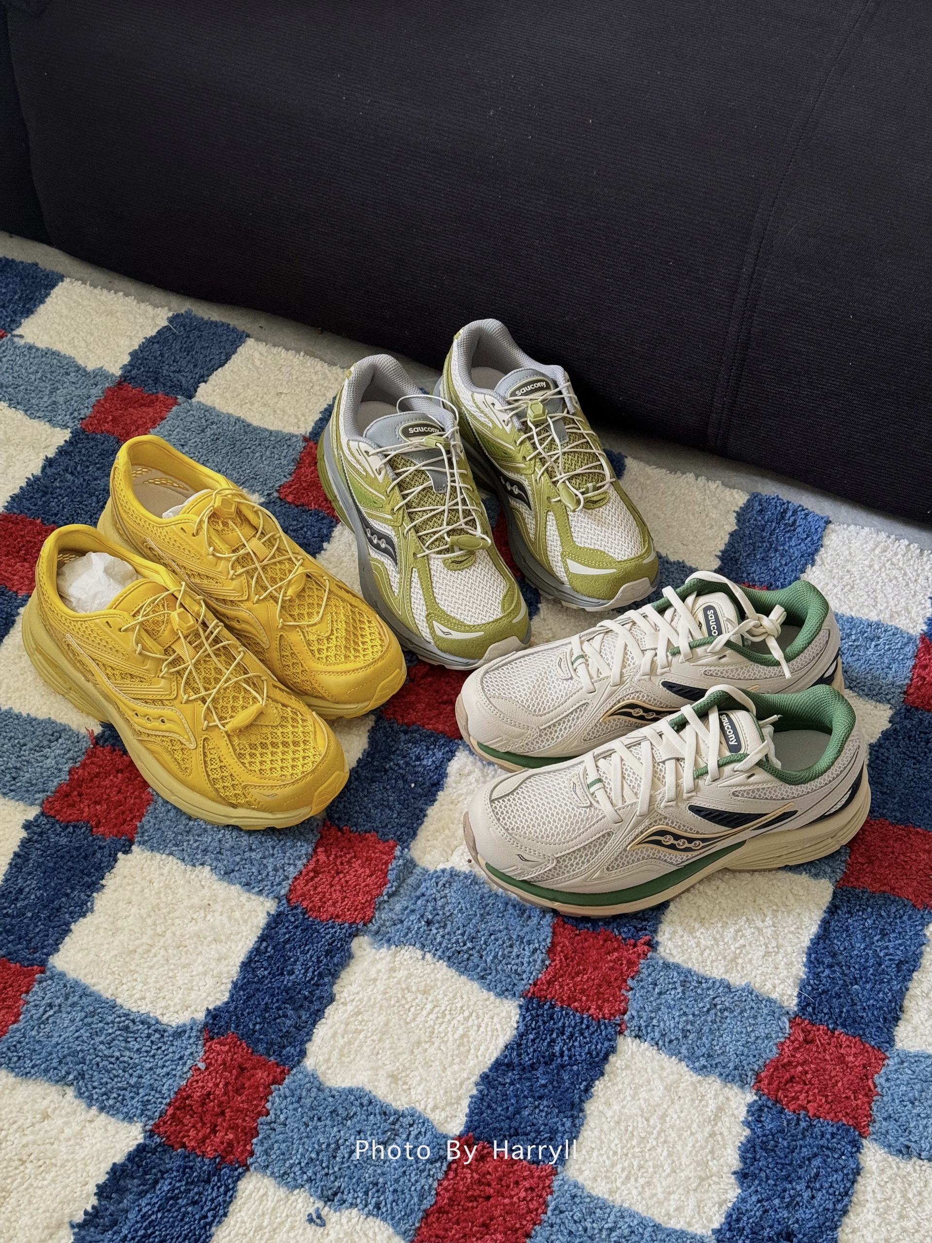 索康尼复古跑鞋又好看又舒服 同事买了三个颜色想留一个 太难了! 黄色的很夏天 绿色的很清爽鞋带部分很喜欢 米白色的四季都能搭 这可难倒我了~