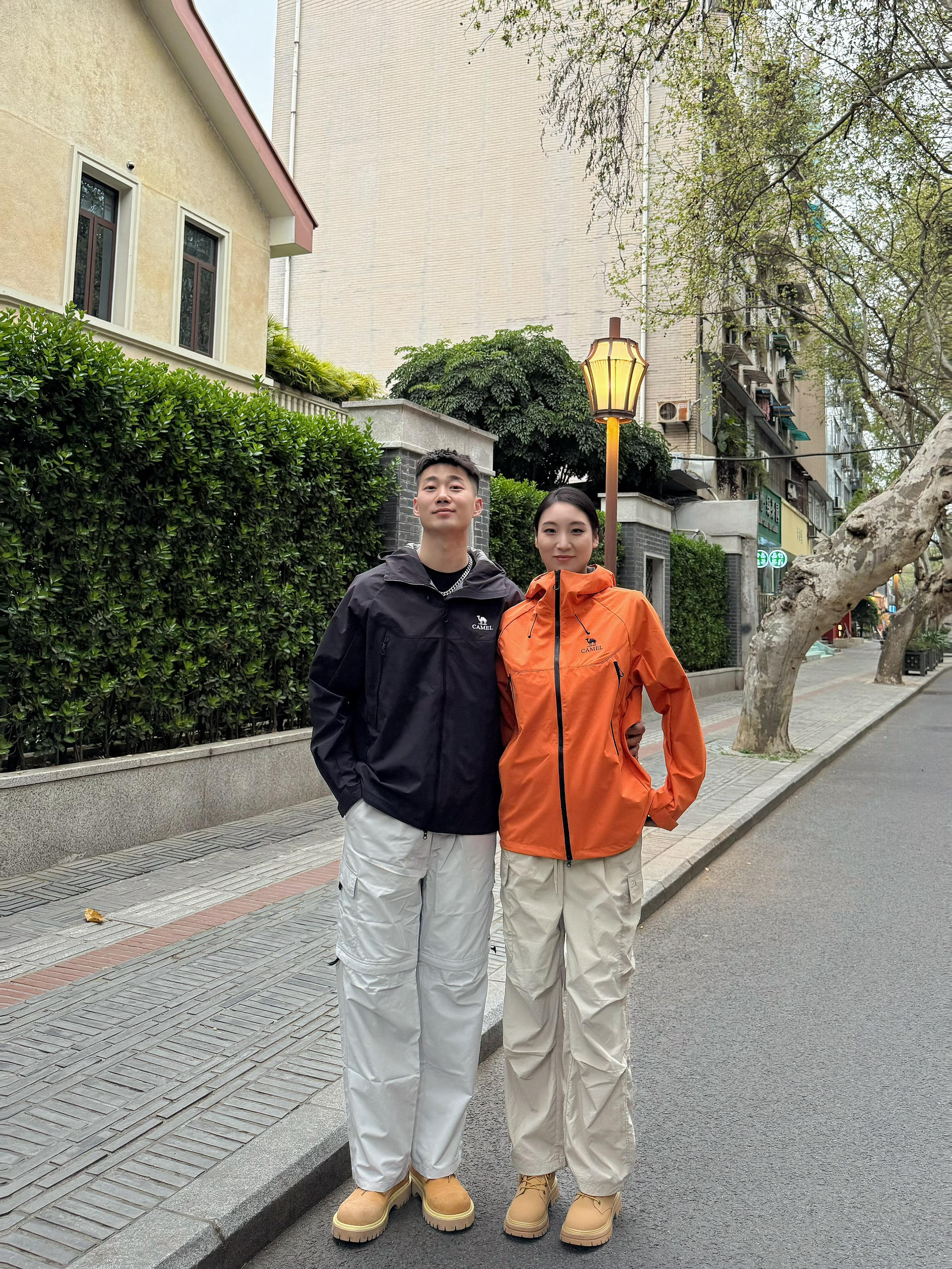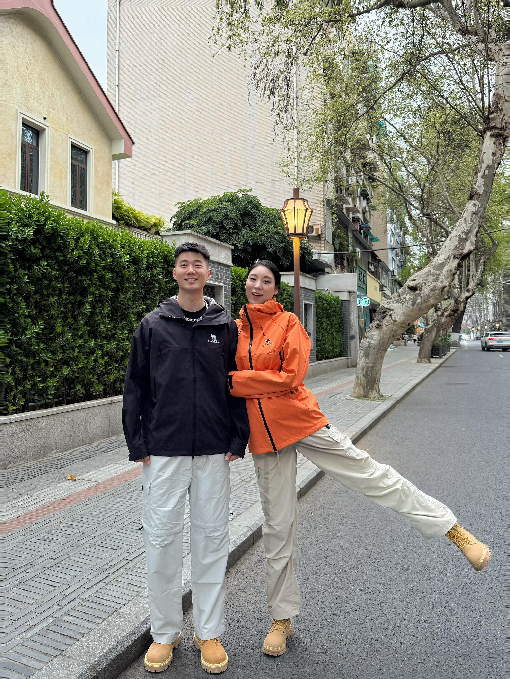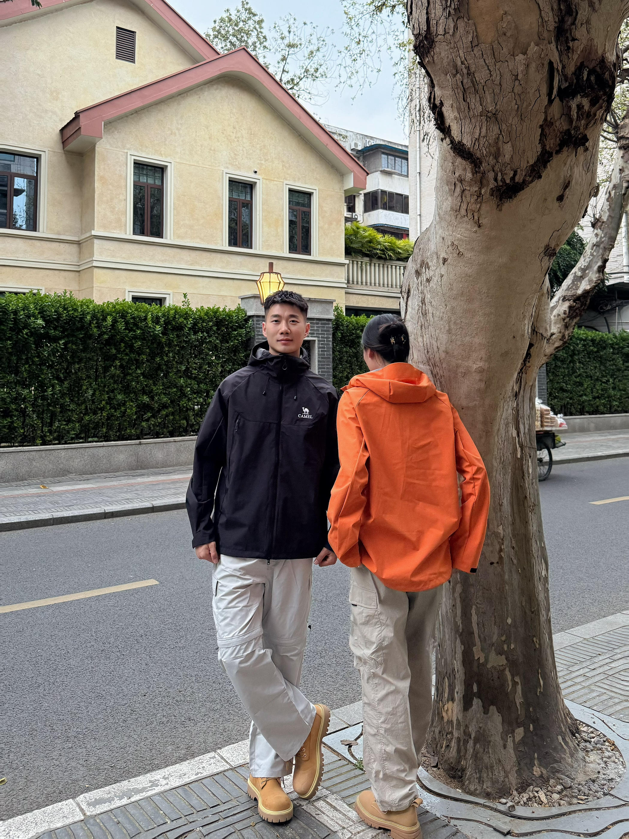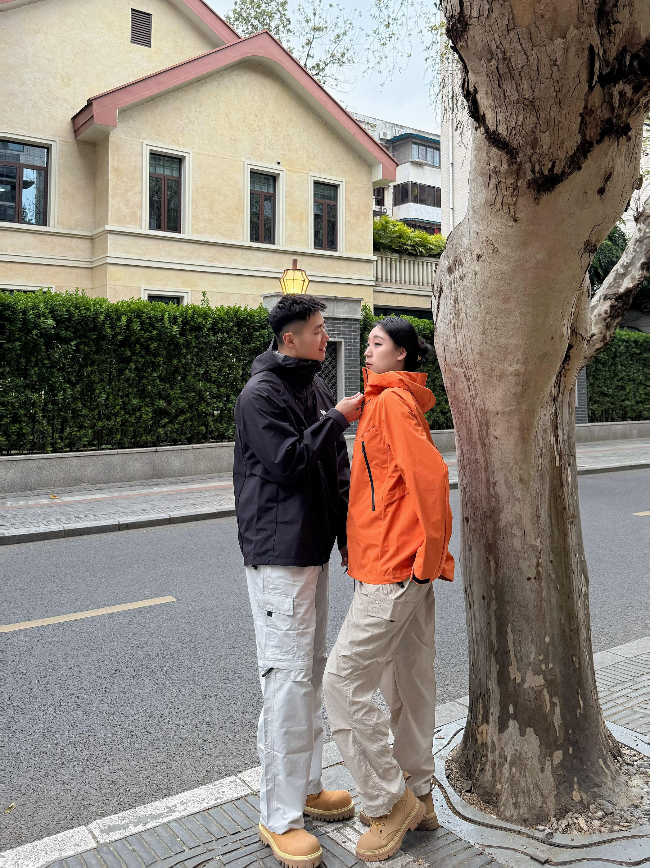 最近天气好好~ 必须和男朋友来一场walk 阳光☀️和漫步 🚶真是生活的解药! - 穿骆驼冲锋衣在城市里寻找自我 一套街头拽哥拽姐的冲锋衣outft😎 简单的黑色搭配橙色系 CP感满满 裤子👖在选择一条工装裤 高级不失运动感! 骆驼🐪你还是太懂我了~