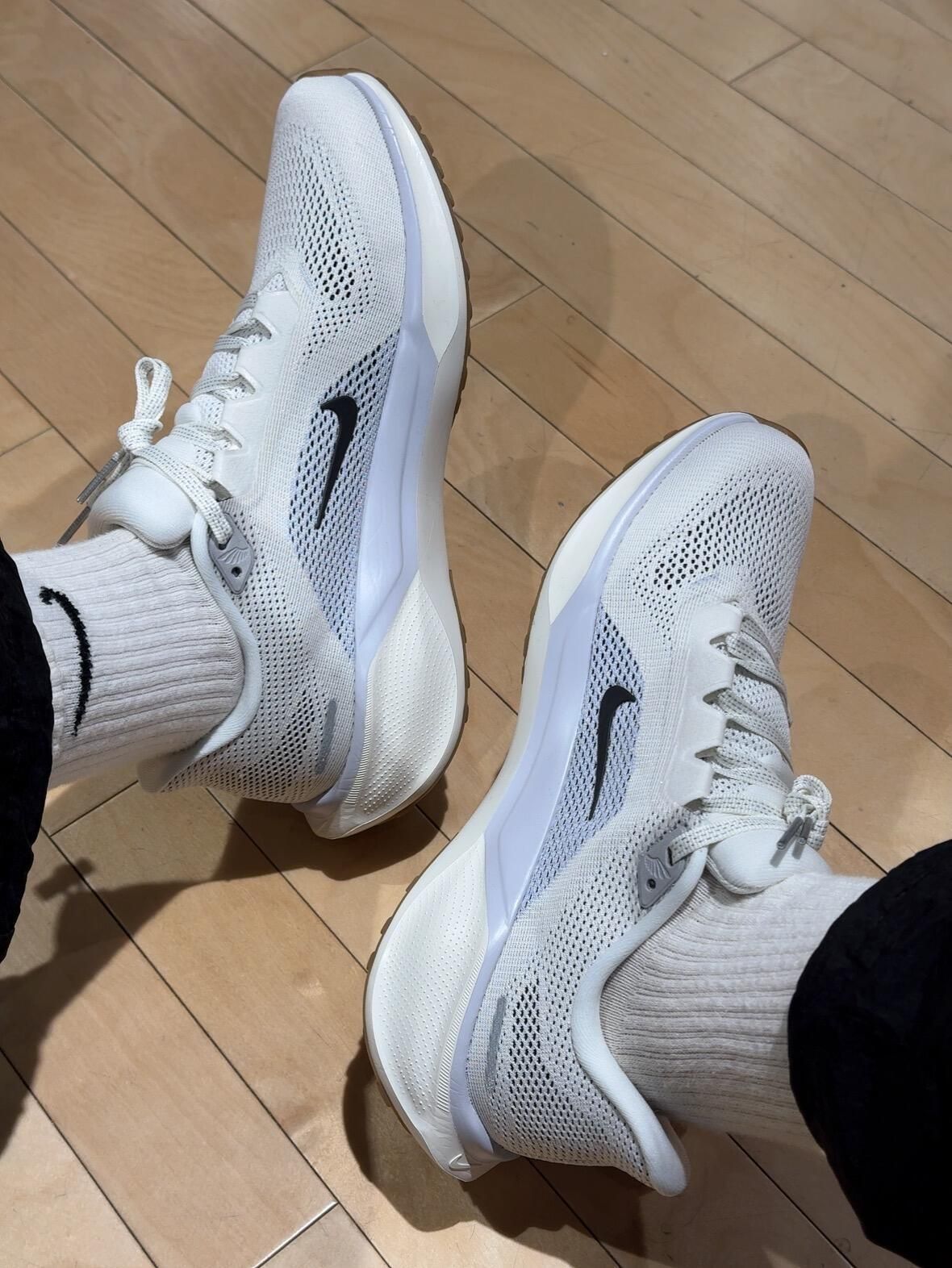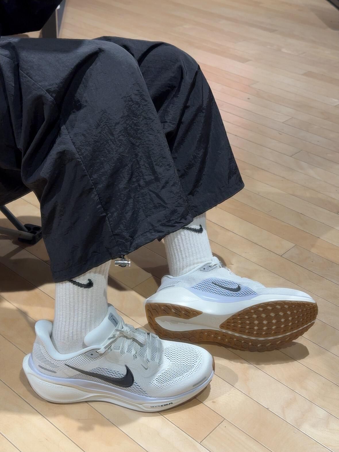 百搭又舒适的跑鞋天花板,这双Pegasus 41的米灰色真的绝了!低调高级的灰调搭配一点暖米色,日常穿搭完全无压力鞋子一年四季都能穿! 尺码正合适按平时穿开耐克跑鞋一样不会偏码 鞋身线条流畅,上脚瞬间提升整体质感~飞马41暴走后的感受可以说是目前穿过最合适的通勤鞋, 鞋面延展性较好鞋身也没有硌脚的压胶 透气还不错中底是一种绵密的软弹感。