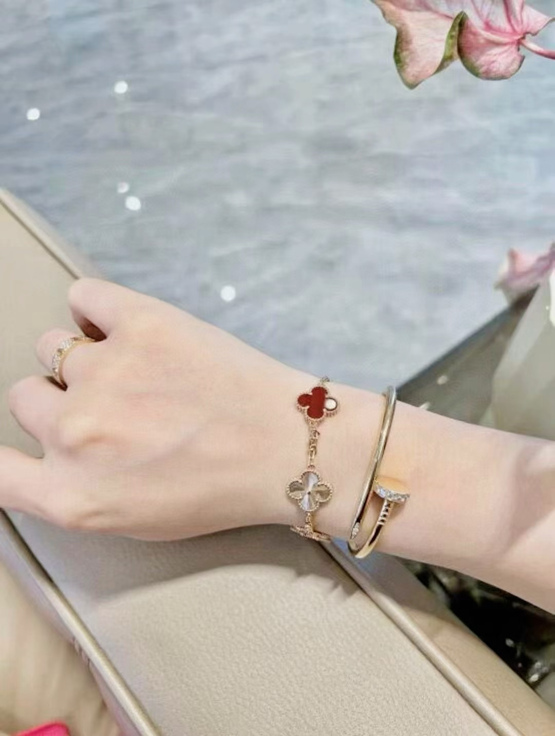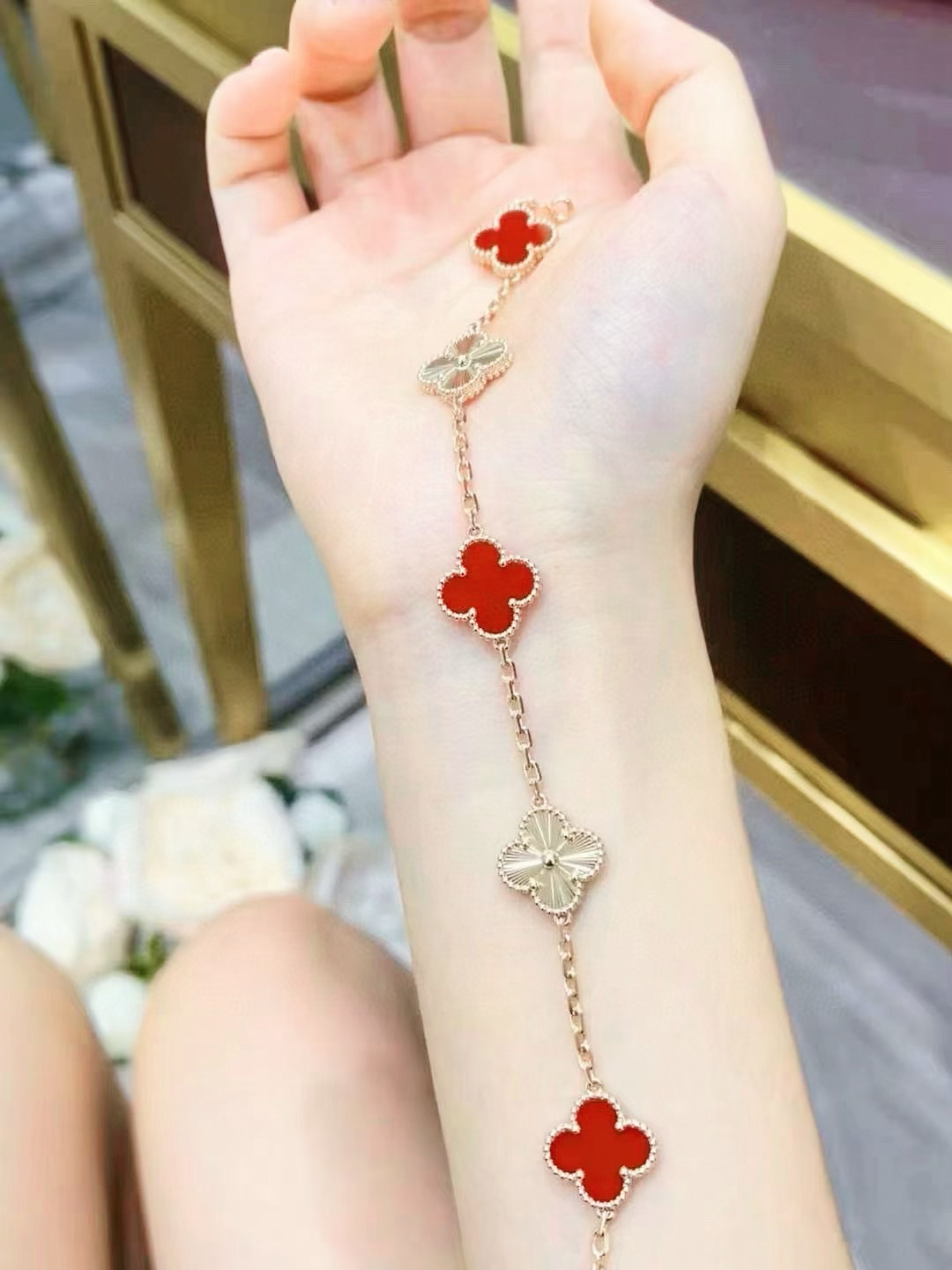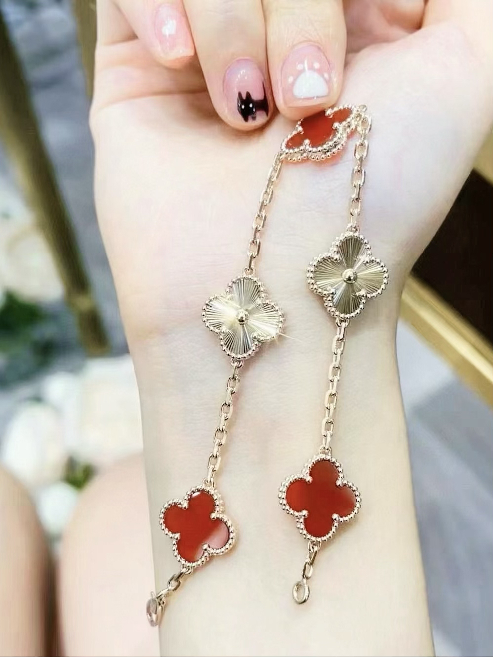 本篇笔记关联了Van Cleef&Arpels/梵克雅宝 Vintage Alhambra四叶草幸运五花黑玛瑙手链 ARA41800 玫瑰金(红玉髓)vcarp7rp00等商品,为用户提供真实的使用体验和购买参考。