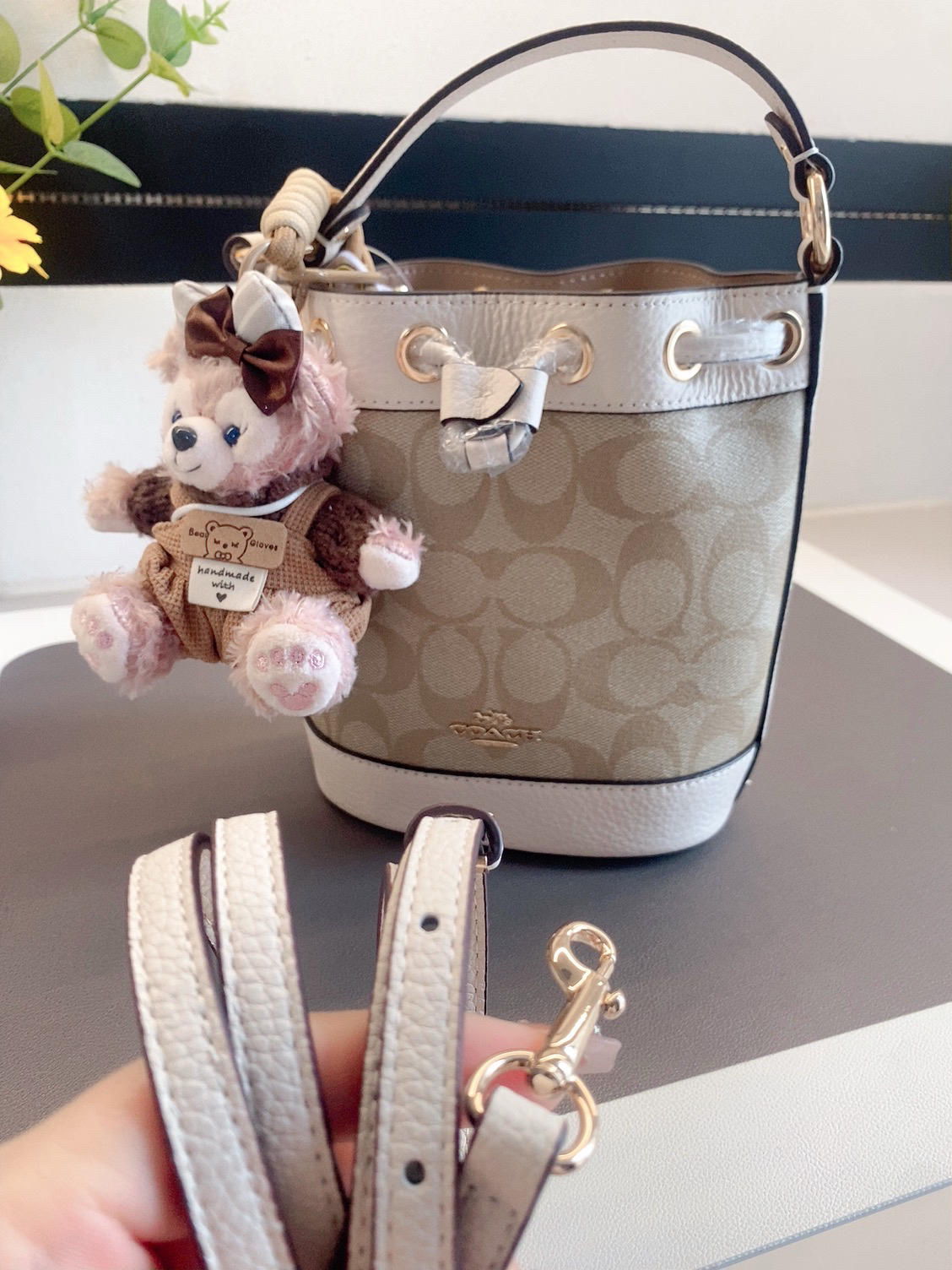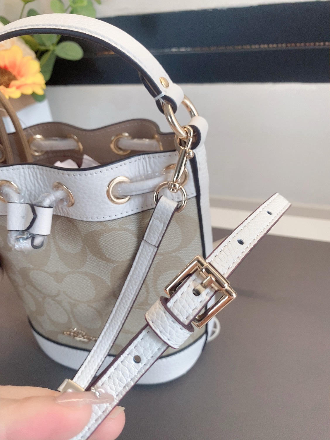 本篇笔记关联了Coach Dempsey 15 小号 经典老花牛皮配皮新年礼物水桶包单肩手提斜挎包 浅卡其色等商品,为用户提供真实的使用体验和购买参考。