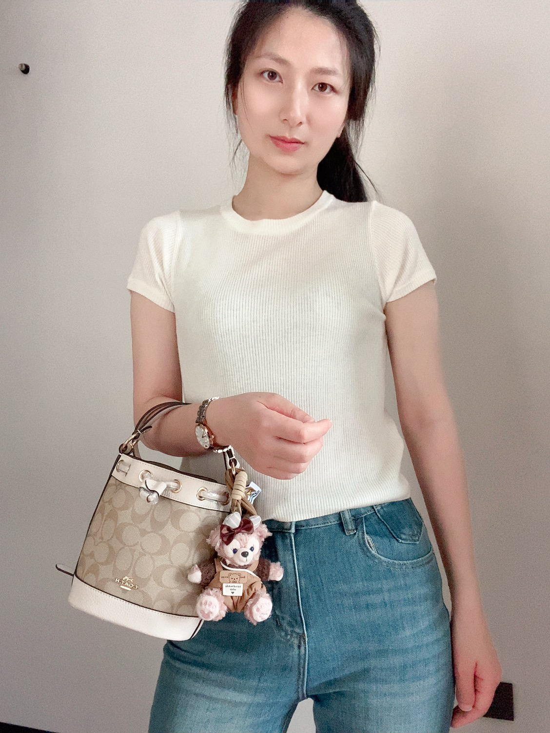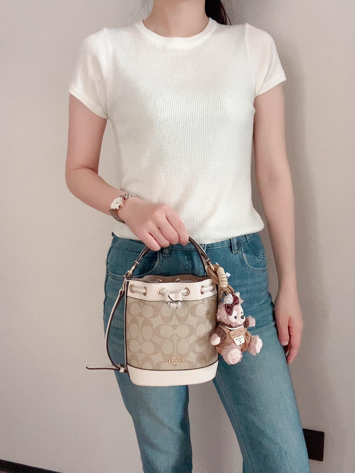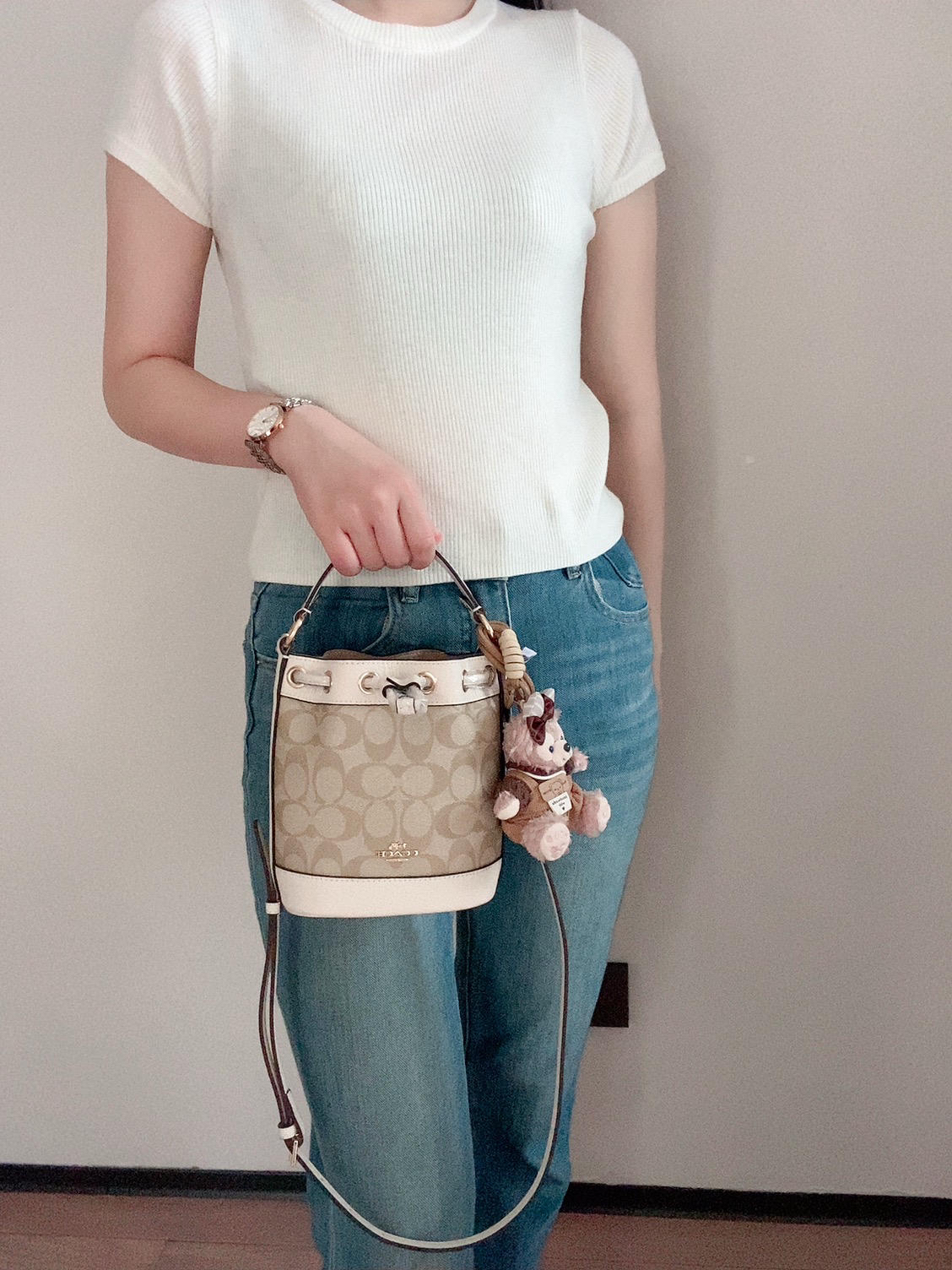 谁说这桶小哦,放得东西真不少呢!好看🤩 本来是个黑色的宽肩带,我给换了根细的哦 突然觉得越来越灵气精致了我的包
