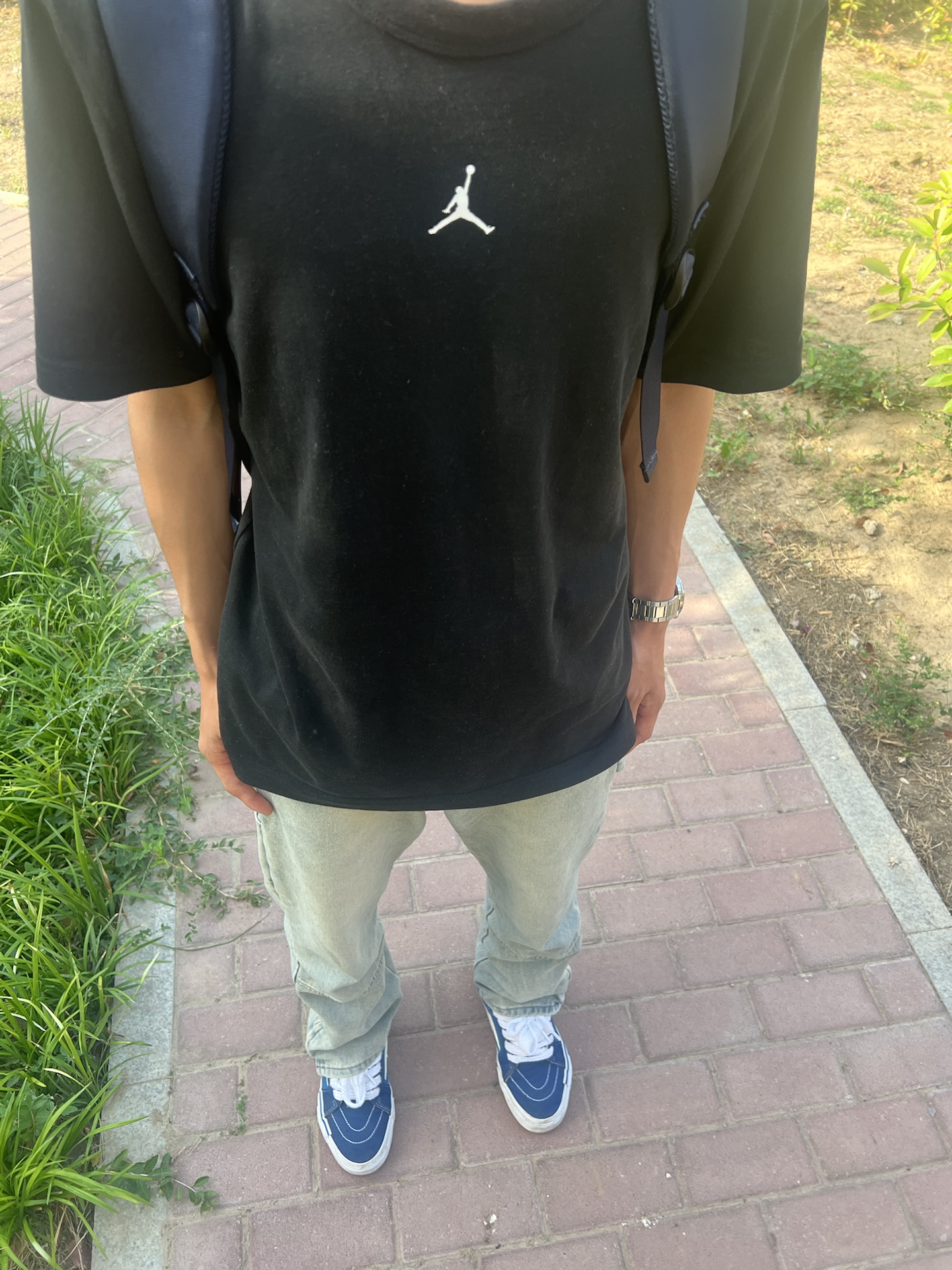 👕:简约不简单的黑色Air JordanT恤,作为耐克旗下极具标志性的单品,它以经典飞人logo点睛,不仅承载着篮球运动的热血基因,更自带潮流属性。纯棉面料带来舒适亲肤的穿着体验,百搭属性适配各种风格下装,无论是活力运动风,还是随性街头风,都能轻松驾驭,是日常出街彰显个性与品味的绝佳选择。 👖:这条浅灰色牛仔长裤,经典牛仔材质,挺括又耐磨。宽松直筒的版型,巧妙修饰腿部线条,包容各种腿型。简约的设计...