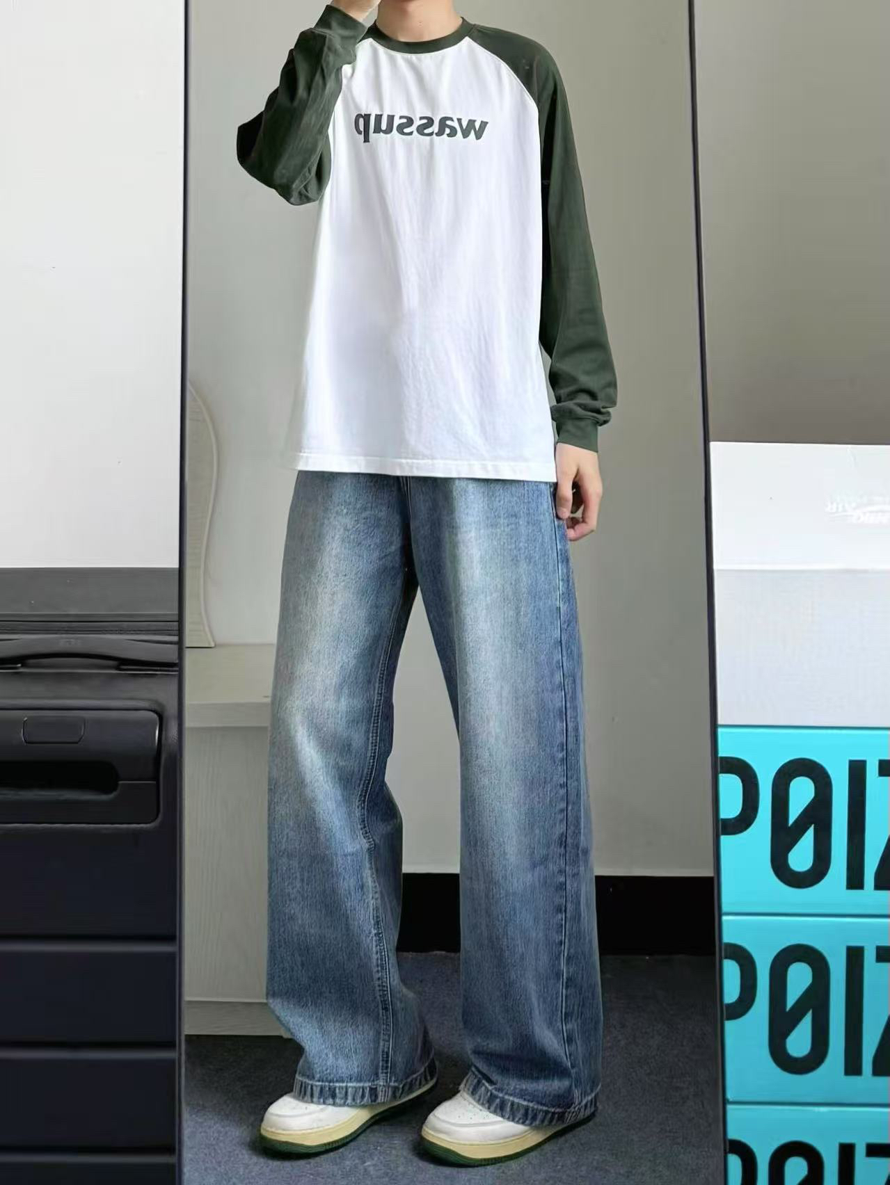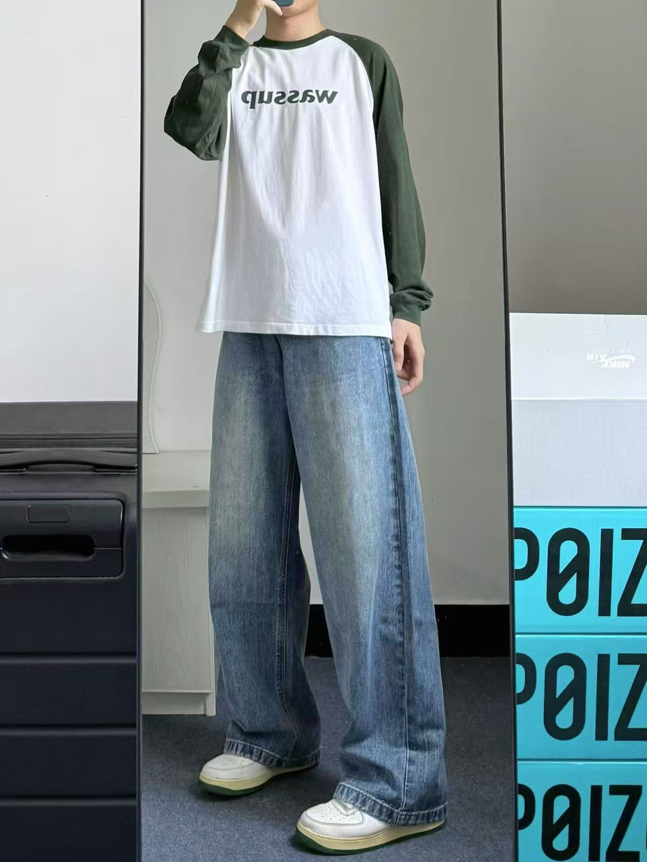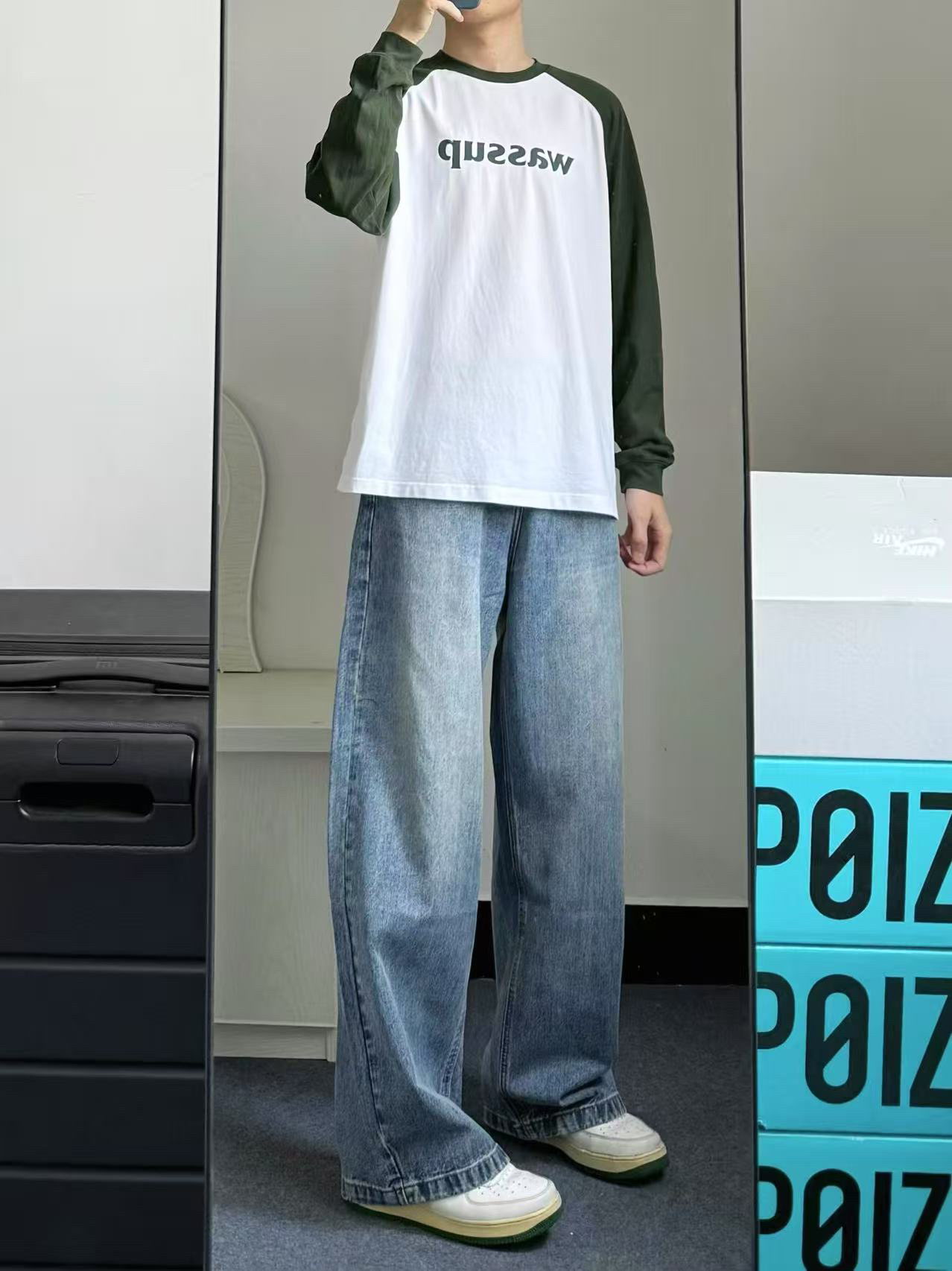 今天这件wassup的插肩T恤我真的爱了😍 搭配宽松版型的牛仔裤和空军一号白鞋🙋 这一身简约干净耐看🤩