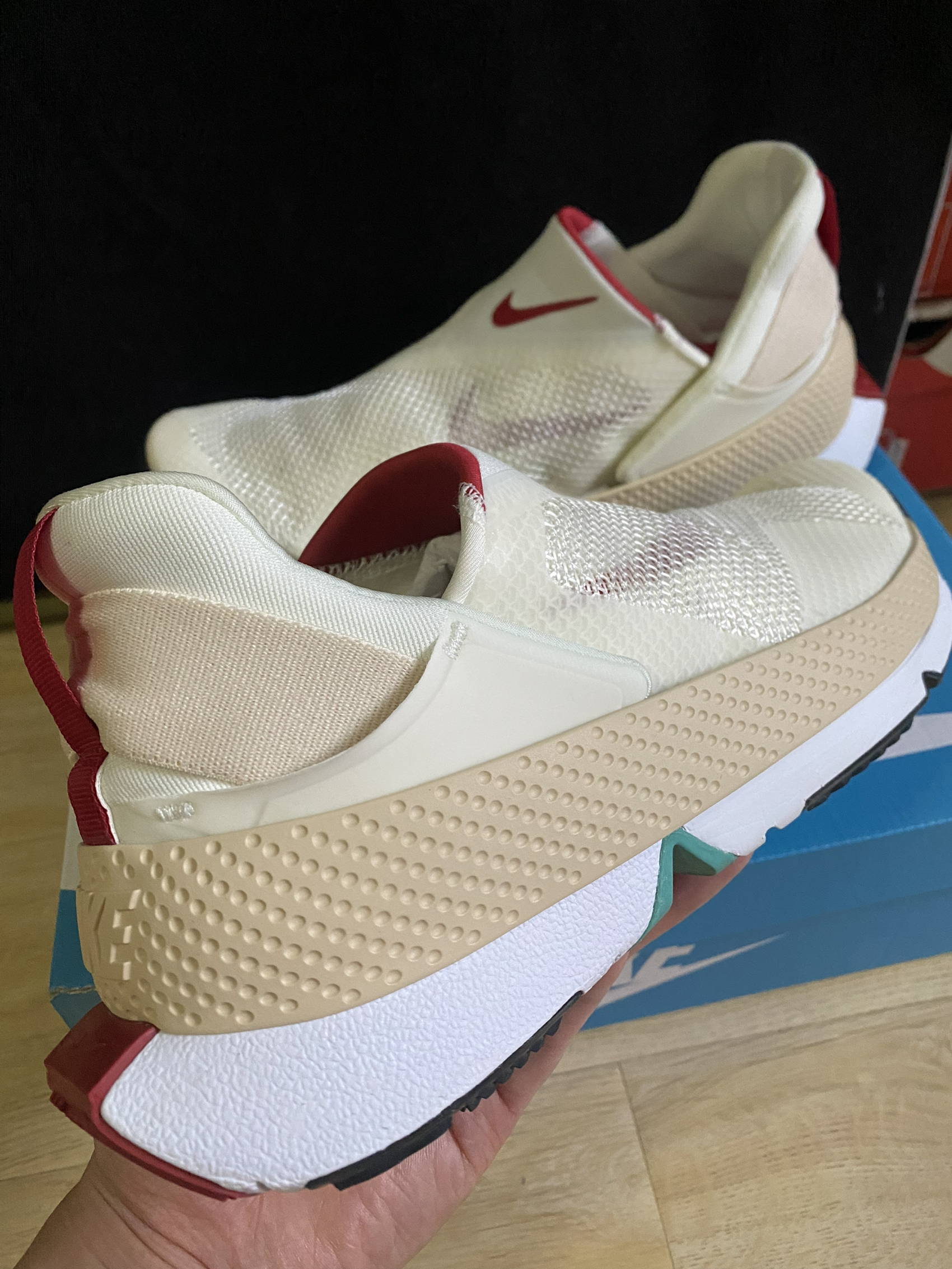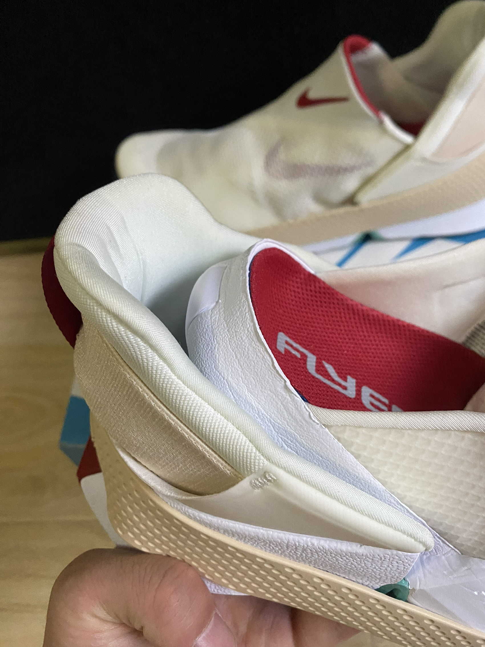 Nike Go FlyEase米红色 1. 双稳态铰链技术 采用铰链连接中底前后部分,通过双稳态结构实现鞋子在开放和闭合状态间的切换。穿脱时无需手动调整,脚部压力即可触发中底形变,实现“一脚蹬"效果 2. 鞋面结构 •材质:以轻质网布为主,搭配局部加固织物提升透气性与支撑性 •设计:无鞋带结构配合宽大领口,增强穿脱便利性;部分版本采用内靴设计提升包裹感 3. 中底与鞋底 •中底采用弧形弯折设计(约...