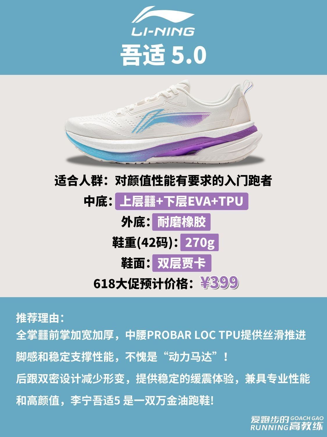 618还在纠结买啥跑鞋❓ 今天安利5双李宁既能通勤又能运动的宝藏鞋款,颜值性能双在线~ ✨#李宁追风pro ——前掌弜科技+全掌䨻,回弹明显!分趾碳板加持,提速更快,转弯也更灵活,SGU大底科技提供超强抓地力、花梳网面清凉透气适应夏训需求,弯道提速更稳更快,是一双场地竞训的好搭子! 💥吾适5S 5.0——全掌䨻前掌加宽加厚,中腰PROBAR LOC TPU提供丝滑推进脚感和稳定支撑性能,不愧是...