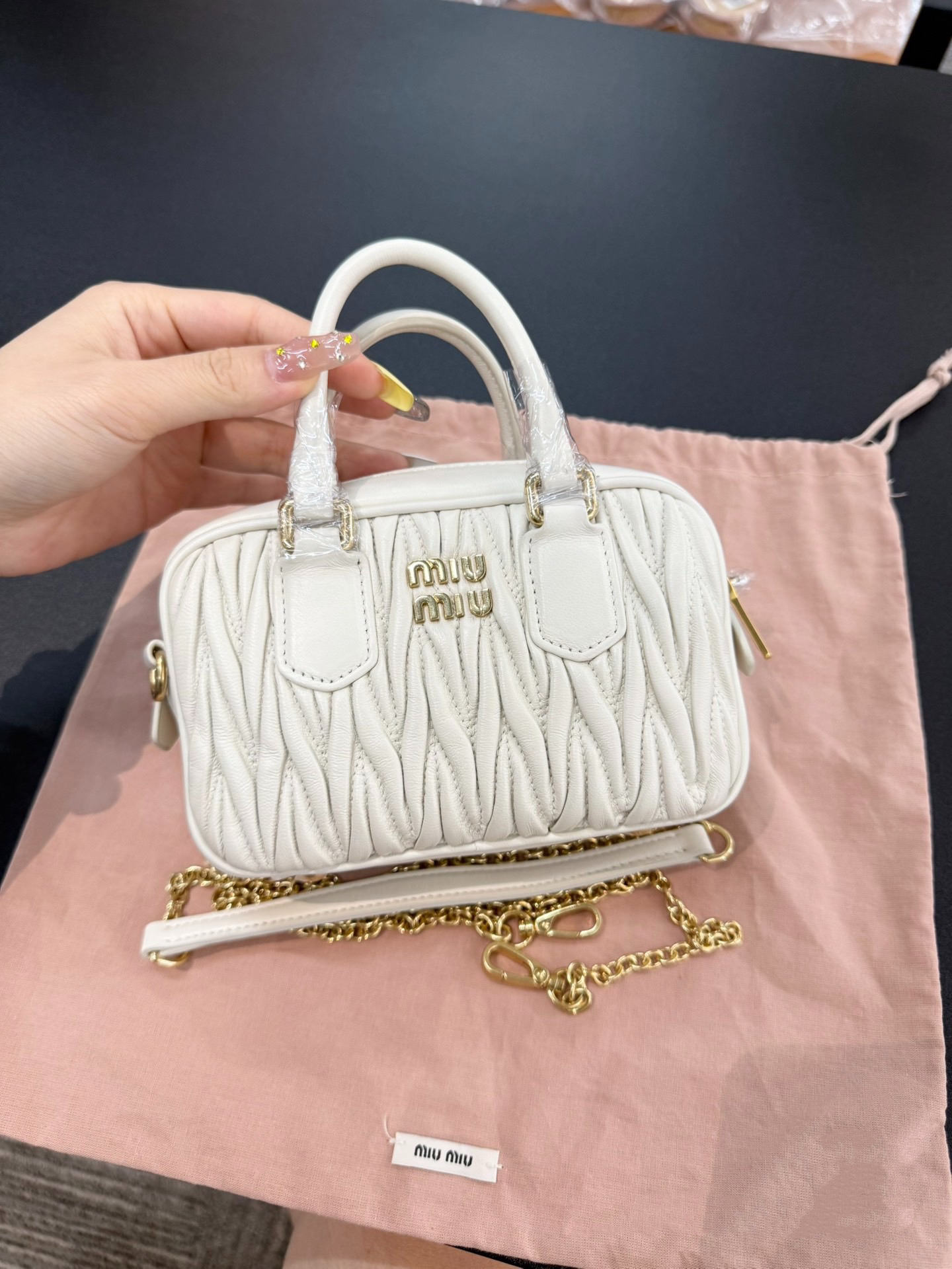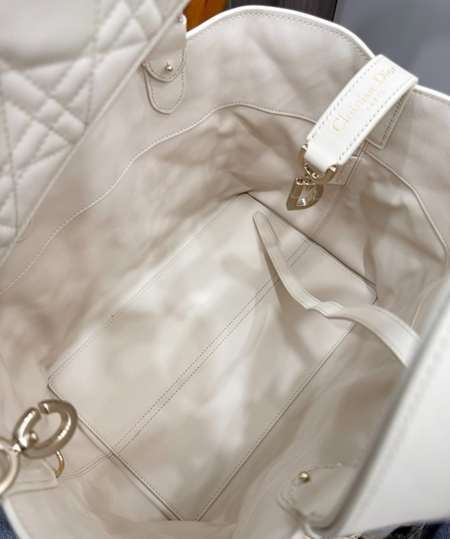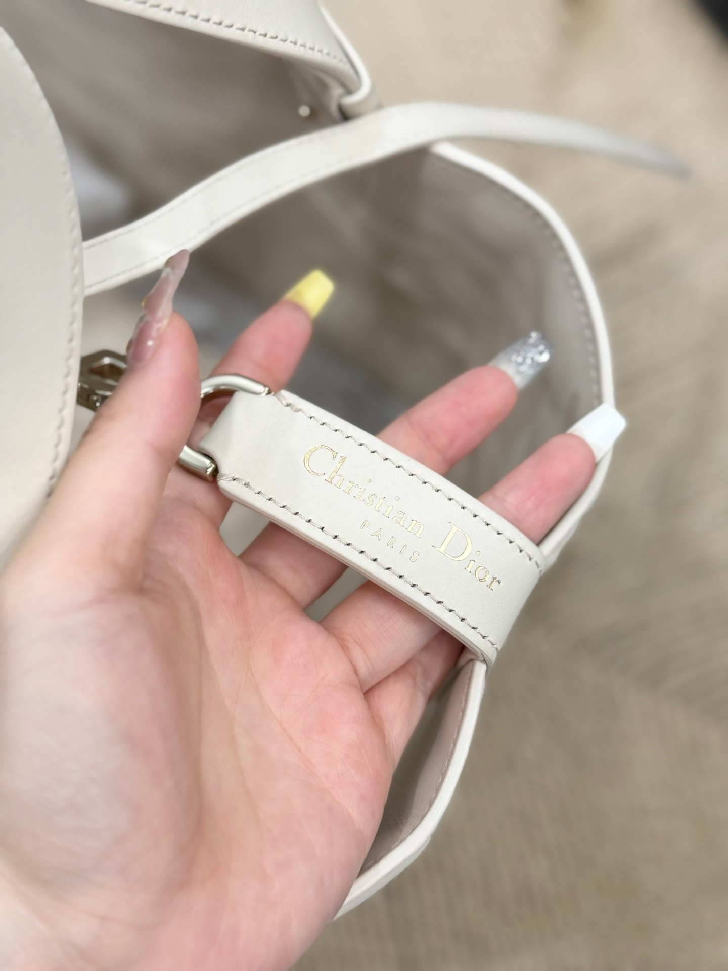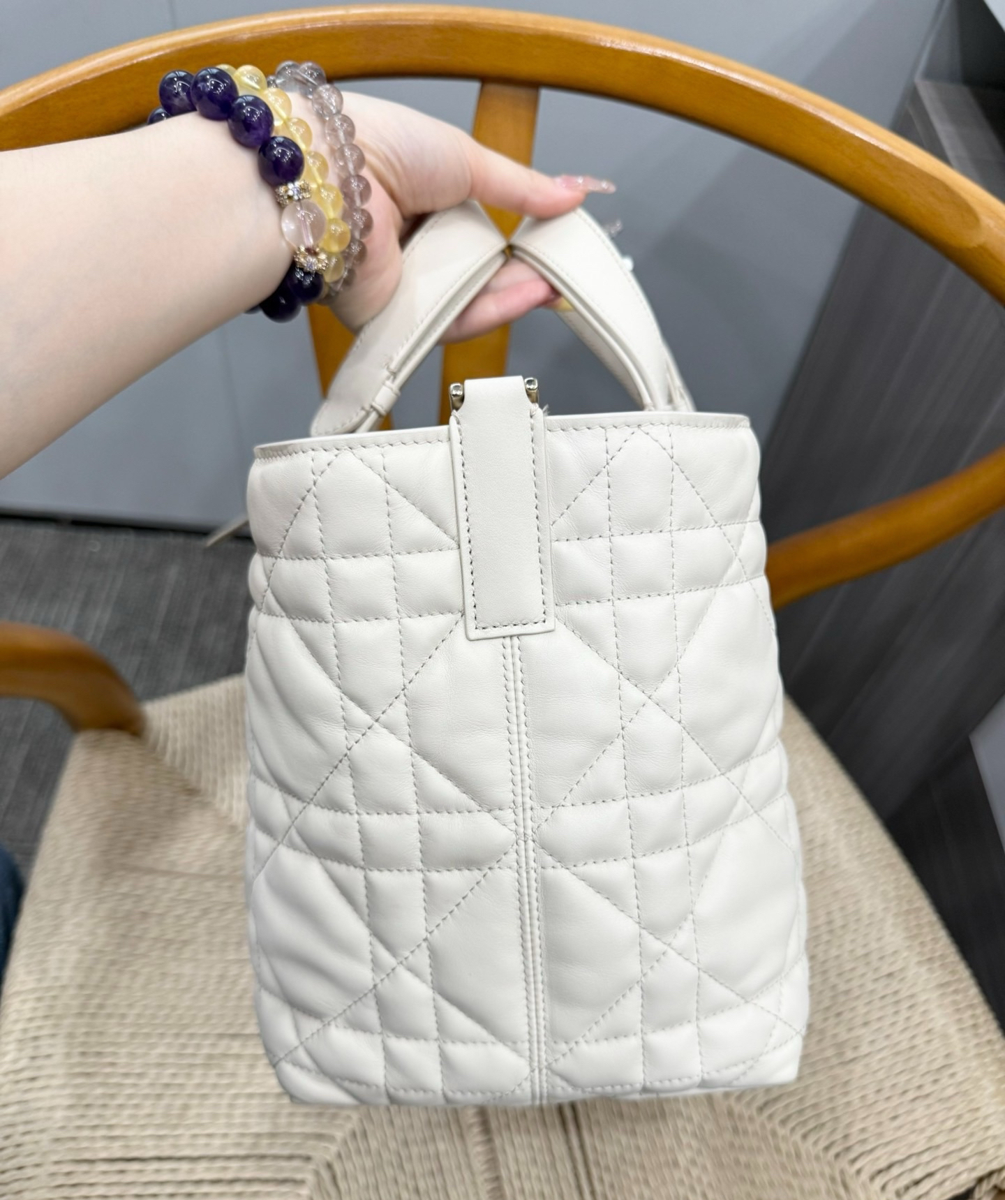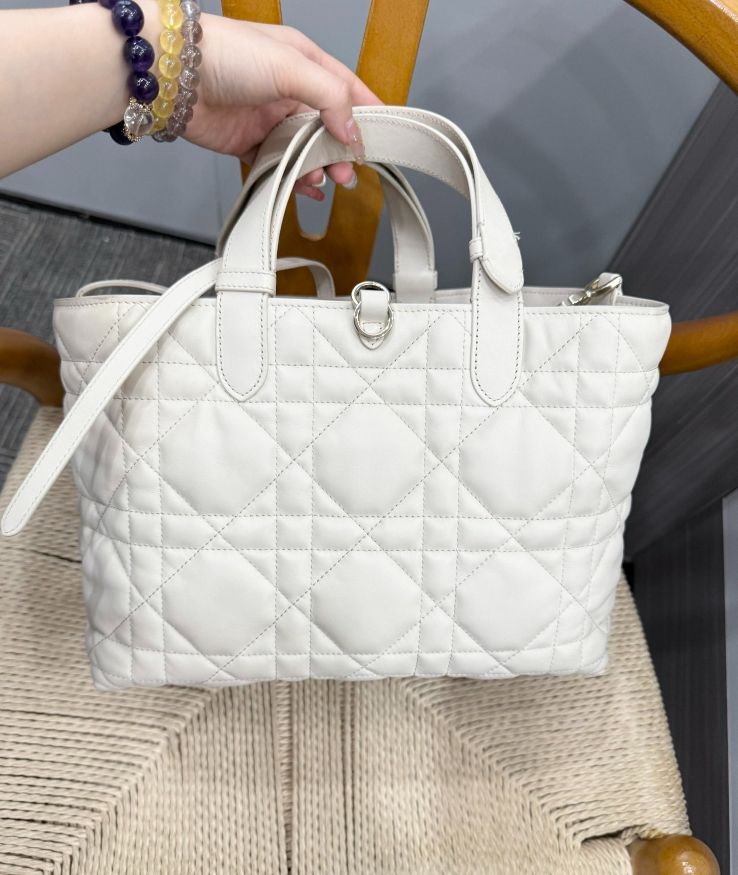 本篇笔记关联了Dior/迪奥 Toujours系列 中号 顶部手柄小牛皮革藤格纹吊坠系带开合可调节手柄手提包 白色等商品,为用户提供真实的使用体验和购买参考。
