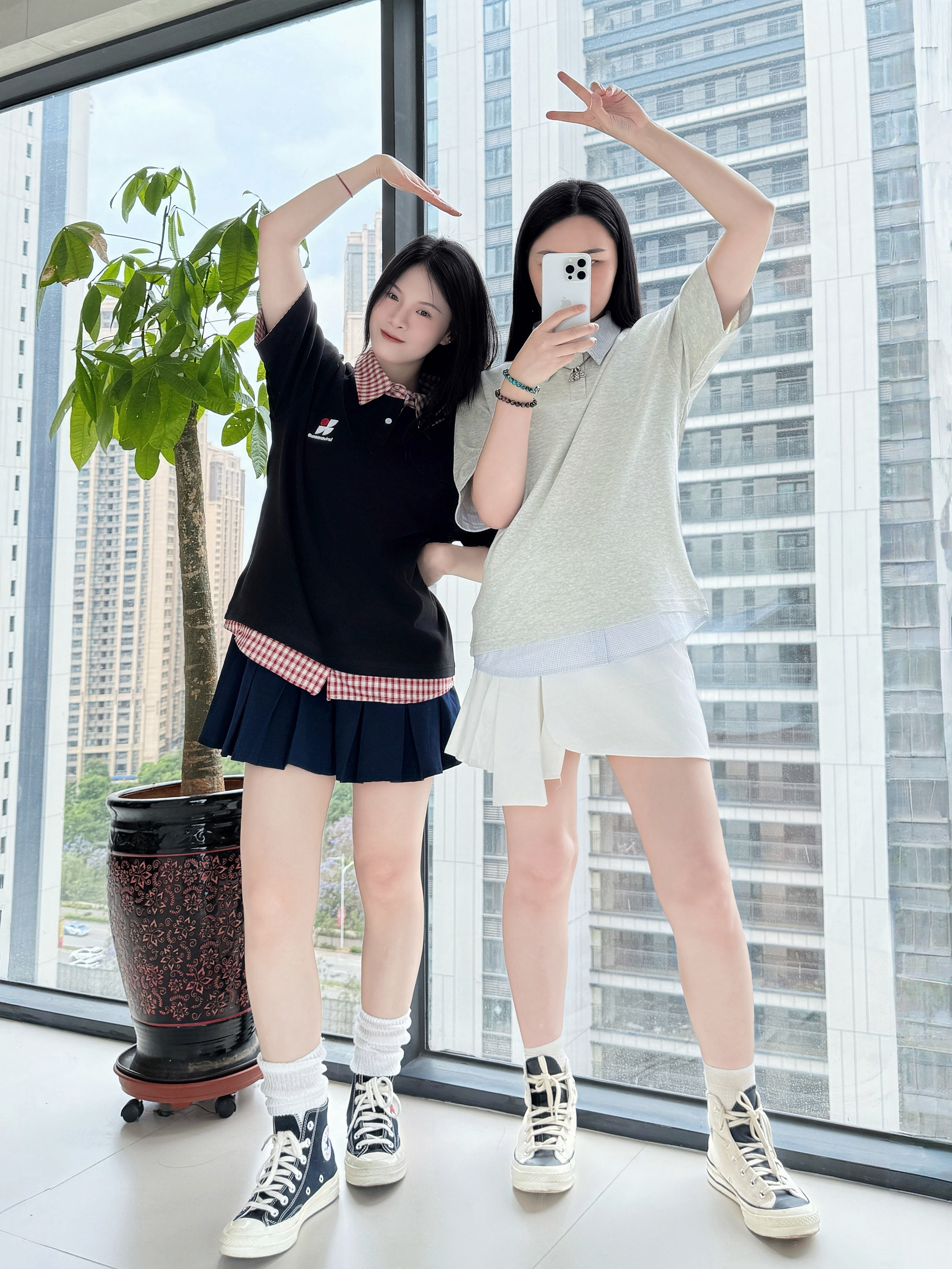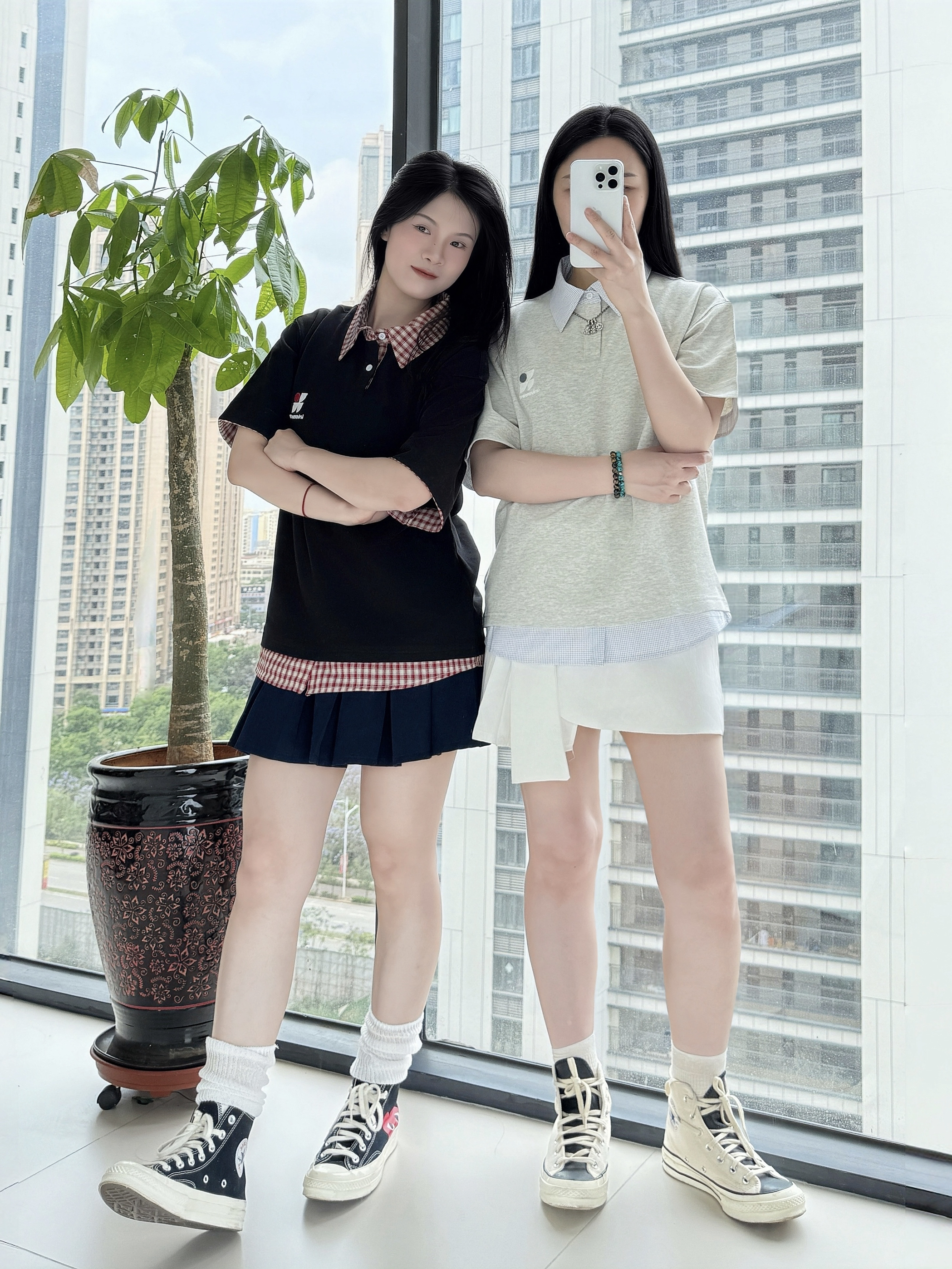 ꎁ𓐄📠* :・ 🎒ꔛ 🗃 👚: OWOX 格纹撞色polo领 假两件的设计,很有层次感 宽松的版型很舒服 👗:搭配黑色🖤和白色🤍的百褶裙 👟:搭配青春十足的匡威 分别与CDG和Fear of god essentials的联名 元气满满的学院风穿搭🎒