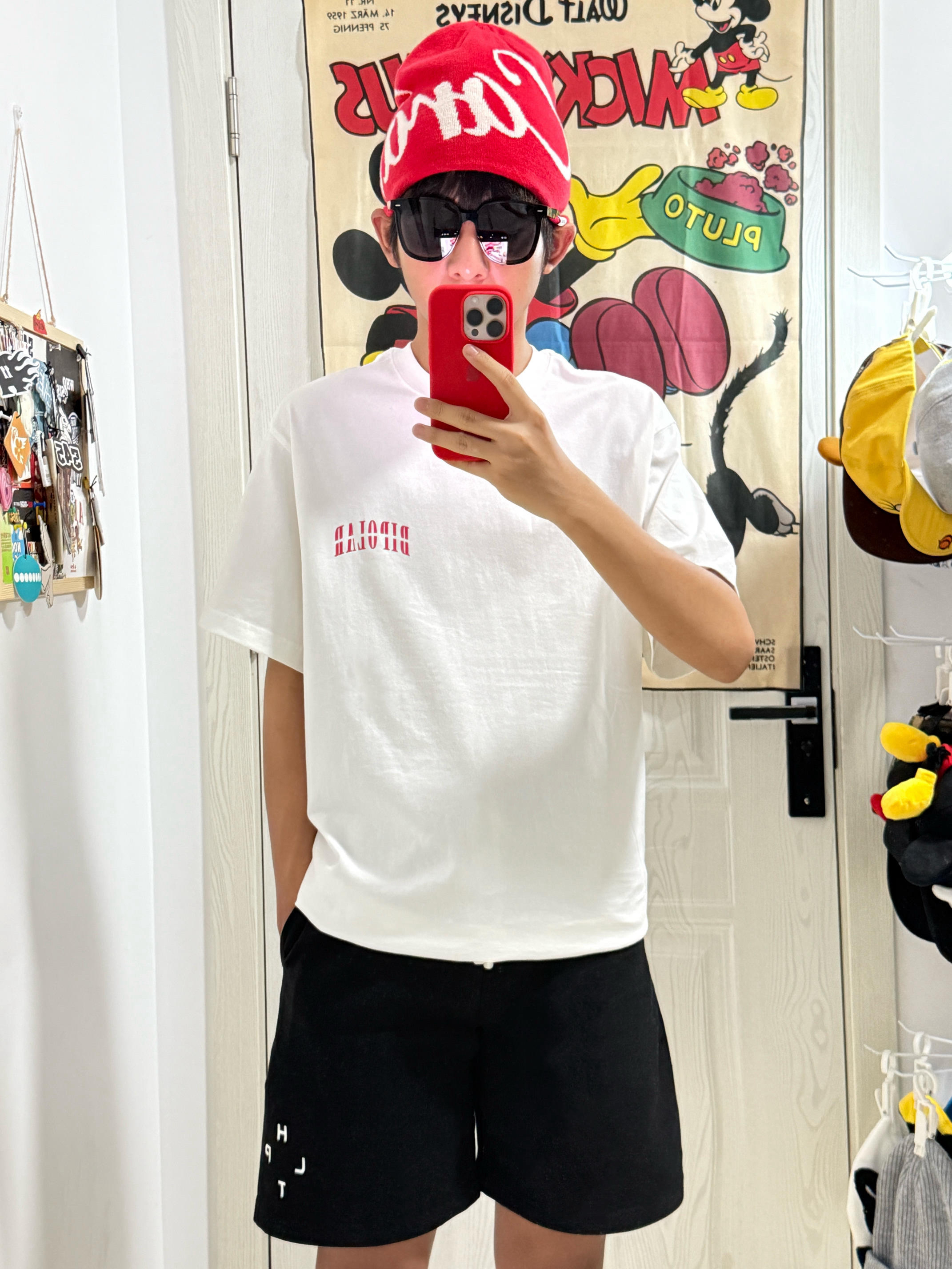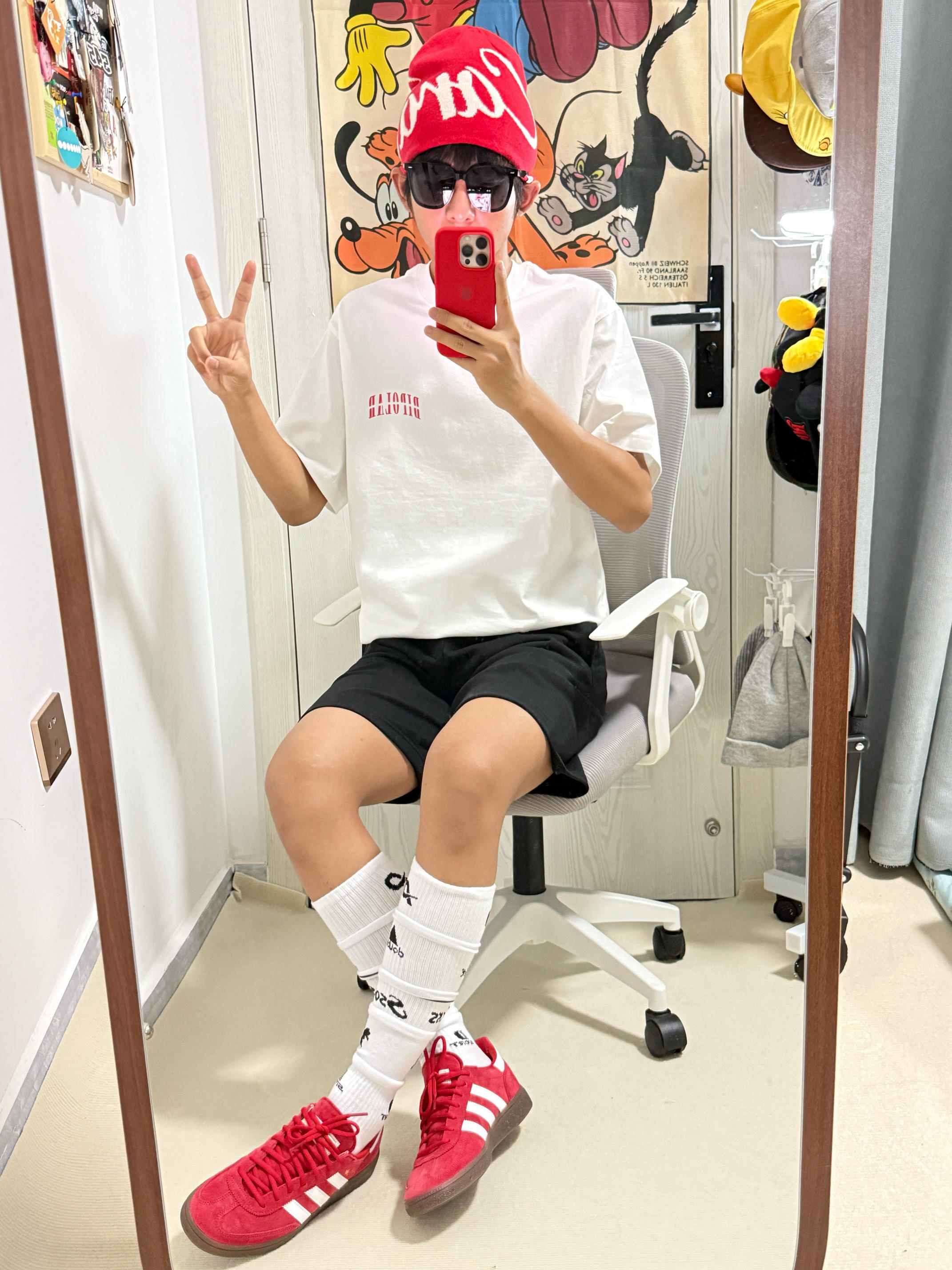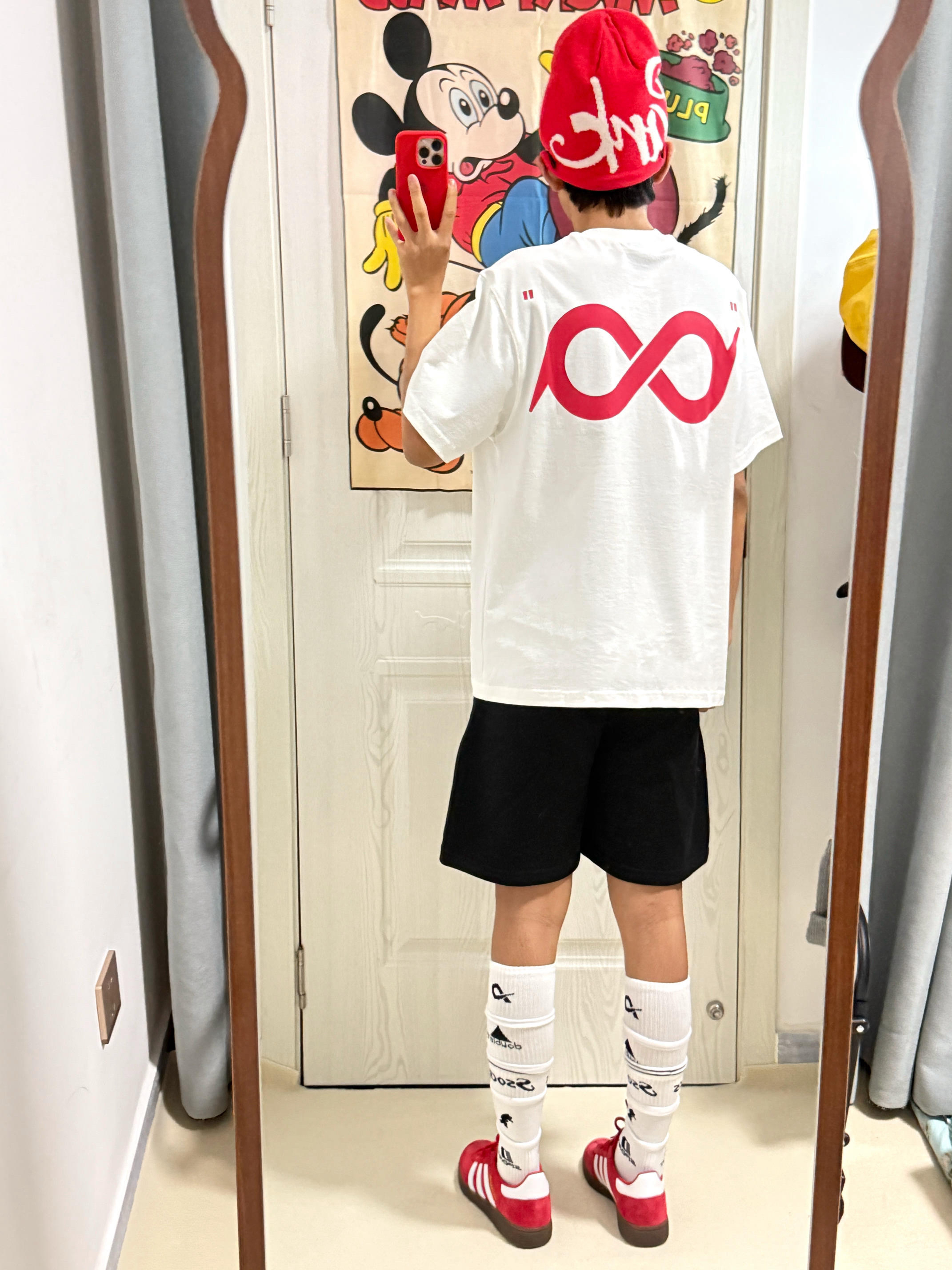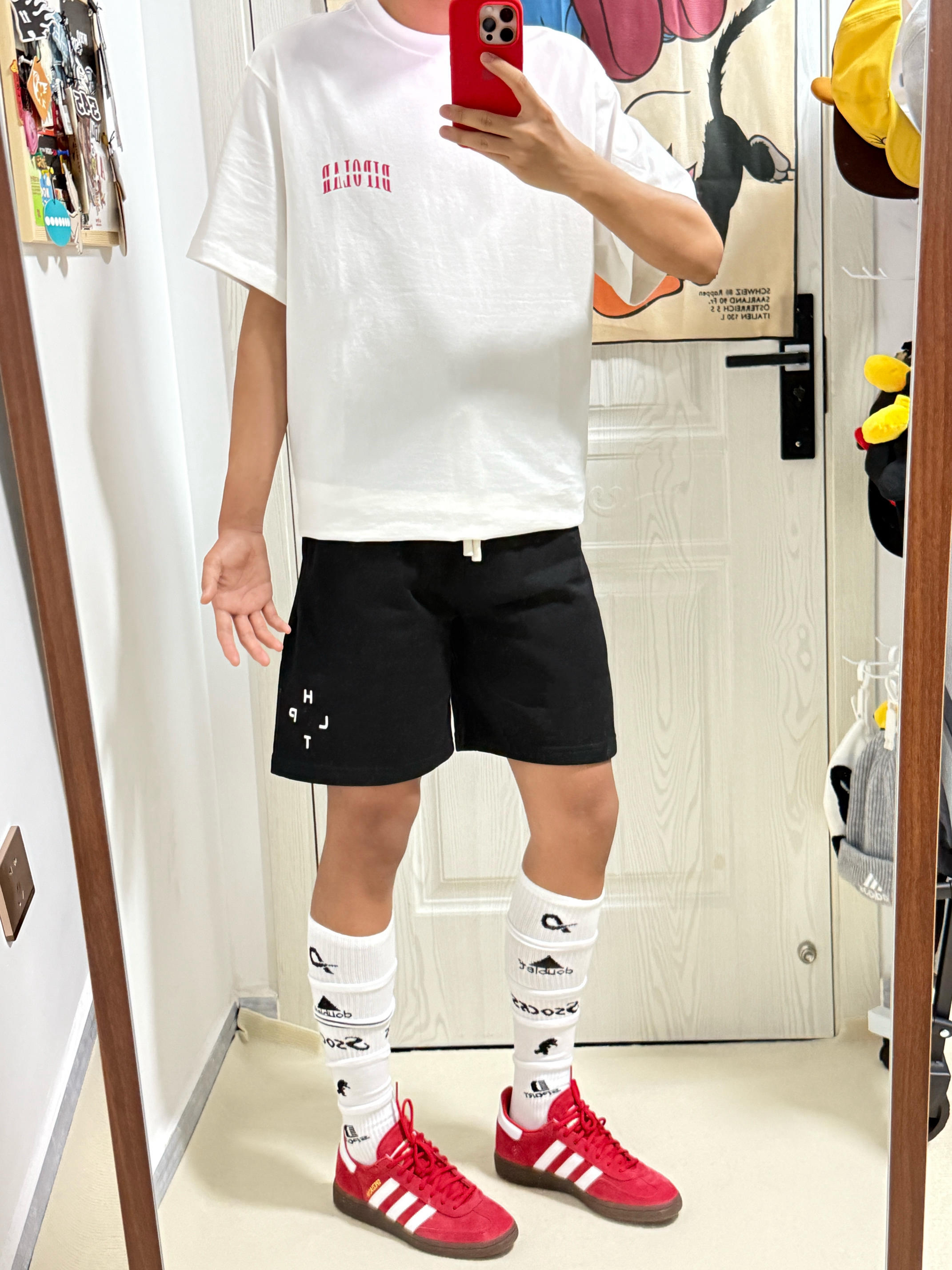 👀/今日份夏季ootd分享🍉 红字Logo❤️印花短袖➕黑色字母♠️休闲短裤 搭配了一条长款足球袜⚽️ 显得我更有活力和时尚感了🤓