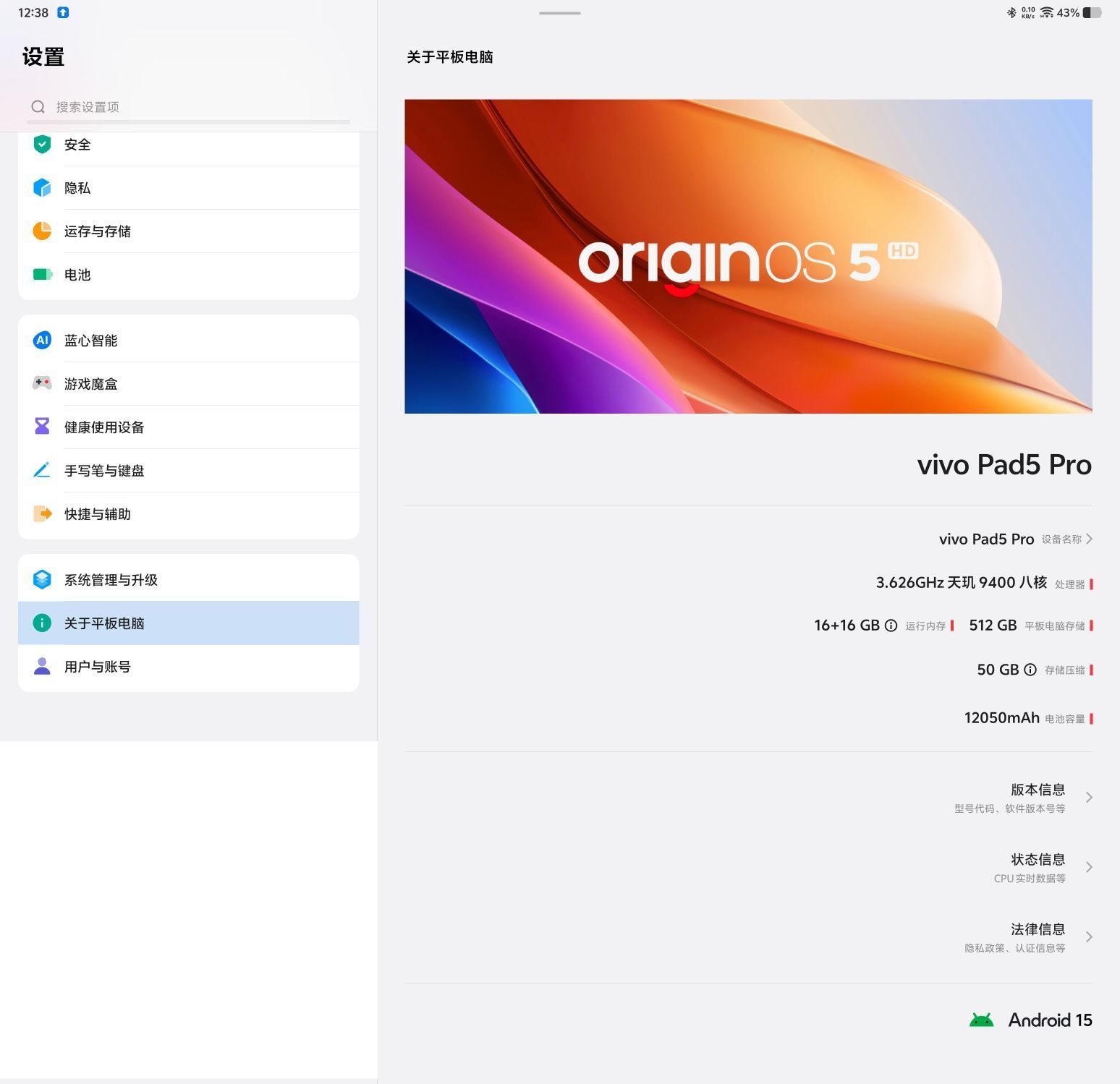 本篇笔记关联了vivo Pad5 Pro 天玑版 2025款 13英寸 平板电脑 智慧流畅 OriginOS 5 HD 超轻薄 原彩护眼屏 轻办公 网课 旗舰芯 大屏 蓝晶 学习 寒星灰、vivo Pencil3 平板电脑手写笔 无触觉 无线磁吸秒充 珠光白、vivo 无线 平板键盘 适配安卓 140°无极调节 手感更轻薄 新月灰等商品,为用户提供真实的使用体验和购买参考。