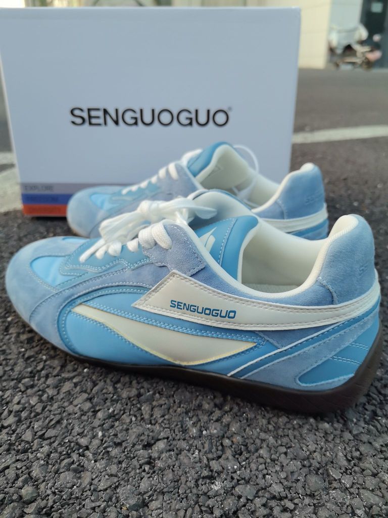👟 鞋名:森果果 赛车鞋 / 天蓝色薄底德训鞋 🎨 配色:天蓝+米白,太夏天了,真的太夏天了 🧠 上脚第一感觉就是:“怎么这么轻?!” 👣 穿着体验:有内增高但不压脚背,走路轻盈不累 🧥 穿搭建议:牛仔裤、短裤、运动裤都可,德训鞋版型百搭力max 🎯 推荐人群:学生党 / 喜欢低调配色又想增高的人 💬 一句话总结:买这双赛车鞋不是因为便宜,而是它真的“有味道”