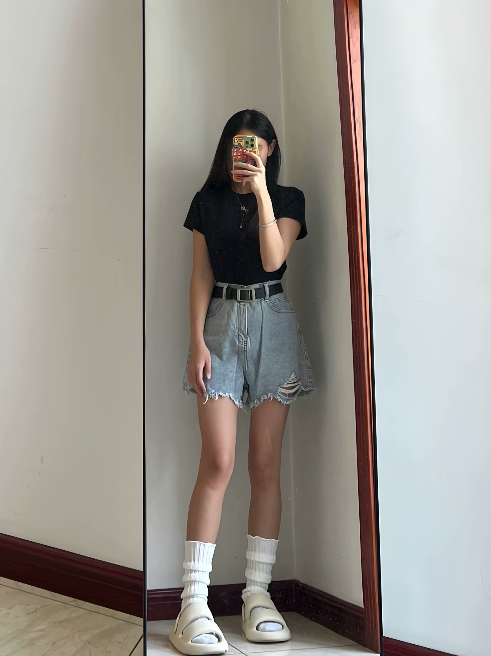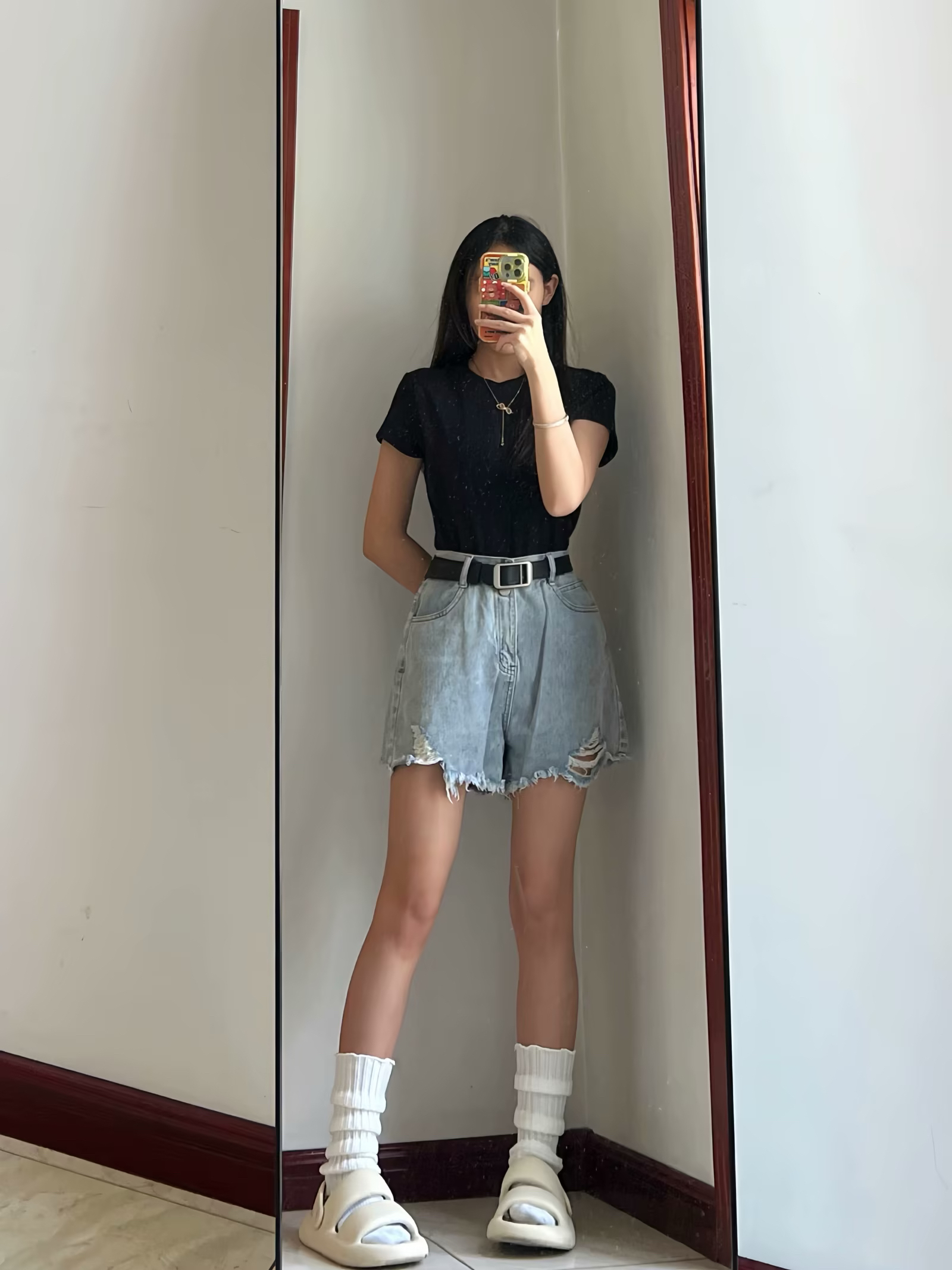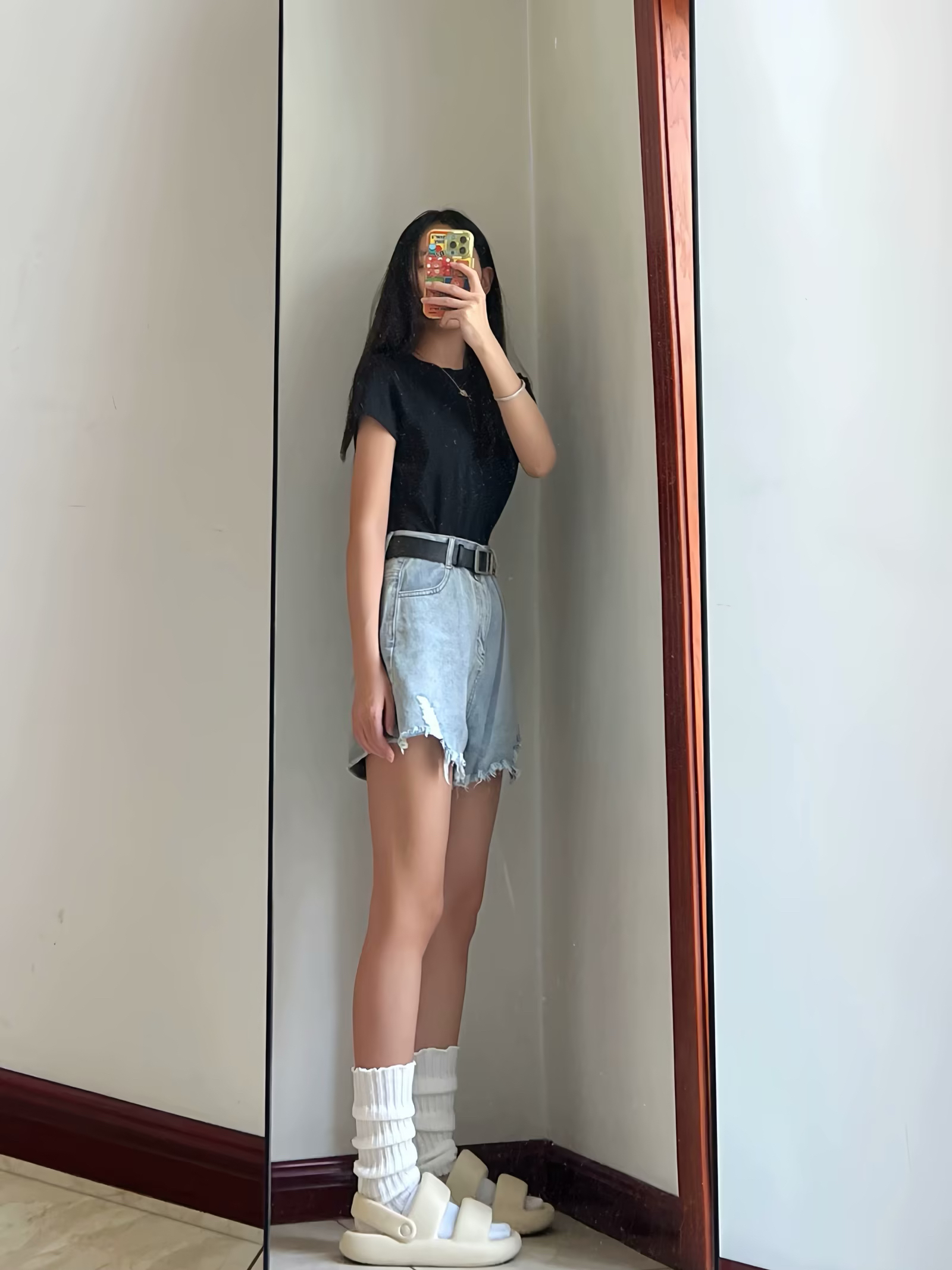 嘟嘟 分享今日份Daily look!!! 今天是牛仔短裤T恤简单穿~ 尊嘟很好看