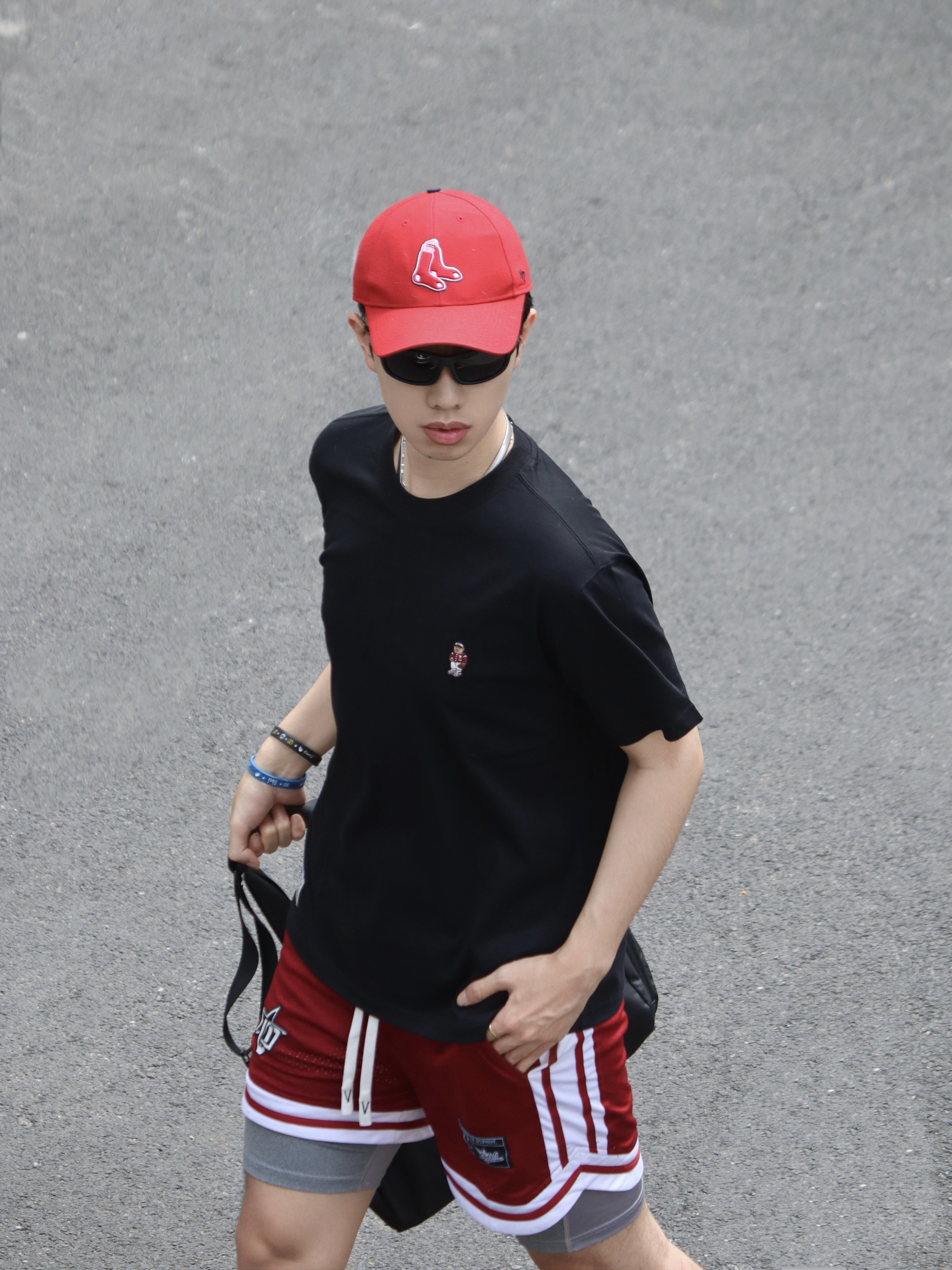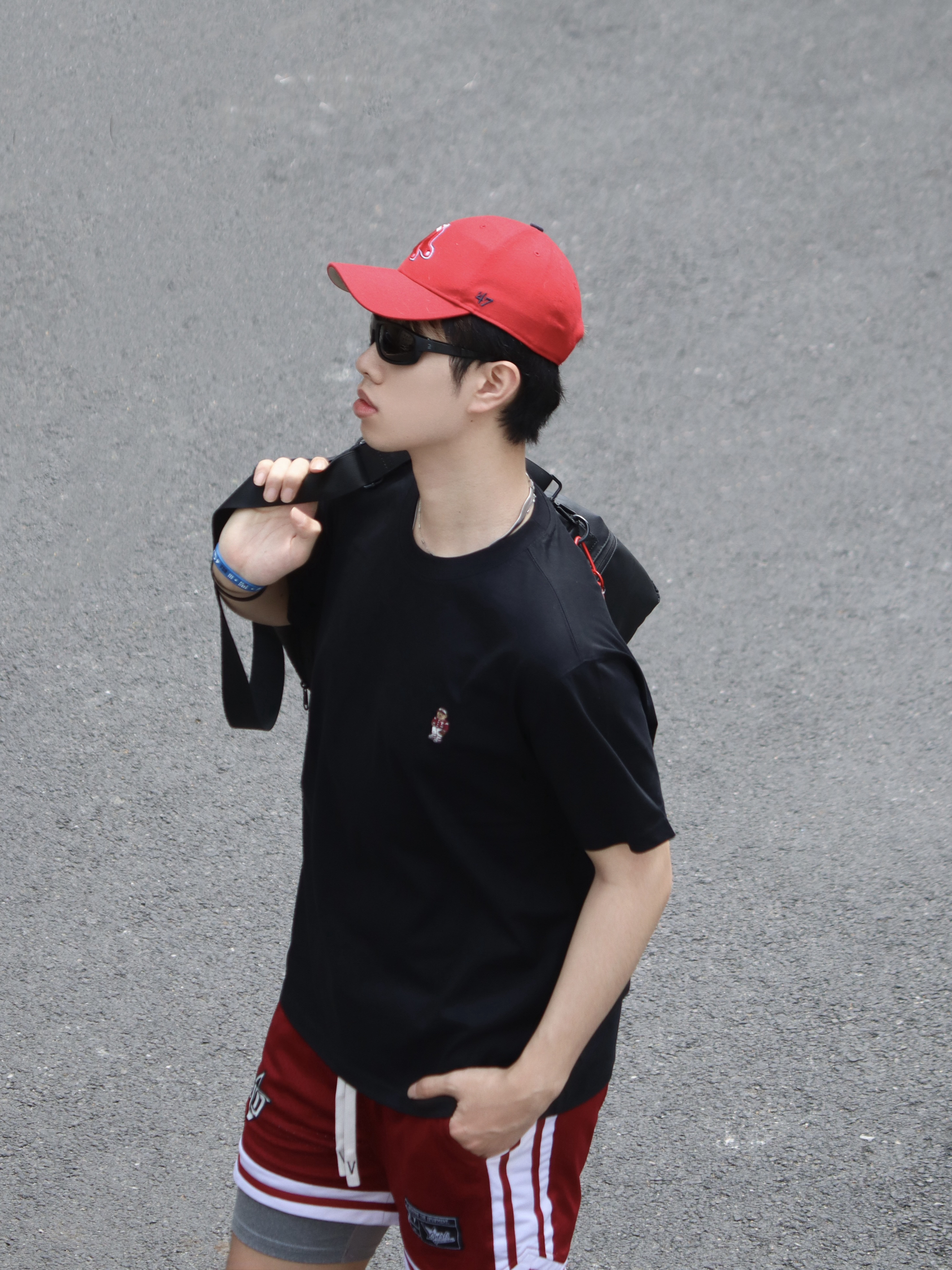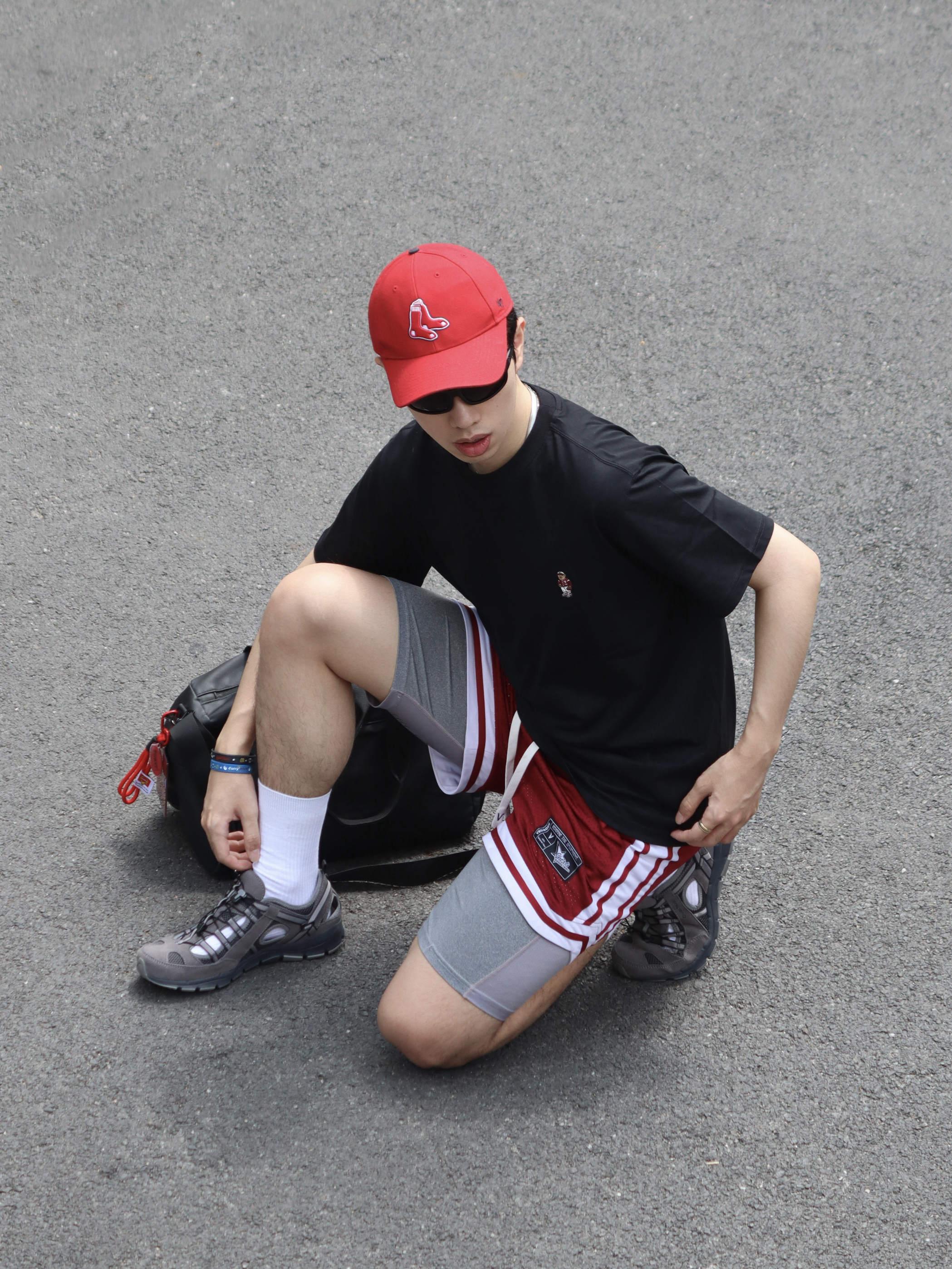身高|体重:186cm 75kg 🧍♂️穿搭风格:遇到自己夸夸自己😎在休闲中玩转出街头潮流范‼️走出去,分分钟成为街头焦点,回头率max💥 👔上衣:黑色T恤简直是时尚界的“万能钥匙”✌️简洁款式低调不失内涵,多场合融入😎胸前那小小的小熊精致刺绣好看✌️ 👖下装:红白撞色运动短裤,像夏日里的一杯冰可乐🥤,走路都带感,有内衬,喜欢运动穿✅ 👟鞋子:灰色户外运动鞋🩶独特机能设计,鞋面的材质和...