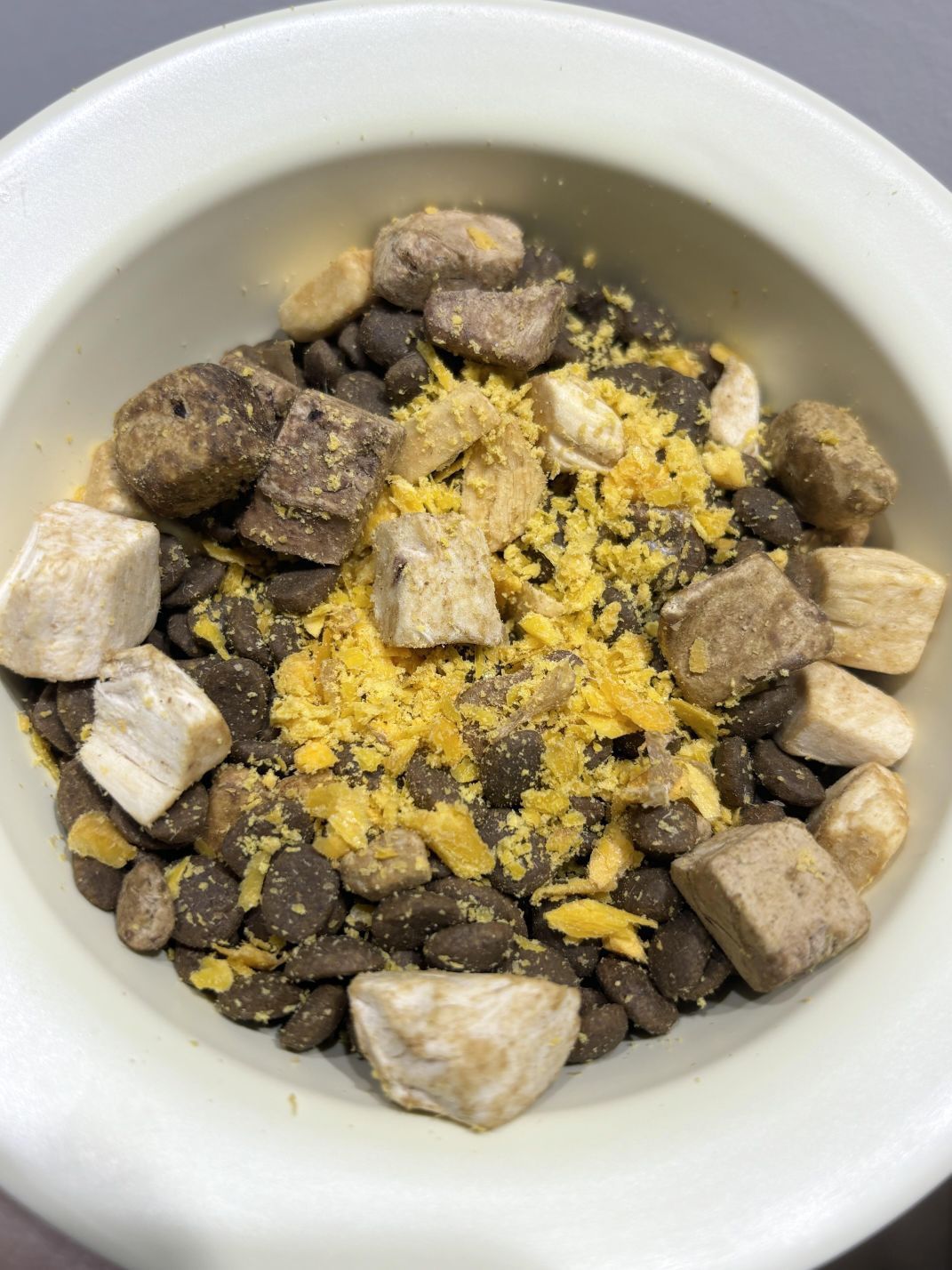 我家主子挑食,给它选粮是真的费尽心思,进口的国产的都试了,每次都是吃一段时间就不爱了。 然后就给它买这个猫粮,后面就一直就喜欢吃他家的冻干猫粮,为啥?吃饭还能吃小零食主子当然乐意了哈哈哈哈,本身嘴挑的很,现在还能安安静静坐猫粮碗面前吃的干干净净,不到一个月毛发还顺了不少,我自己看着都好吃,上面那个鸡蛋黄冻干碎看起来就跟肉松一样,裹满了猫粮,又补充了脂肪还能补充蛋白质,总之吃起来很放心,也不用再另外...