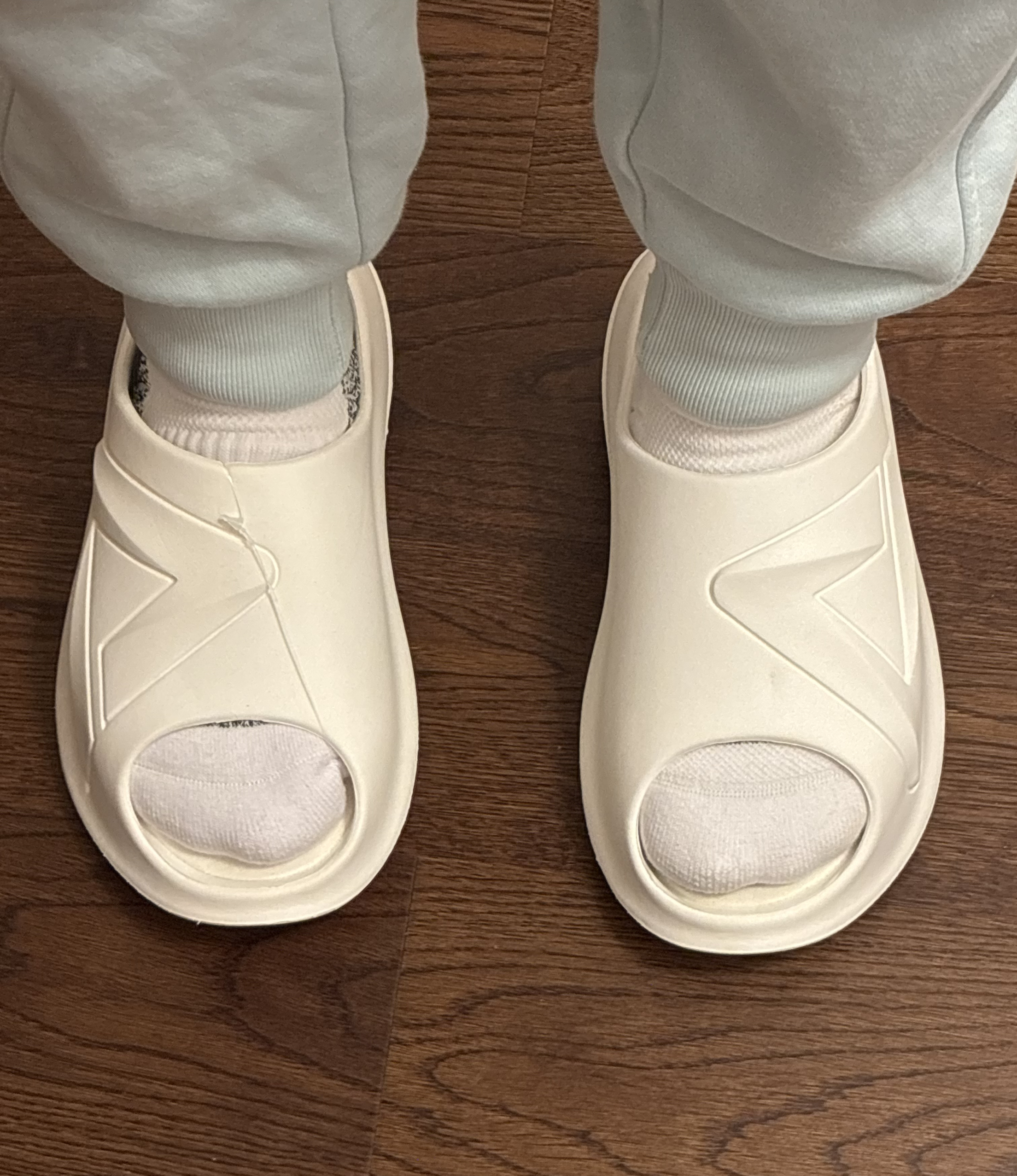 原来是小胖拖 关于尺码问题 一定要选小1-2码!我平时Nike穿38.5码 小胖拖37码正合适 可以参照AW1去选码 在尺码合适的前提下 它的穿着舒适度还是不错的 不压脚背也不磨脚 算是一双比较跟脚的拖鞋 足弓支撑一般 鞋底楦没有在足弓处有隆起 材料也没有在足弓处有加厚 这无疑可以让它适配低足弓甚至扁平足的人 但我不太喜欢这种足弓空落落的感觉