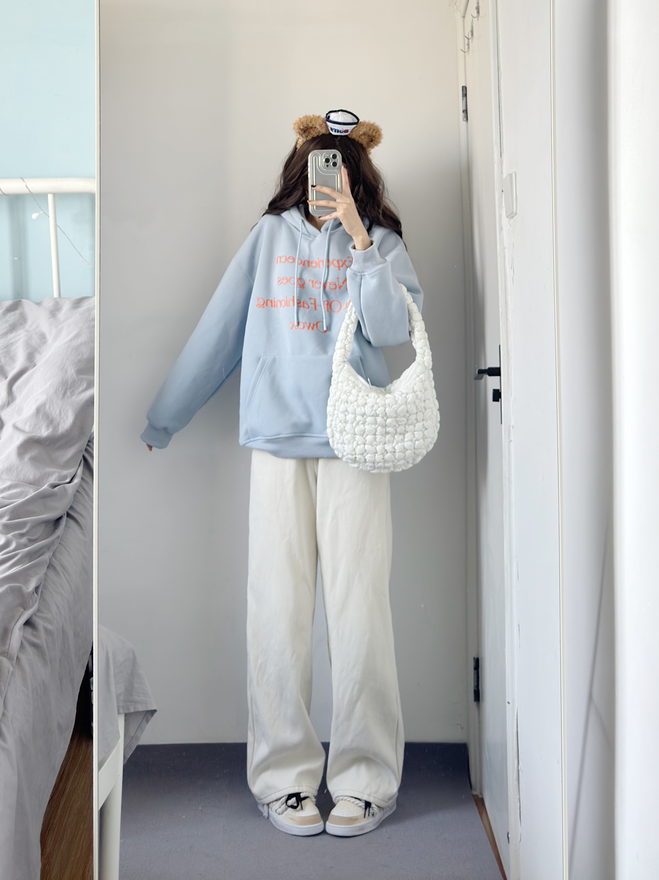 今日上身白色牛仔裤 纯白色简约配色好看又百搭 微喇版型显瘦显腿长 面料柔软舒适 穿上舒适度很好 通勤或者外出游玩都是个不错选择