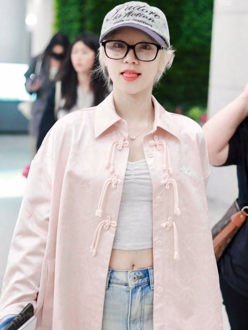 宋雨琦脱舌头的样子好可爱 真俏皮 👔 上衣:adidas Originals/三叶草 2025SS 新中式提花翻领夹克 👟 鞋子:adidas Originals SL 72 轻便防滑耐磨透气 舒适百搭 简约复古 薄底 德训鞋