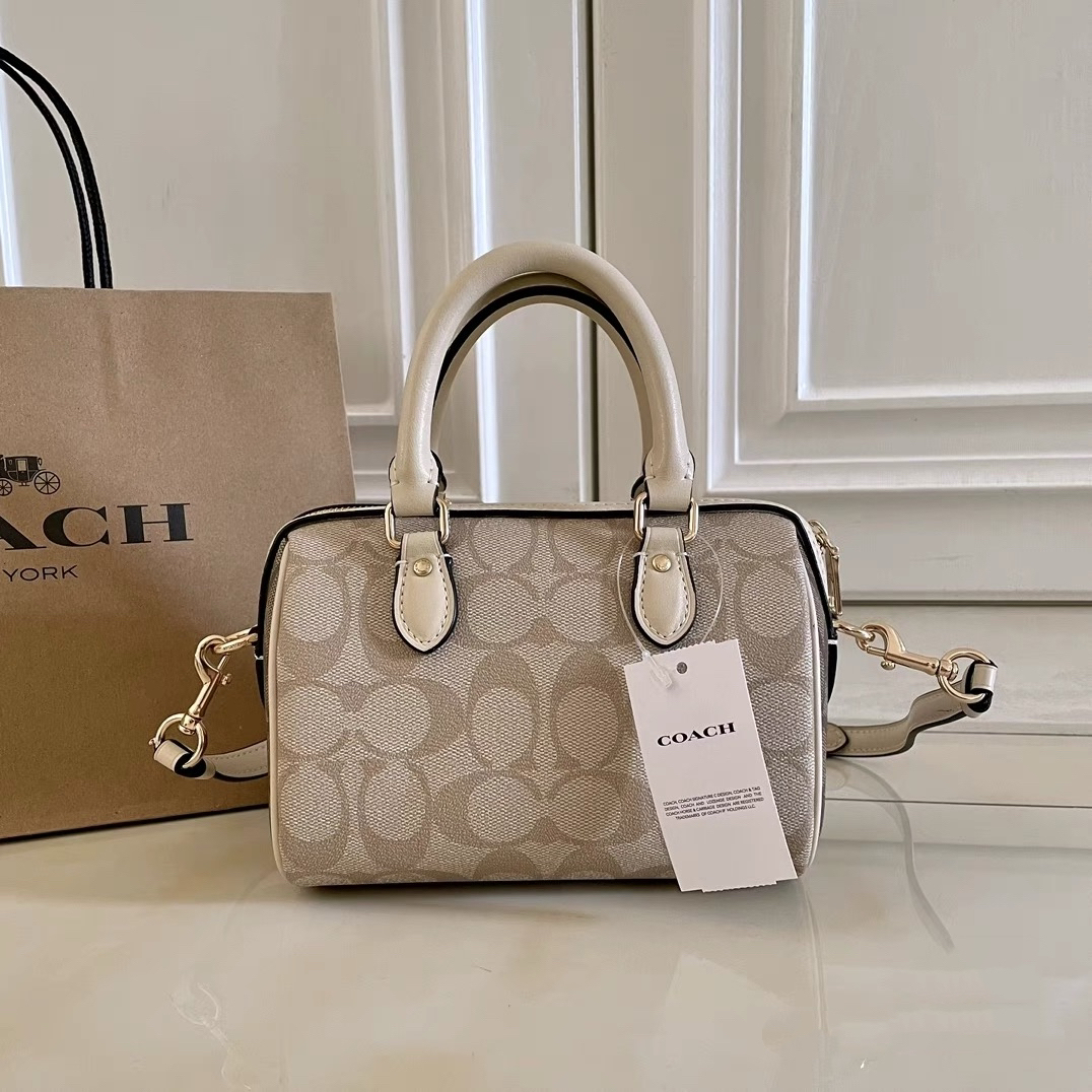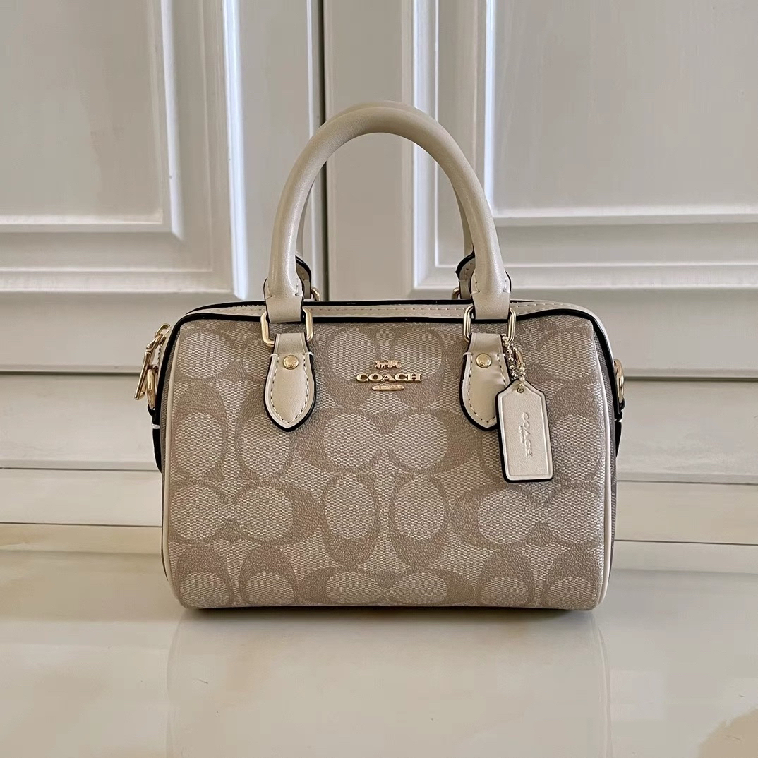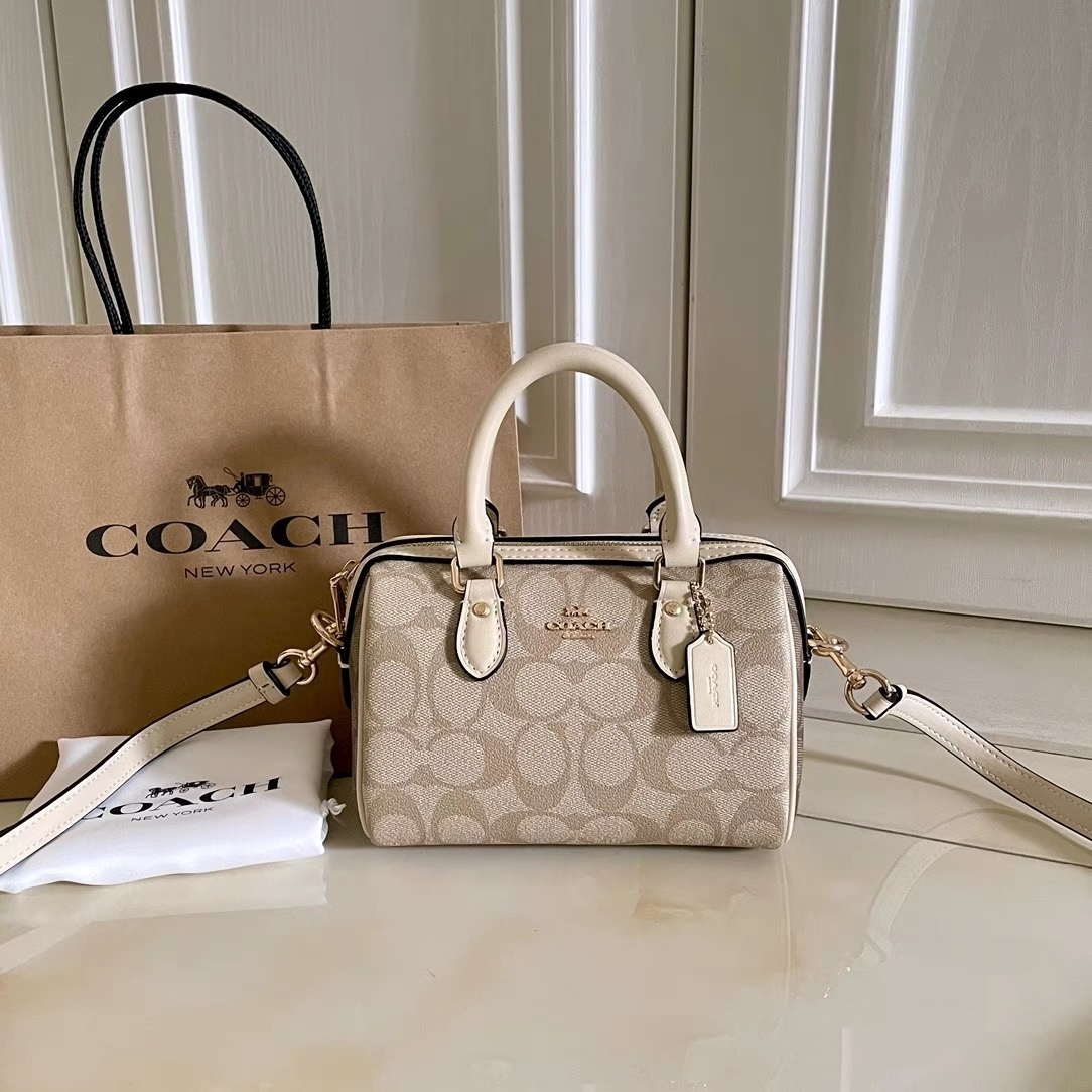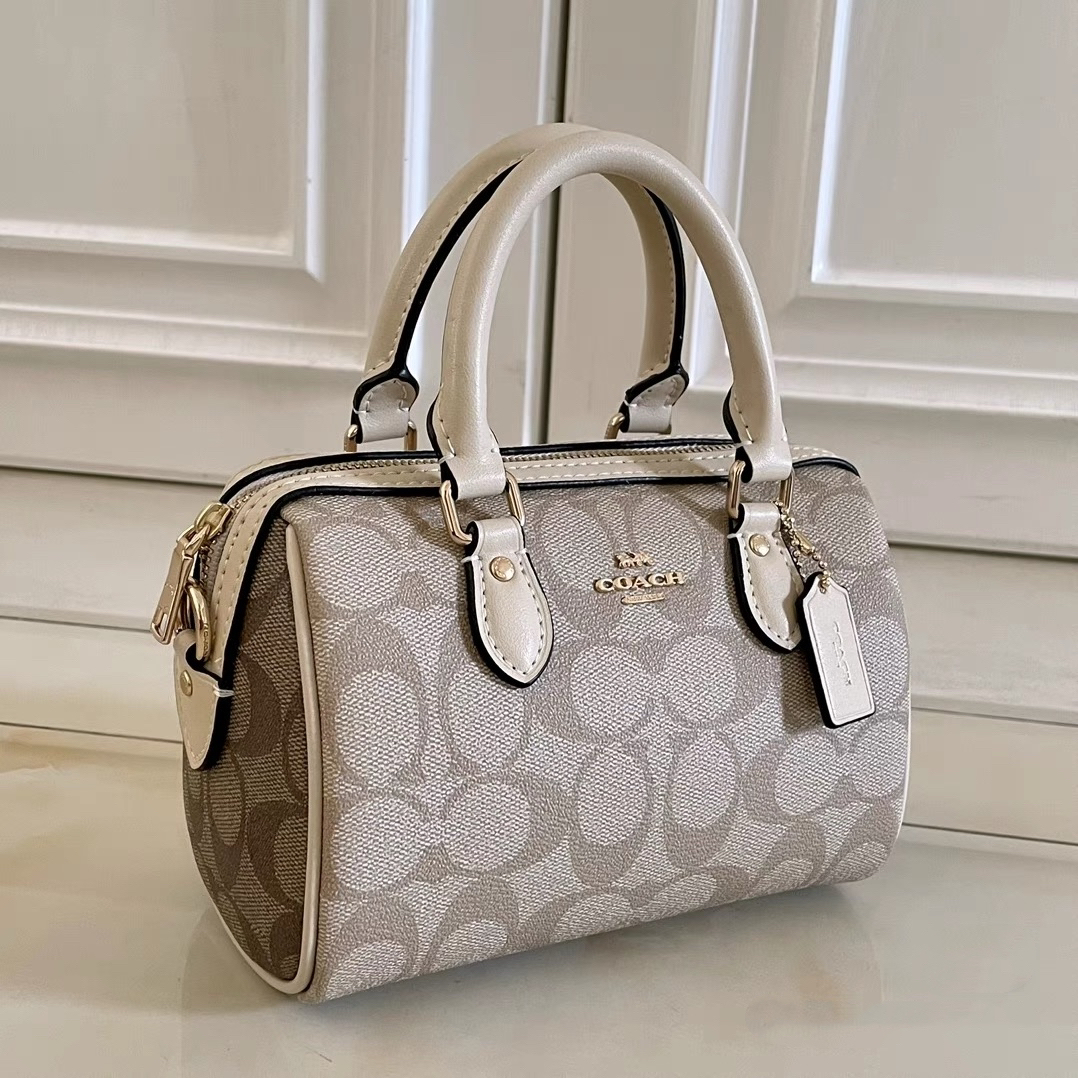 本篇笔记关联了Coach ROWAN 18 迷你 奥莱经典标志老花印花波士顿拉链开合涂层帆布皮革色块手提包水桶包单肩斜挎包 浅卡其等商品,为用户提供真实的使用体验和购买参考。