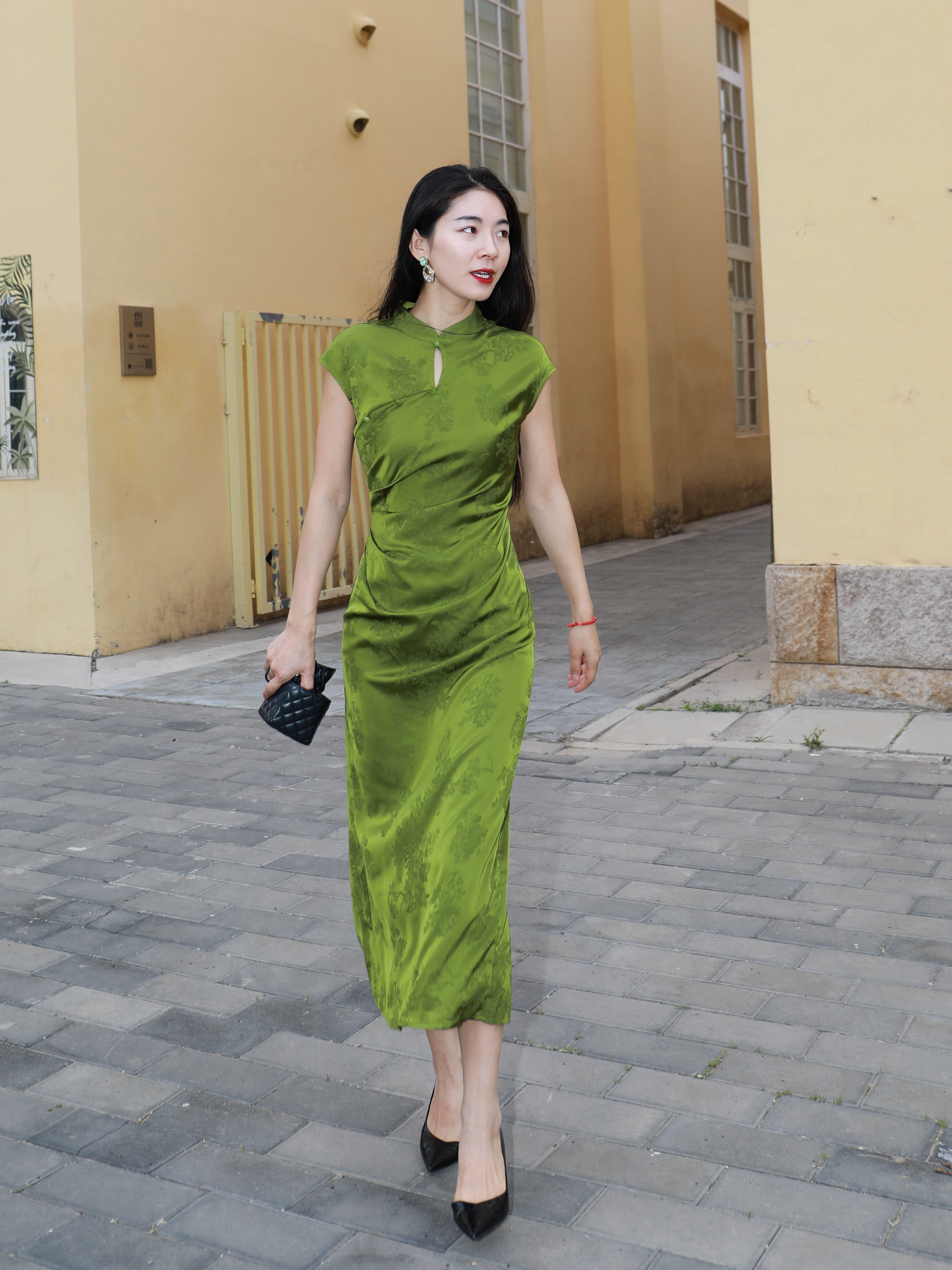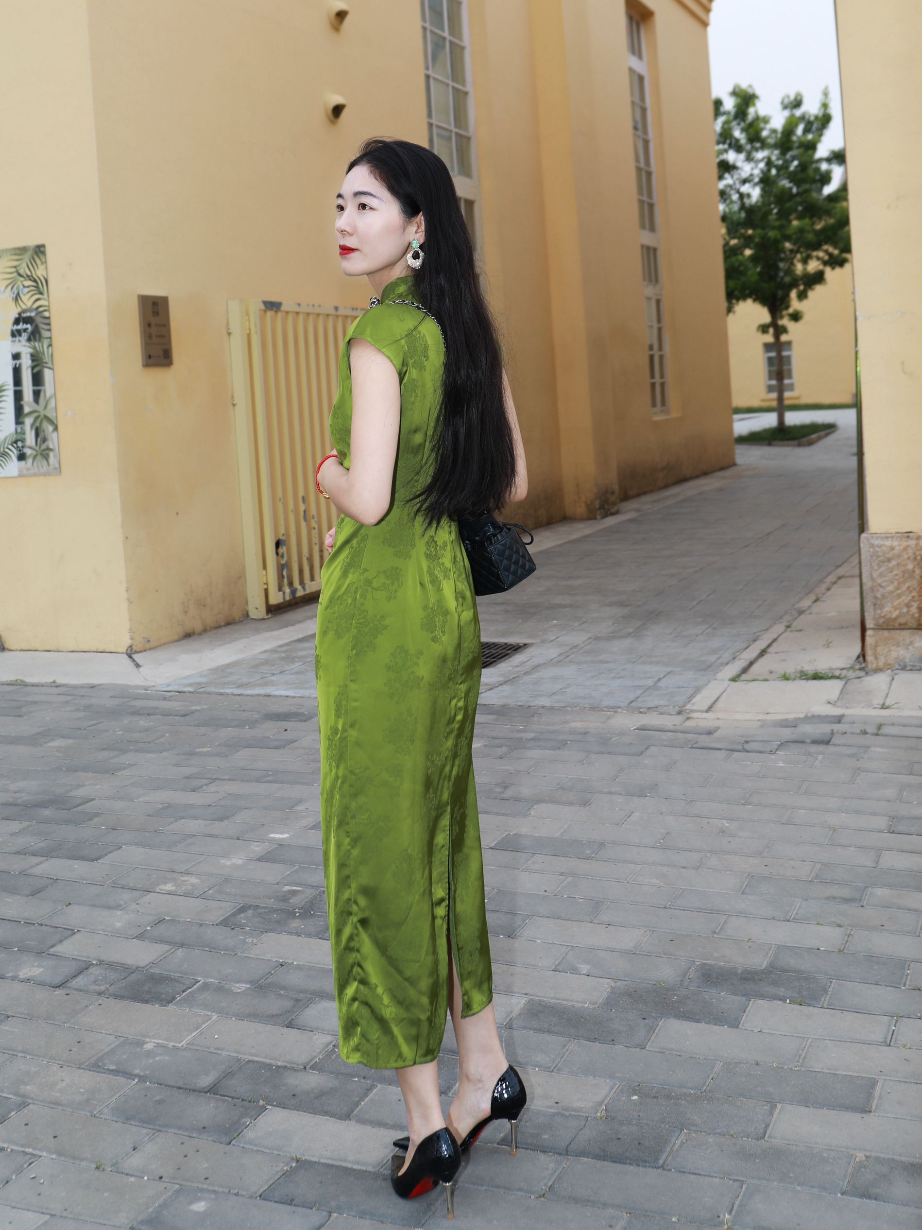 我第一次穿~还这么艳丽但是穿的很高兴 旗袍作为传统服装之一可以说真的适合中国女人氣 彰显女性身材优美和柔美的线条美 充分展现了女性的神韵和气质 古典时尚风,旗袍优雅行 旗袍是一种典雅,优美的服饰今天这件绿色的 喜欢哈哈哈