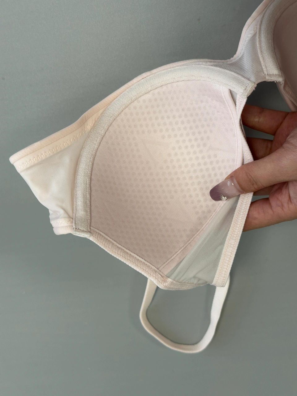 大胸妹子夏天是不是总在找又轻薄又能承托的内衣?我终于找到了,就是维密小冰杯3.0 ! 🌬️它的面料吸湿速干,杯垫是超薄的透气网孔设计,夏天穿完全不闷,告别那种黏糊糊的感觉。 💪下围的记忆软钢圈,承托力超强,能稳稳托住胸部,不会下垂外扩 ,就算运动也没问题。 🎀整体设计很精致,字母肩带很有设计感,后面U型大露背,穿露背裙啥的都很搭,好看又实用! (图源网络侵删)