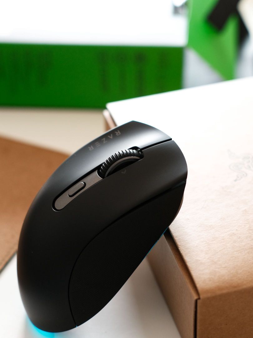 刚拿到手,就被它的包装吸引了,经典的黑绿配色简约大气,打开包装,里面配件很齐全,有鼠标本体、Razer HyperSpeed无线接收器和USB Type-A转USB Type-C 线缆,鼠标整体造型圆润,符合人体工程学设计,加宽的拇指垫自然贴合手部的曲线,握持感超棒,长时间使用手腕也不酸痛,搭配橡胶侧握和加长拇指托,使用起来更加舒适; 长按滚轮键1秒,就能激活“AI提示大师”功能,可快速调用C...
