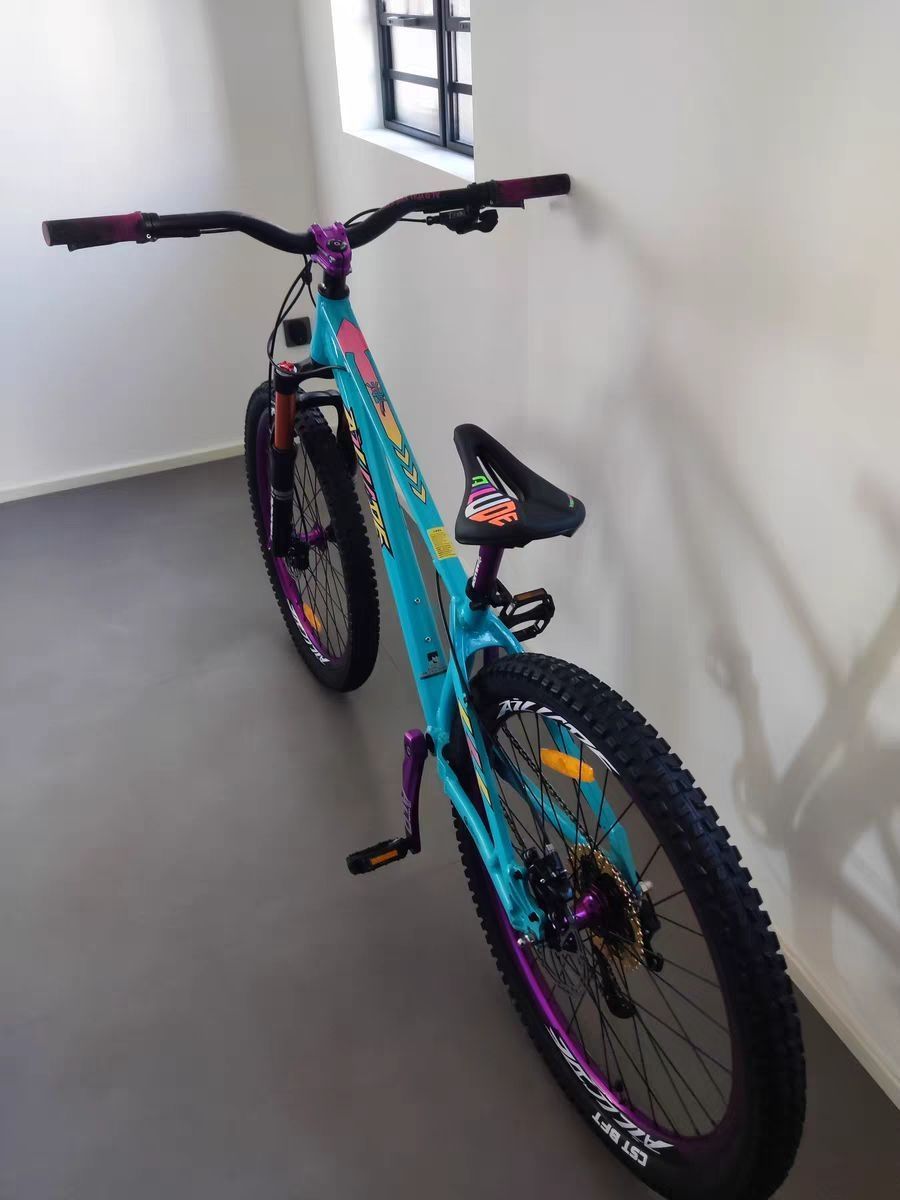 😍 第一眼就被克莱因蓝+紫轮圈的配色拿捏,街头炸街感拉满✨ 360响花鼓声音也超带感! 性能方面,操控感一流,26寸轮径越野稳如泰山,油碟刹车灵敏,下坡安全感爆棚。