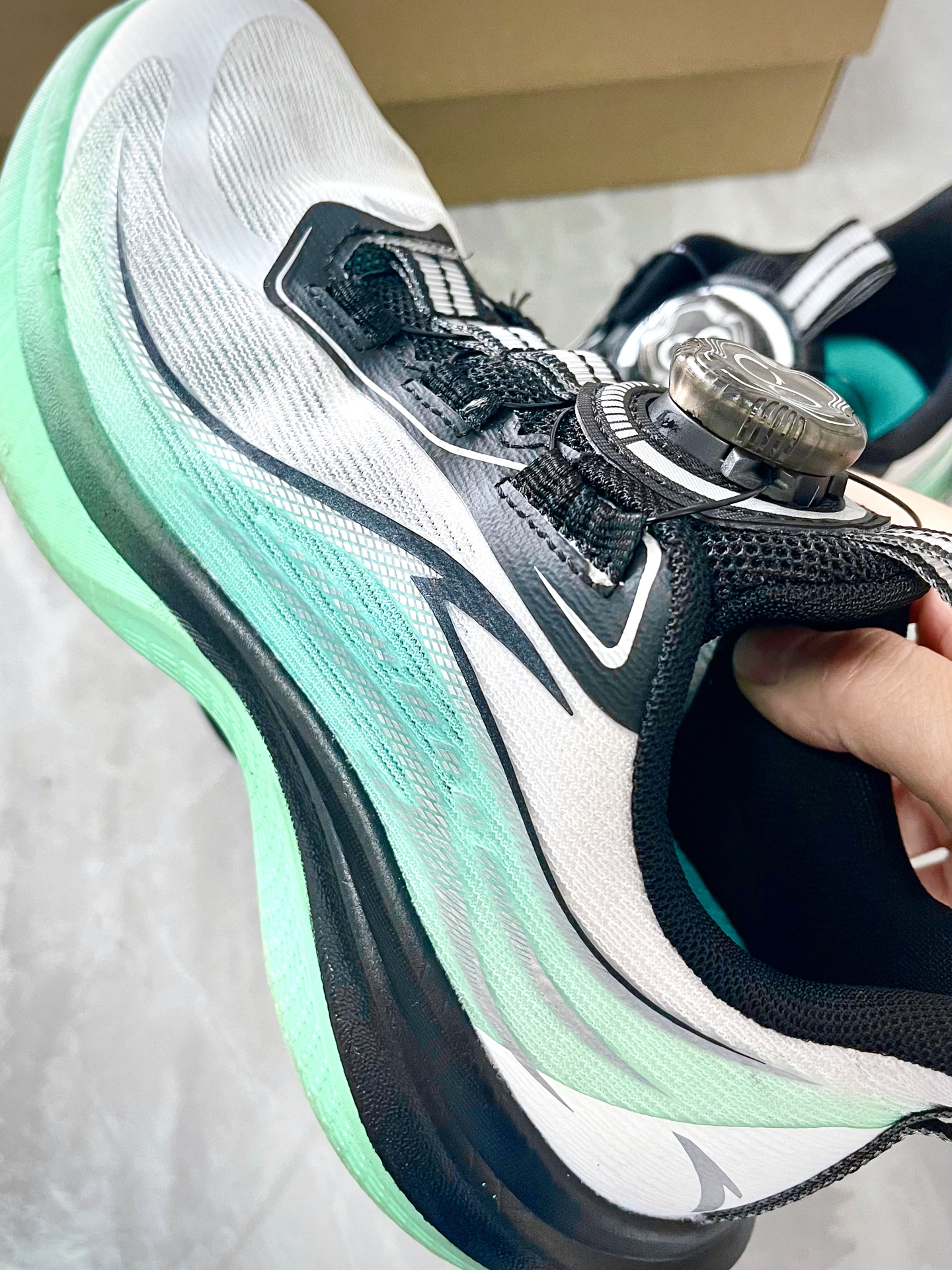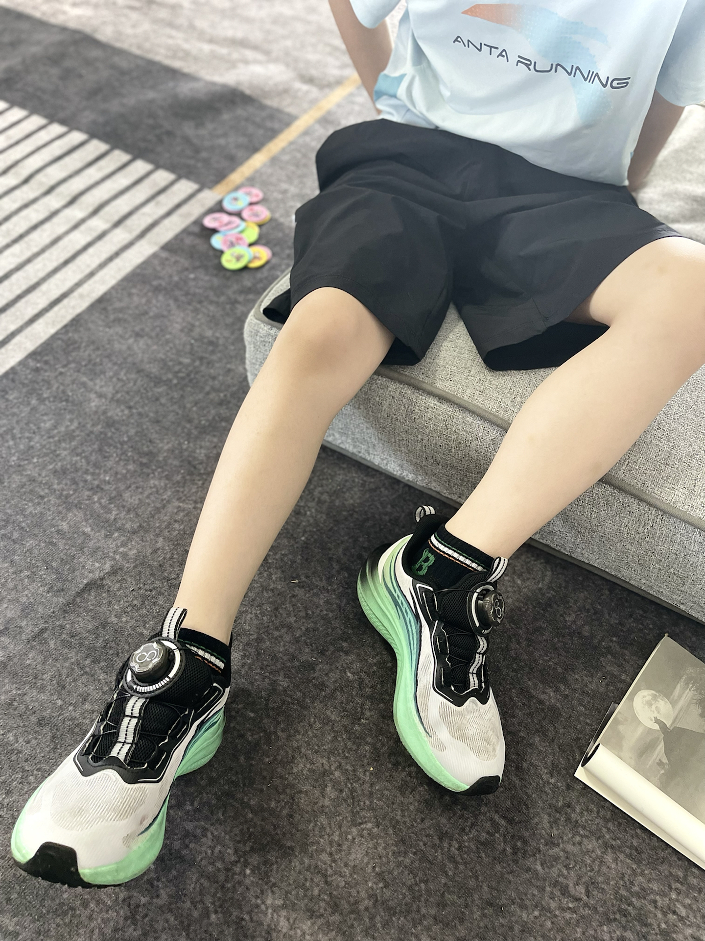 重点夸夸这双氢跑2.0童鞋! 旋转纽扣设计太懂老母亲了 现在娃自己轻松穿脱(终于不用蹲着帮系鞋带了 白+荧光绿的配色是属于夏天的小清凉 点缀黑色防滑纹鞋底,颜值蹭蹭的飙升~ 娃说: 跑跳时像踩着弹簧垫(官方叫犟弹科技- 不过白色网面 确实容易脏 但架不住娃天天点名要穿啊!