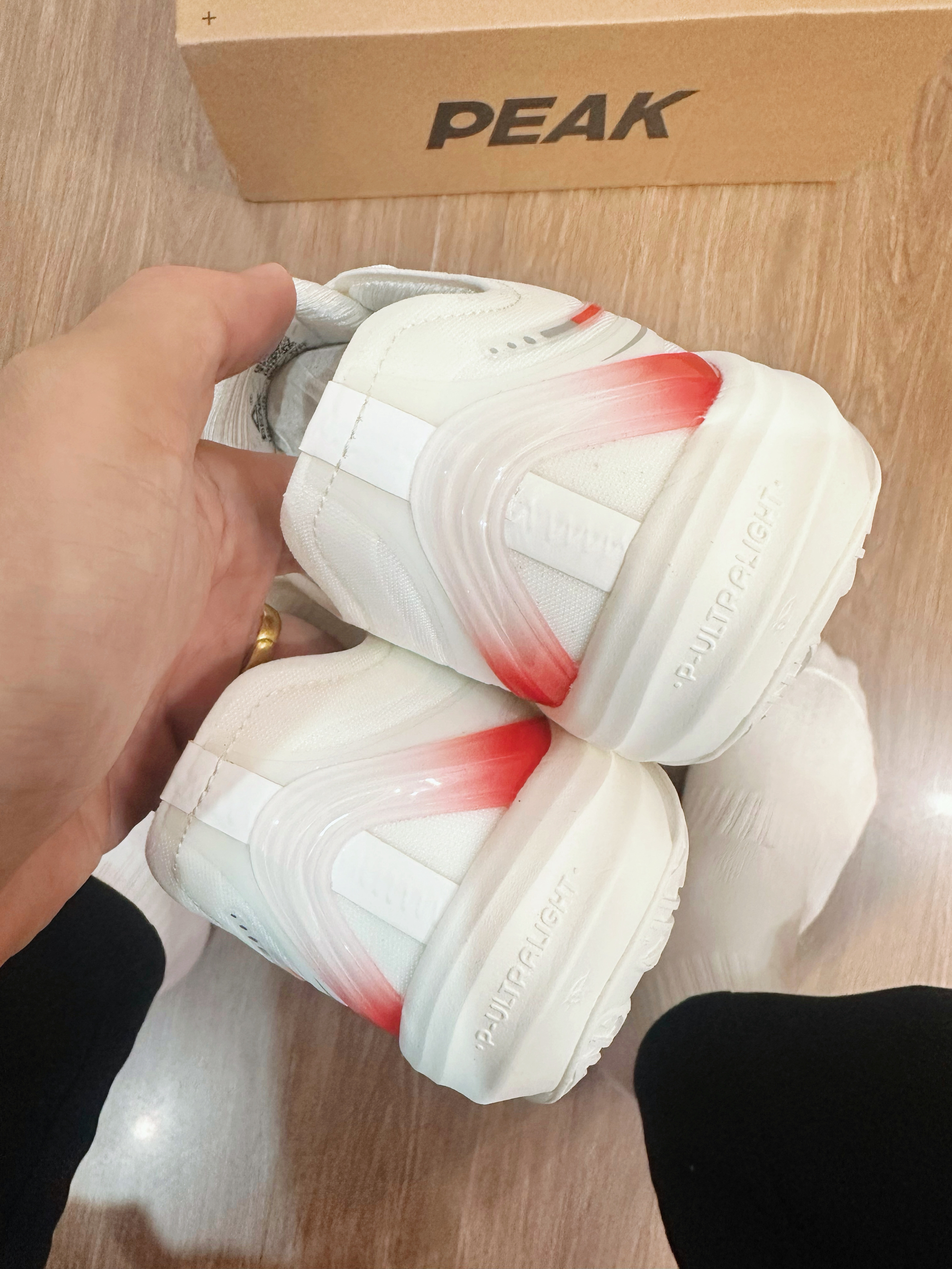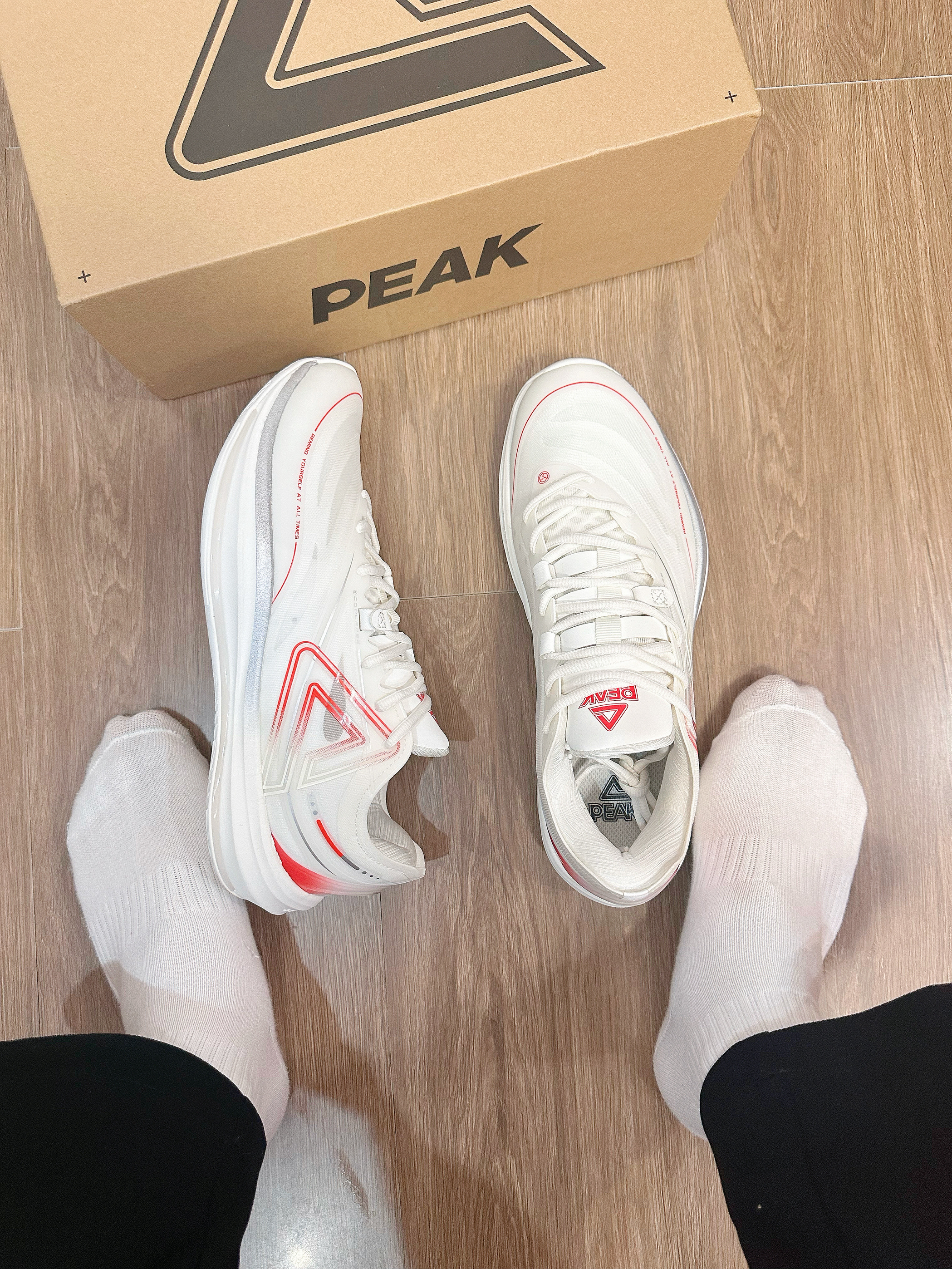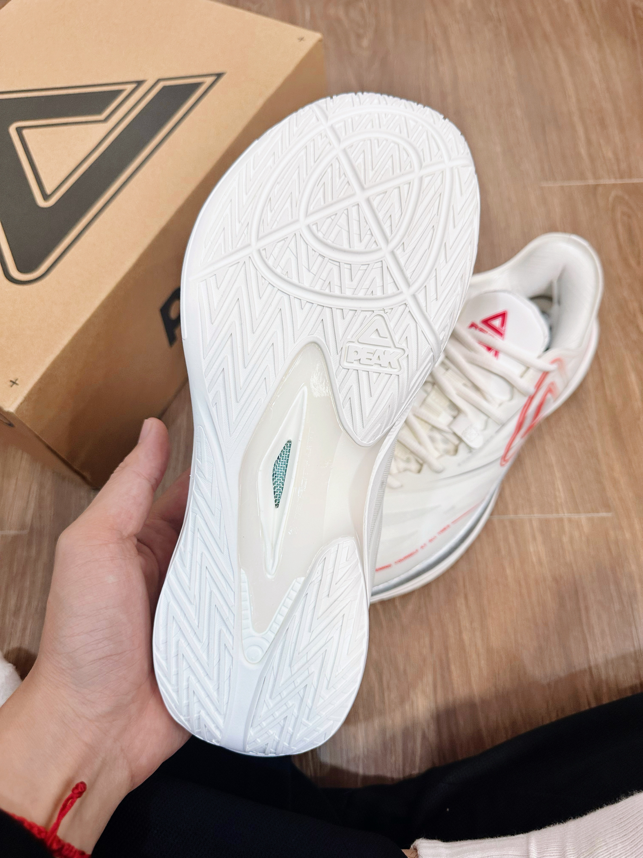 Hey小伙伴们,今天给大家分享一双匹克新出的篮球鞋-轻灵3.0初心配色! 首先白红配色,这个颜值是我很喜欢的! 鞋面是网纱材质➕热压工艺,透气性是没的说的! 中底是采用全掌轻弹科技➕匹克态极科技!缓震还不错,抓地力也还行! 低帮设计,不容易掉跟,包裹性不错! 码数建议拍大一码,平常我穿41的,适合脚瘦的,低脚背的人群!