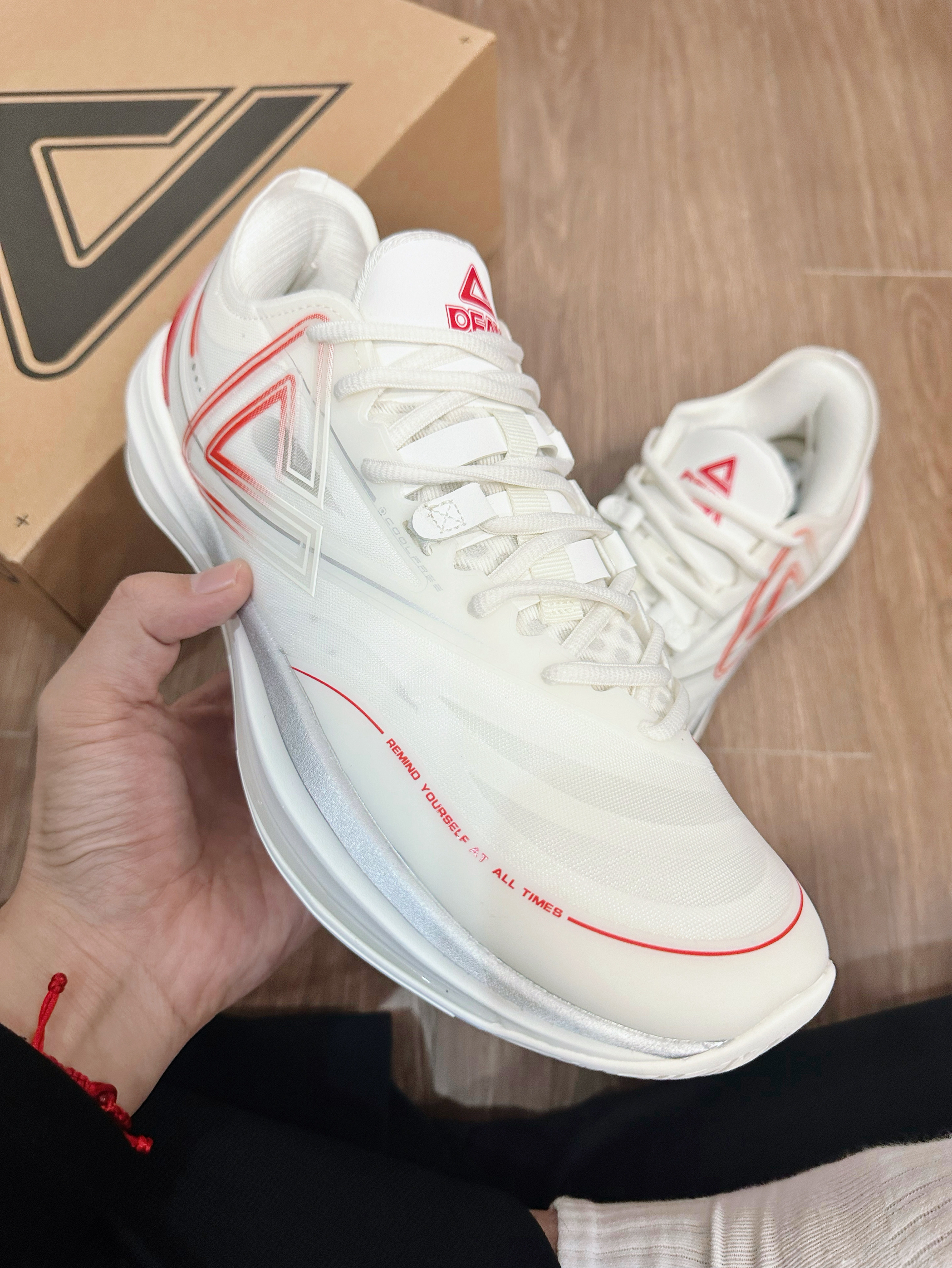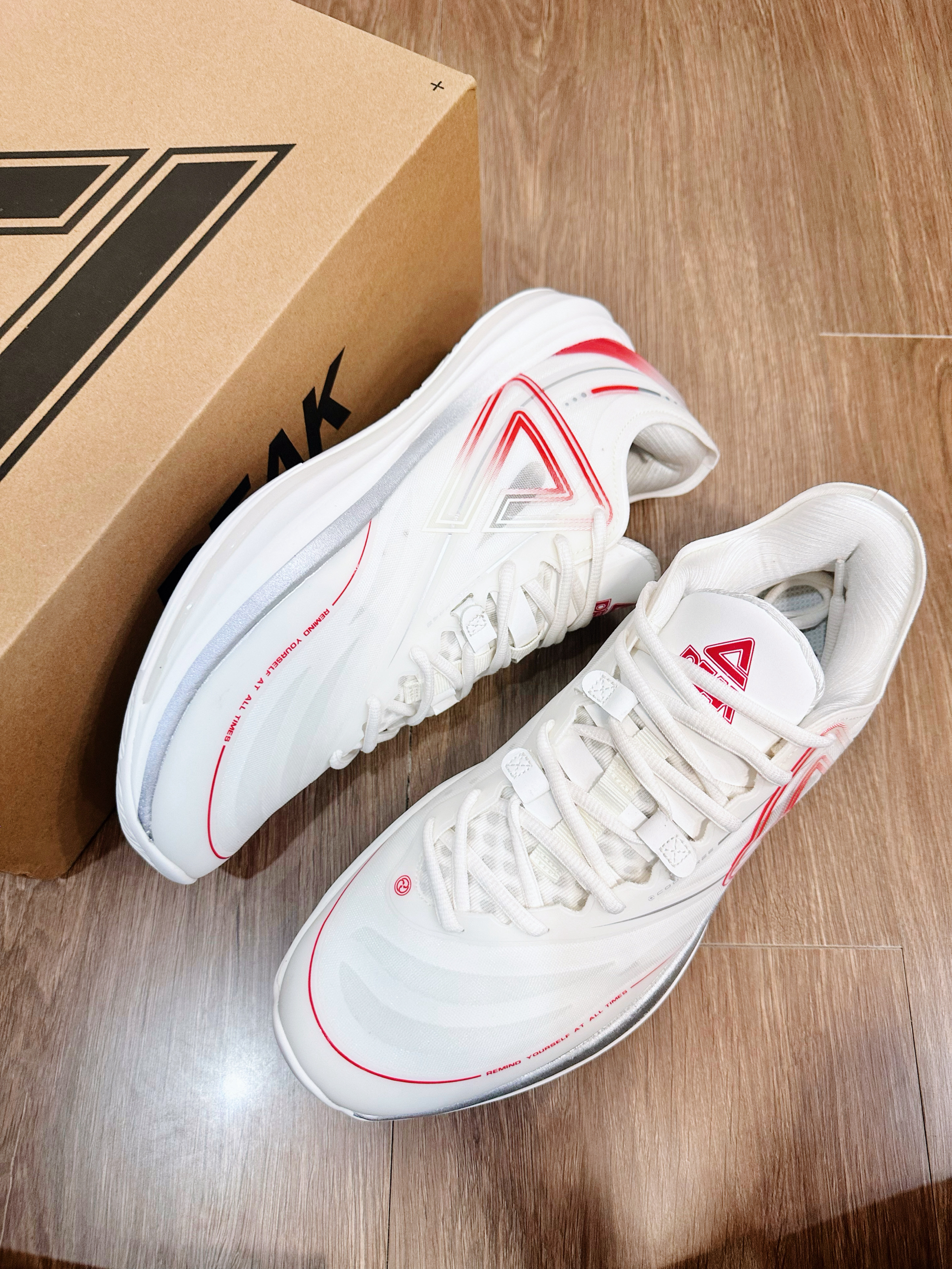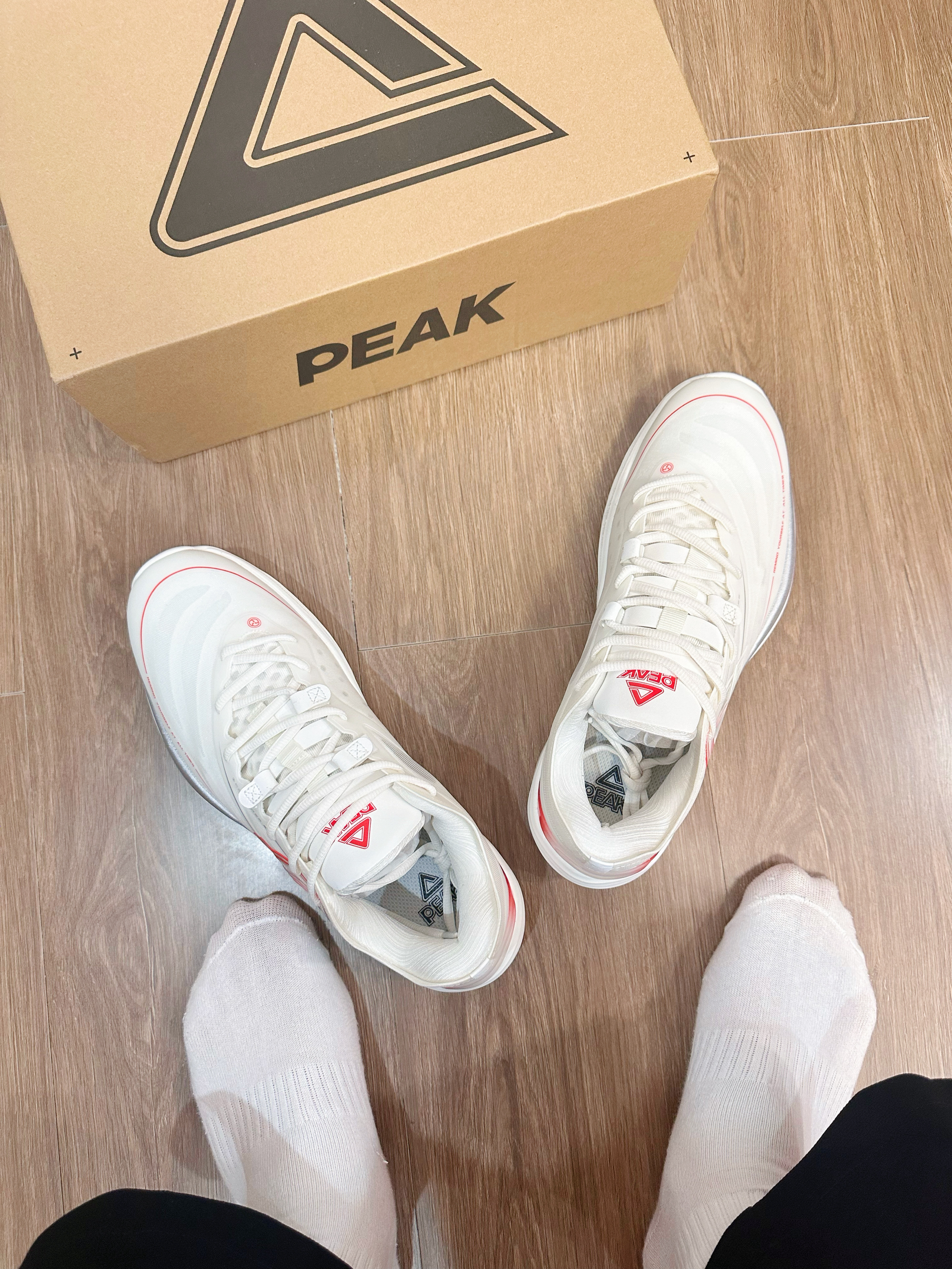 Hey小伙伴们,今天给大家分享一双匹克新出的篮球鞋-轻灵3.0初心配色! 首先白红配色,这个颜值是我很喜欢的! 鞋面是网纱材质➕热压工艺,透气性是没的说的! 中底是采用全掌轻弹科技➕匹克态极科技!缓震还不错,抓地力也还行! 低帮设计,不容易掉跟,包裹性不错! 码数建议拍大一码,平常我穿41的,适合脚瘦的,低脚背的人群!