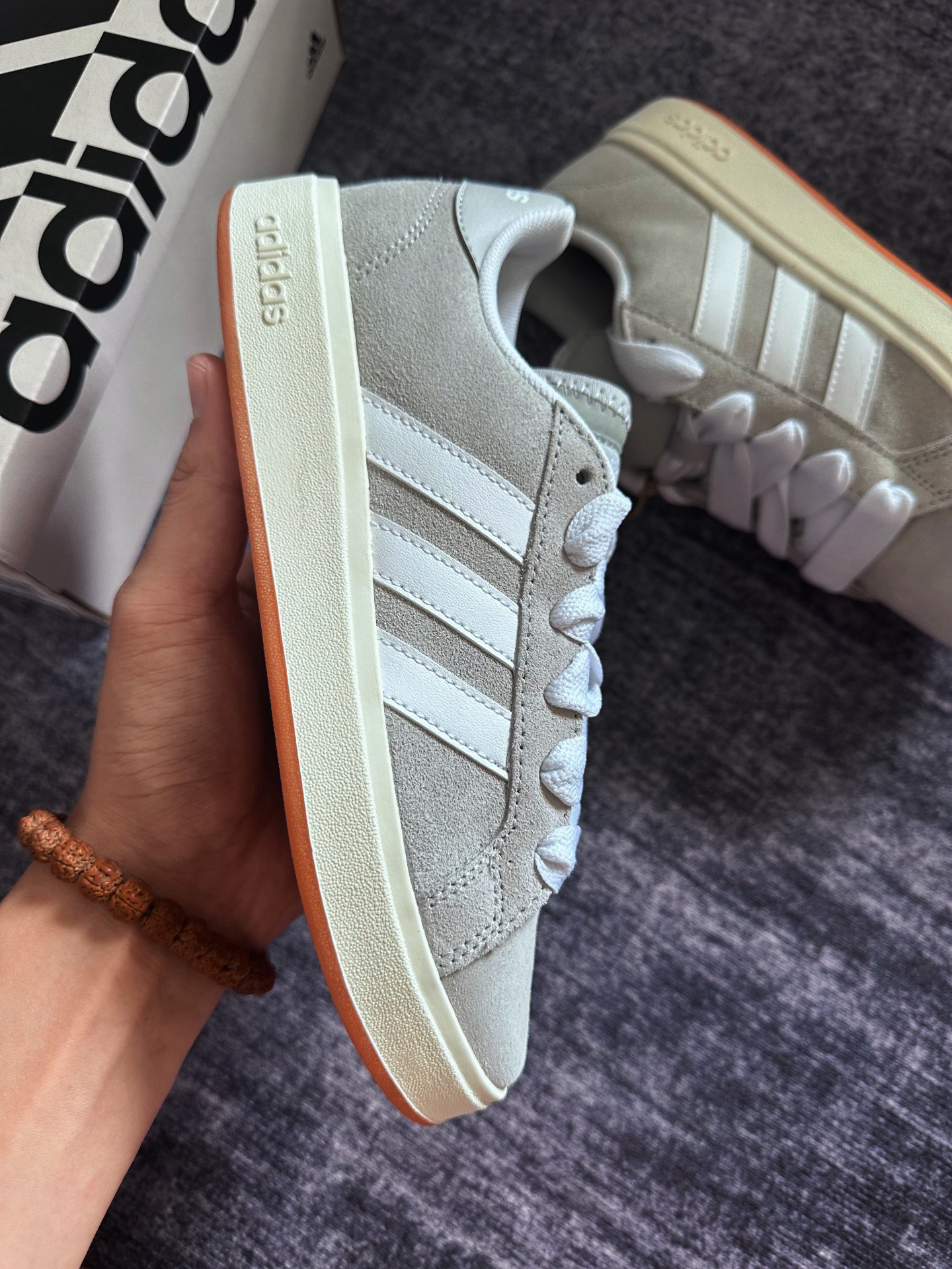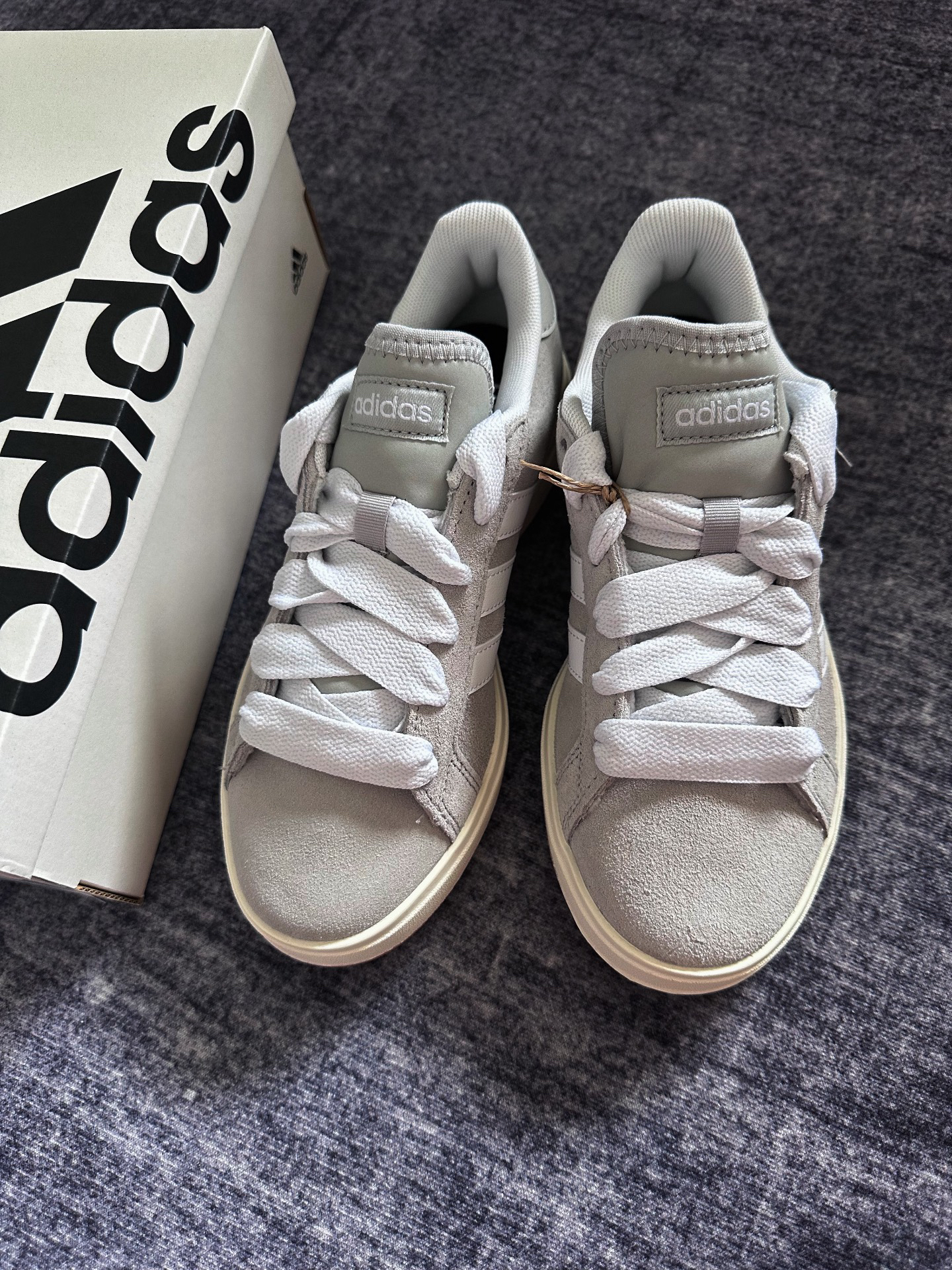 本篇笔记关联了adidas Grand Court Base 00s 面包鞋 板鞋 防滑耐磨轻运动合成革薄底贴合 浅灰色/白色/树脂黄等商品,为用户提供真实的使用体验和购买参考。