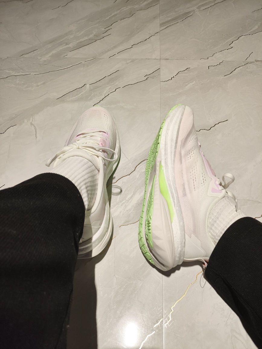 🔥 三大亮点让它成体测“真香款” - 颜值暴击!春日氛围感拉满 白粉渐变鞋面+马卡龙绿底,像把樱花季踩在脚下,出街被3个姐妹追着问链接,体测时穿它秒变跑道焦点✨ -透气回弹双开挂,跑800米像踩弹簧 双层贾卡鞋面超透气,跑完5km脚底不闷汗;全掌中底黑科技回弹绝了,起跑时脚感像被弹簧助推,800米冲刺时明显感觉省力带风💨 - 扁平足救星!稳到像装了“防滑雷达” 足弓支撑设计太懂扁平足了!跑跳时脚底...