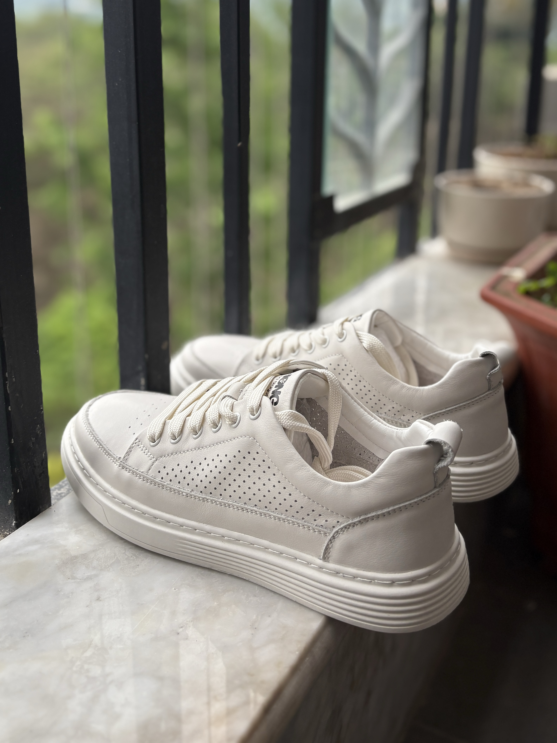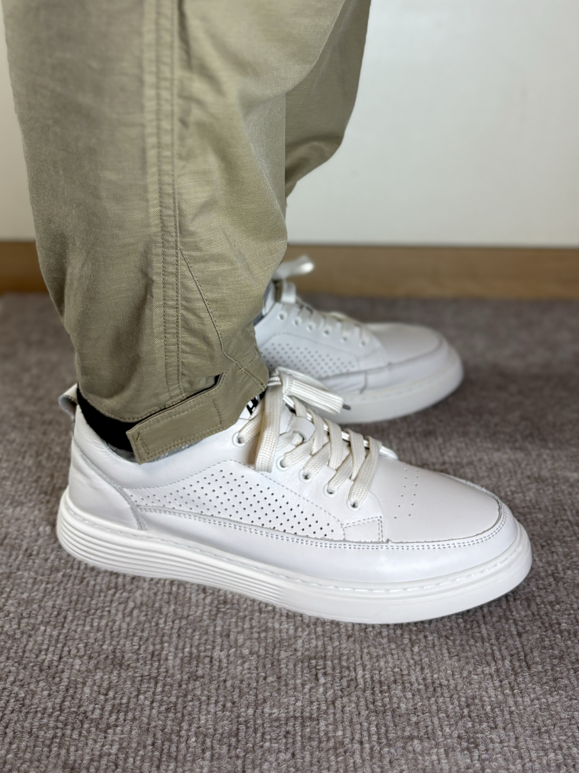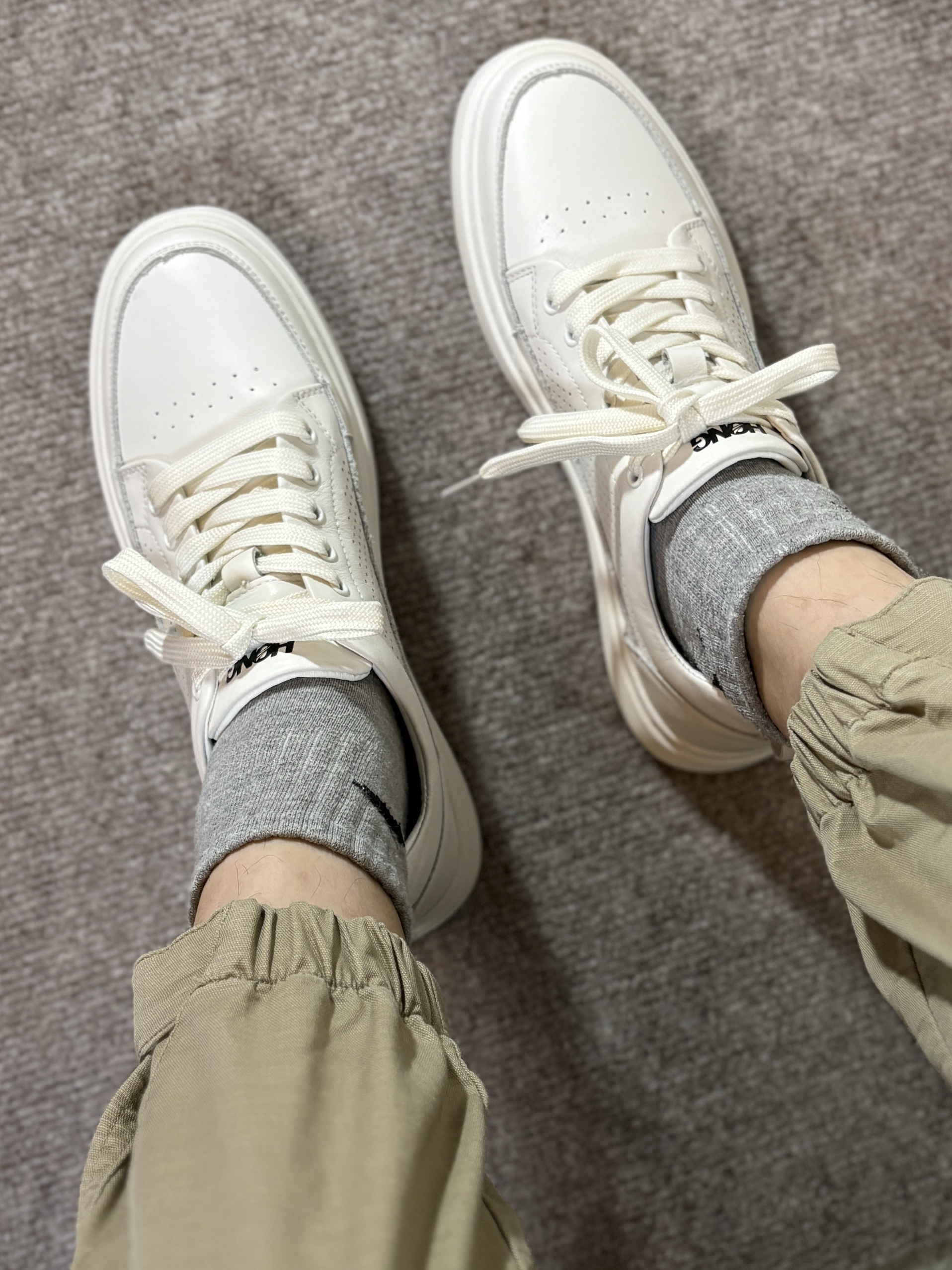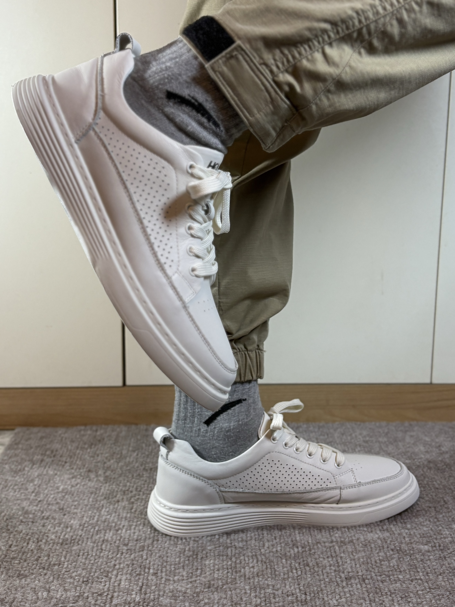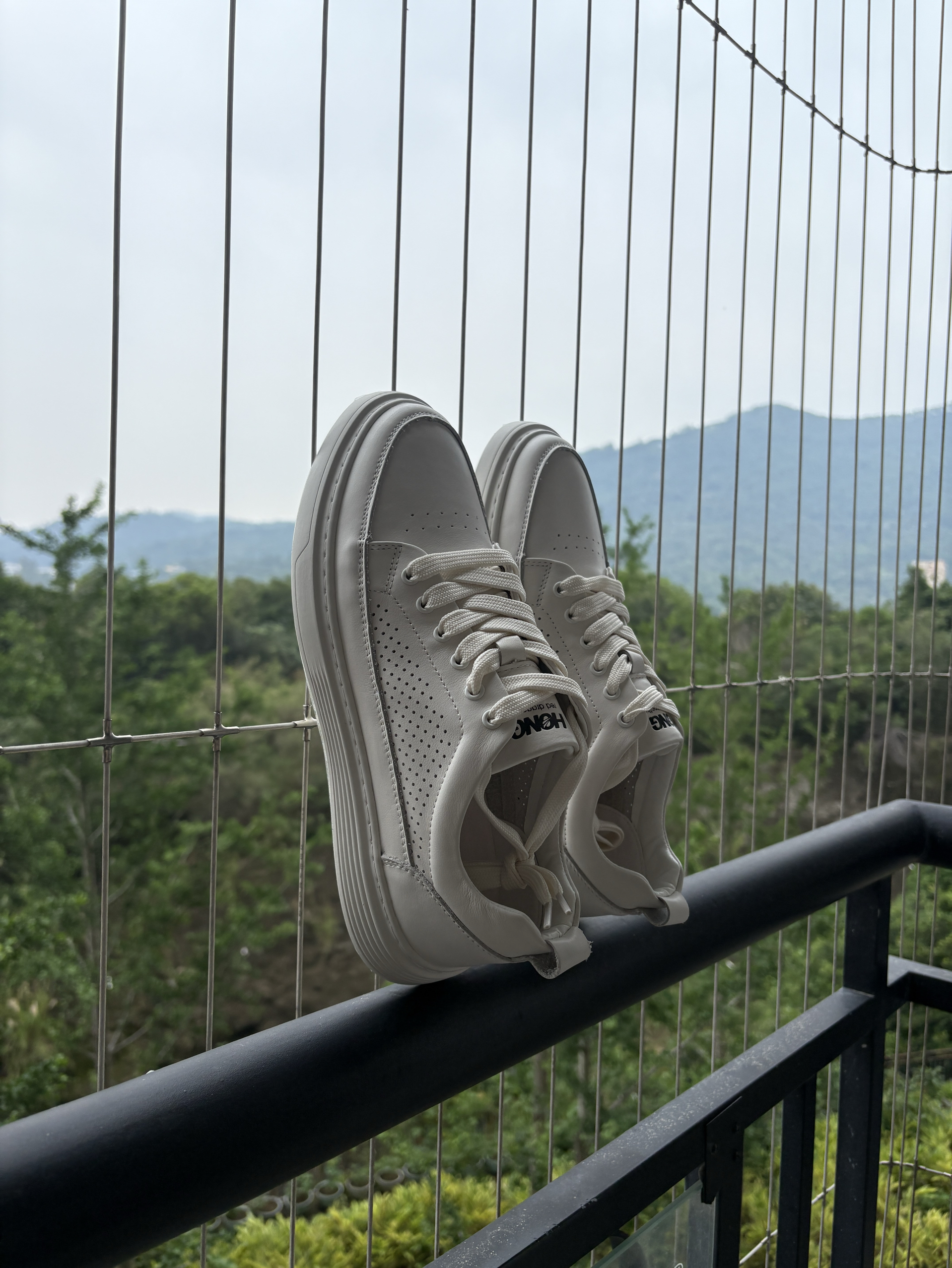 南方的临夏时节气温都大20几度了,穿运动鞋👟或者皮鞋👞多少会有点闷脚🦶。 可是这双 红蜻蜓 皮质板鞋👟适合这个时候穿。 首先它的鞋面材质是用很薄很软的皮革做成的,触感很舒服也不闷热,前面和侧身有很多透气孔。 后跟虽然也是薄料,可是有个前倾斜度,包裹性挺好的不会脱脚,软皮也不会咯脚🦶。 鞋底软弹缓震效果好,外底纹路密布,防滑性强。 鞋码感觉有点偏小,可以选大一码或半码。