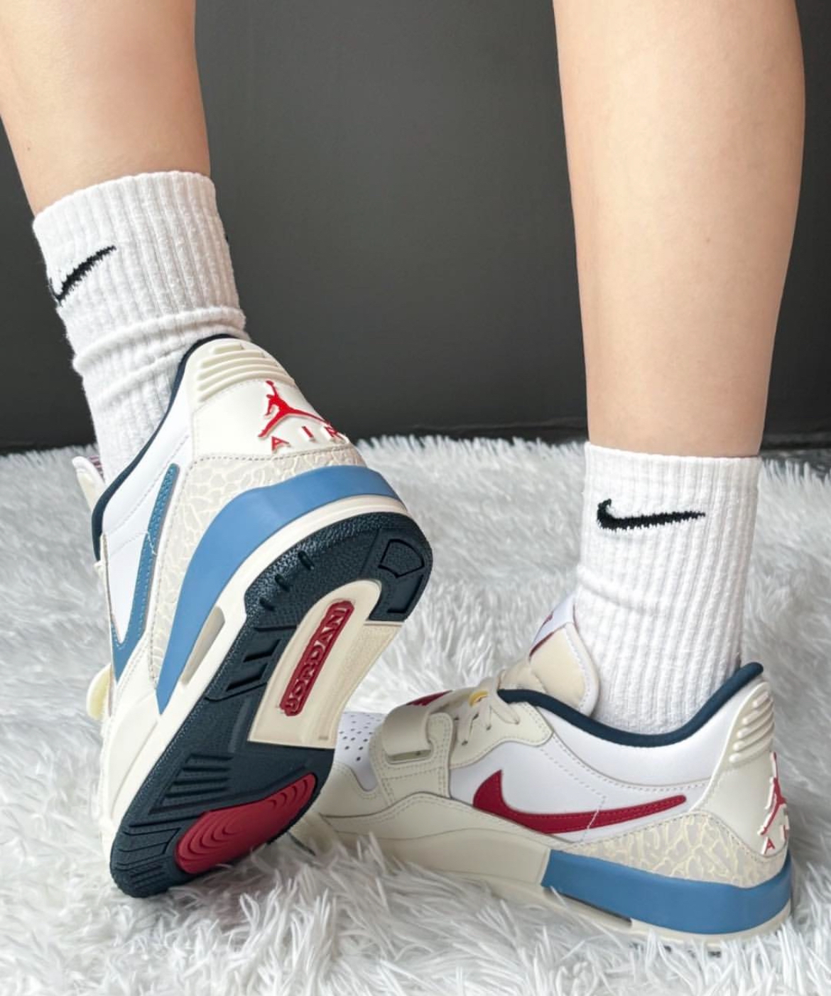 入了这双Air Jordan Legacy 312女款,鞋面材质摸着舒服。魔术贴设计很吸睛,上脚后包裹感不错。中底有缓震,走路不累。就是魔术贴可能有点压脚背。 #AJ312 #耐克女鞋 #复古运动鞋 #上脚体验 #舒适穿搭