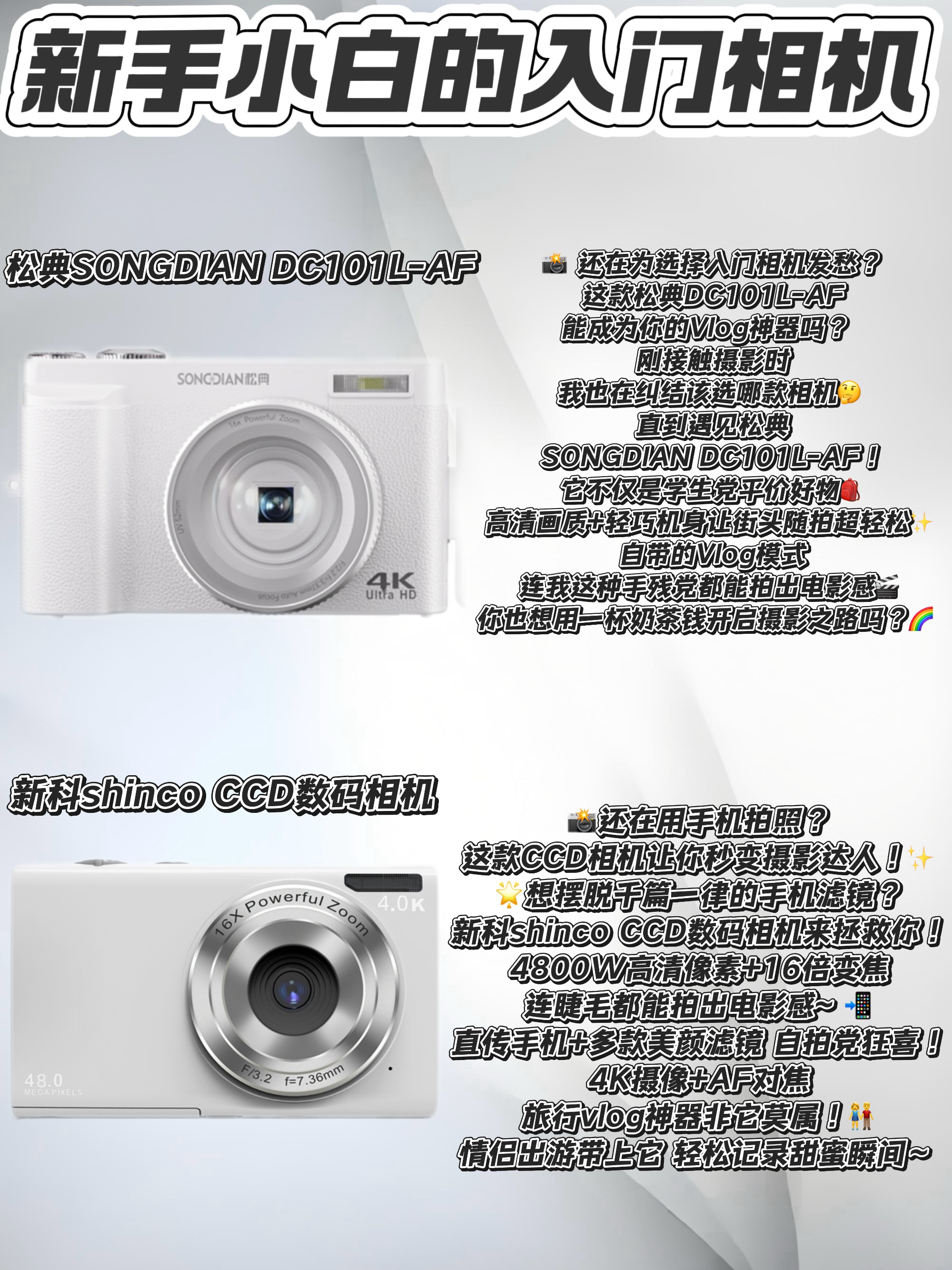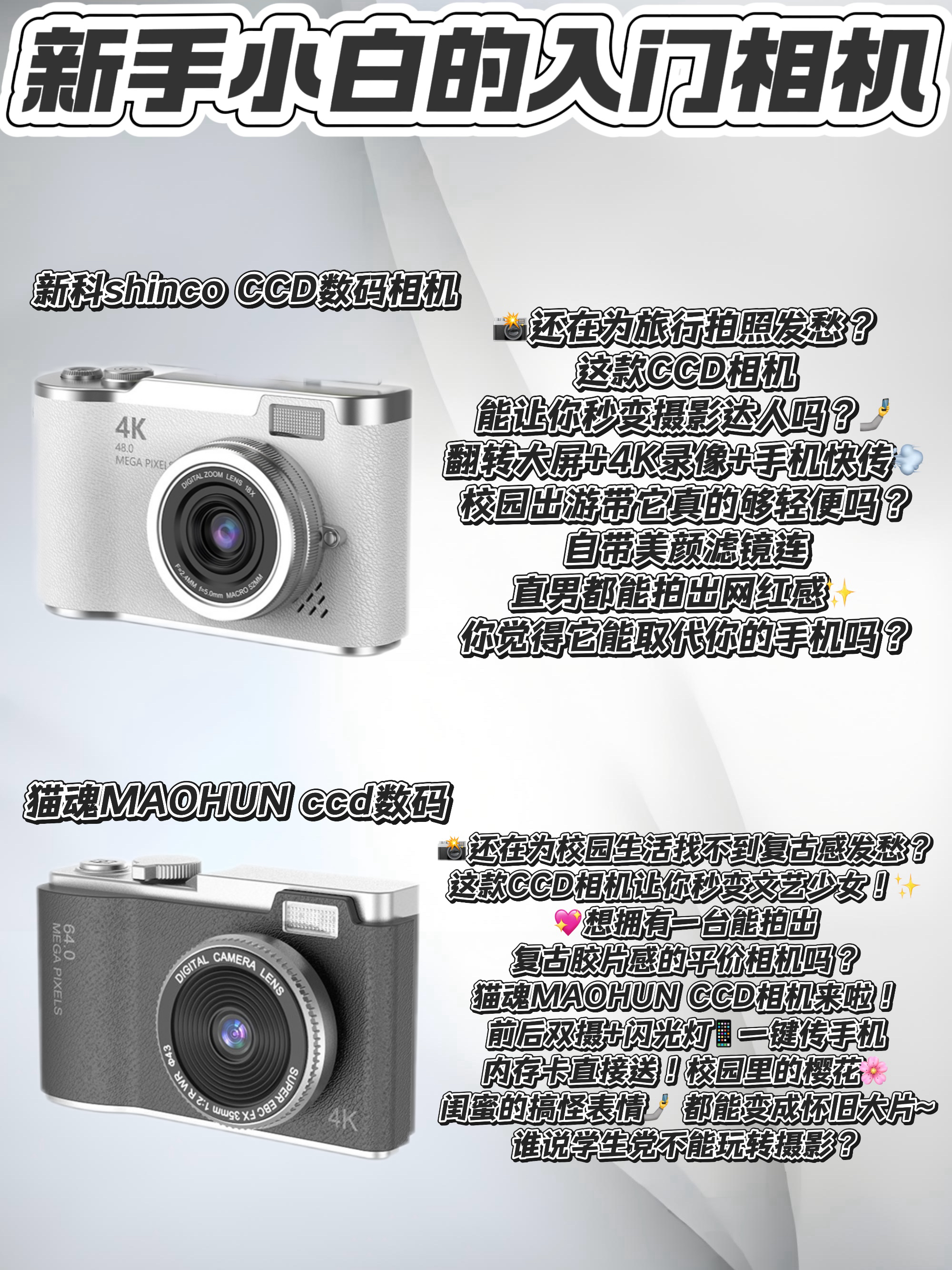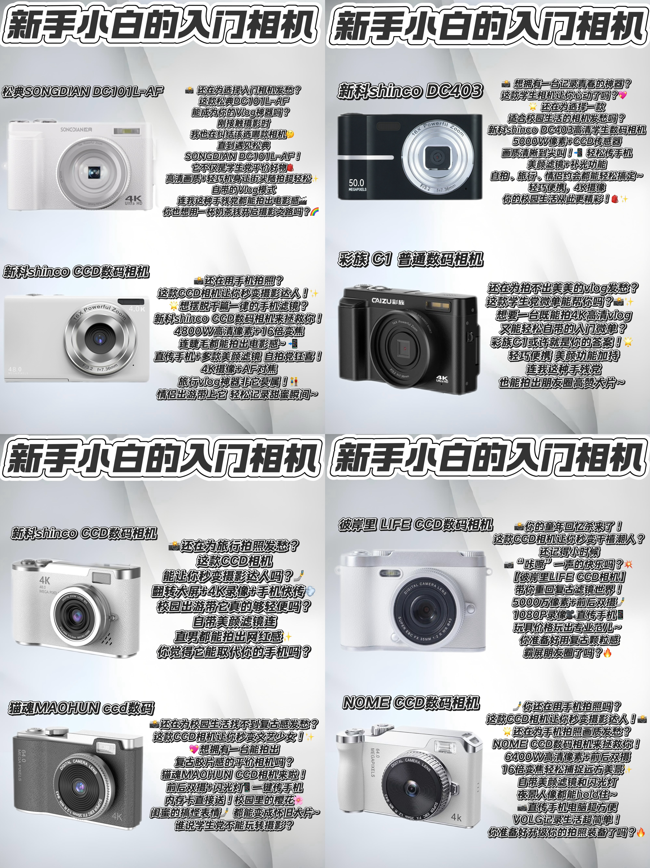 还记得你人生中首台相机的兴奋感吗?🤔 当CCD复古风潮席卷朋友圈,你是否也陷入选择困难? 松典SONGDIAN DC101L-AF的胶片质感滤镜 🎞️、新科shinco翻转屏的180°自拍魔法 ✨、彩族C1的4K美颜加持 💄... 每台相机都在我旅行日记里留下独特印记:NOME的16倍变焦拍下雪山金顶🏔️,猫魂MAOHUN的复古色调让咖啡馆照片瞬间穿越90年代📻 哪款才是你的本命相机?👉 ...