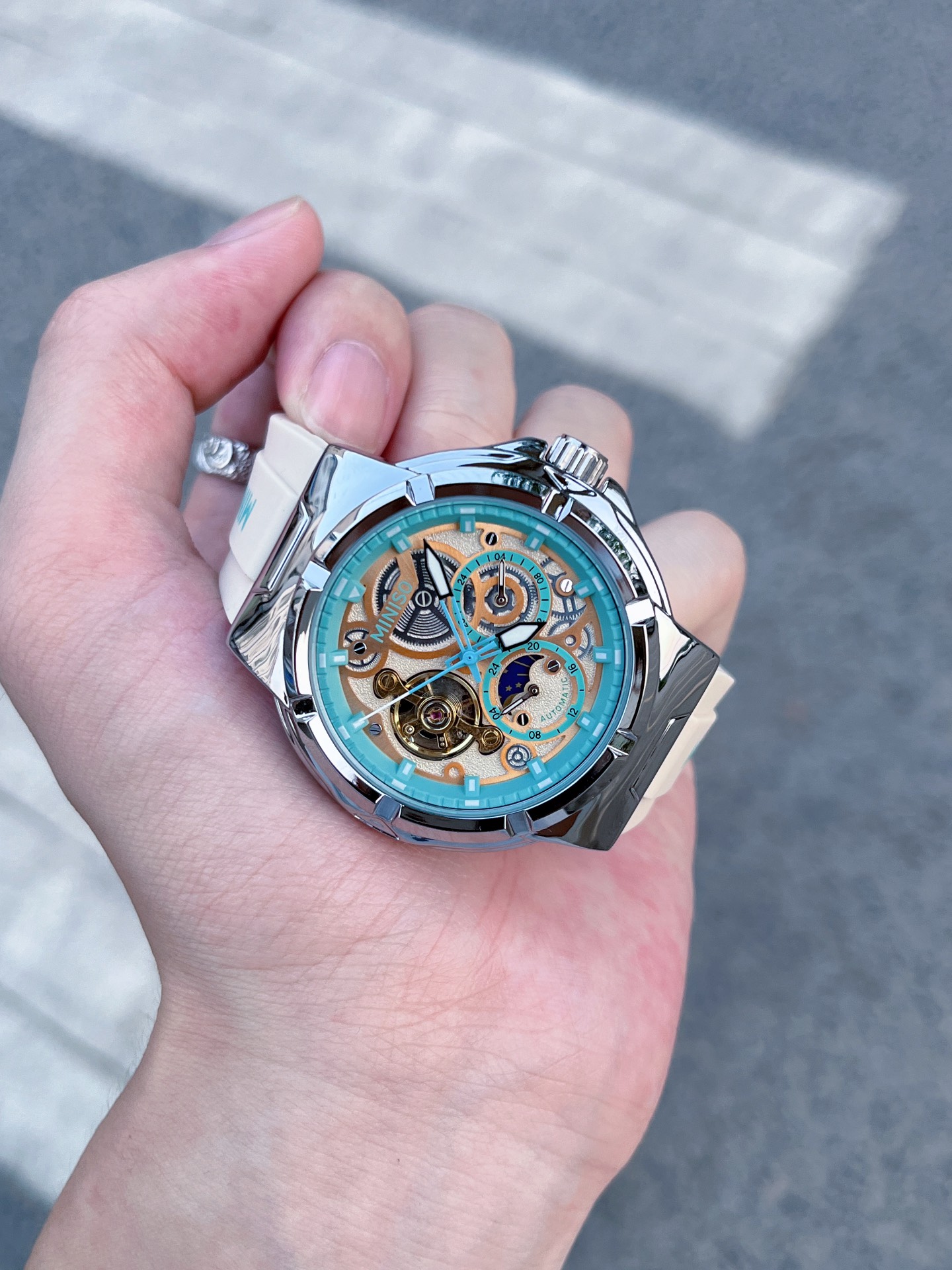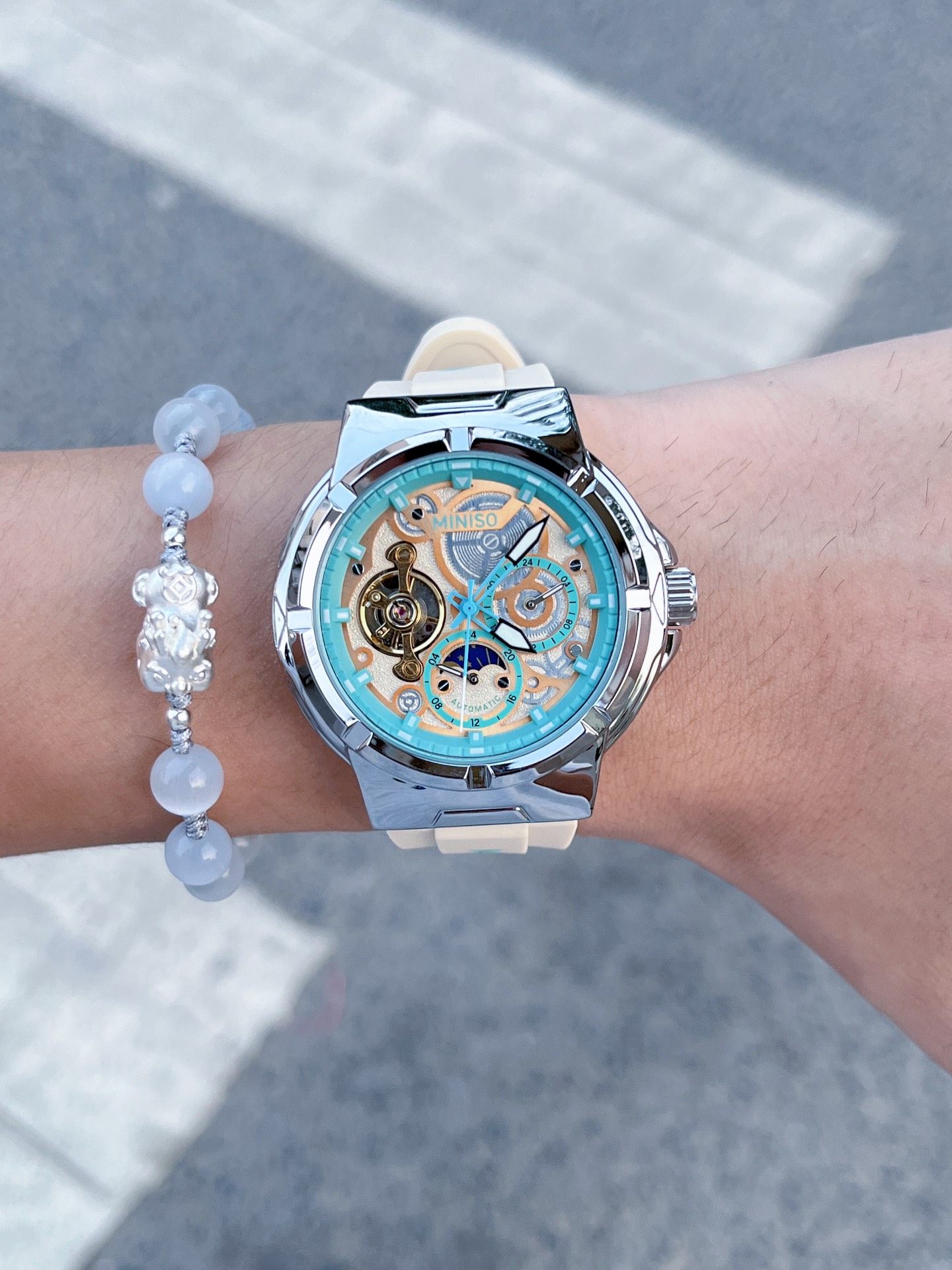 本篇笔记关联了MINISO/名创优品 机械之心 防水高中生多功能高清夜光全景透视日月星辰日历机械风自动机械男女同款手表 米白色等商品,为用户提供真实的使用体验和购买参考。