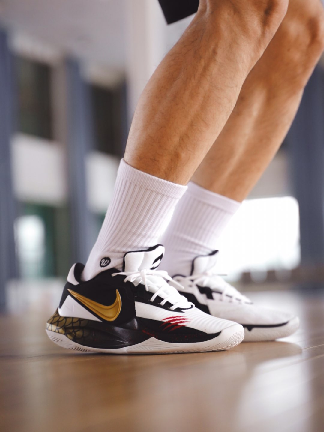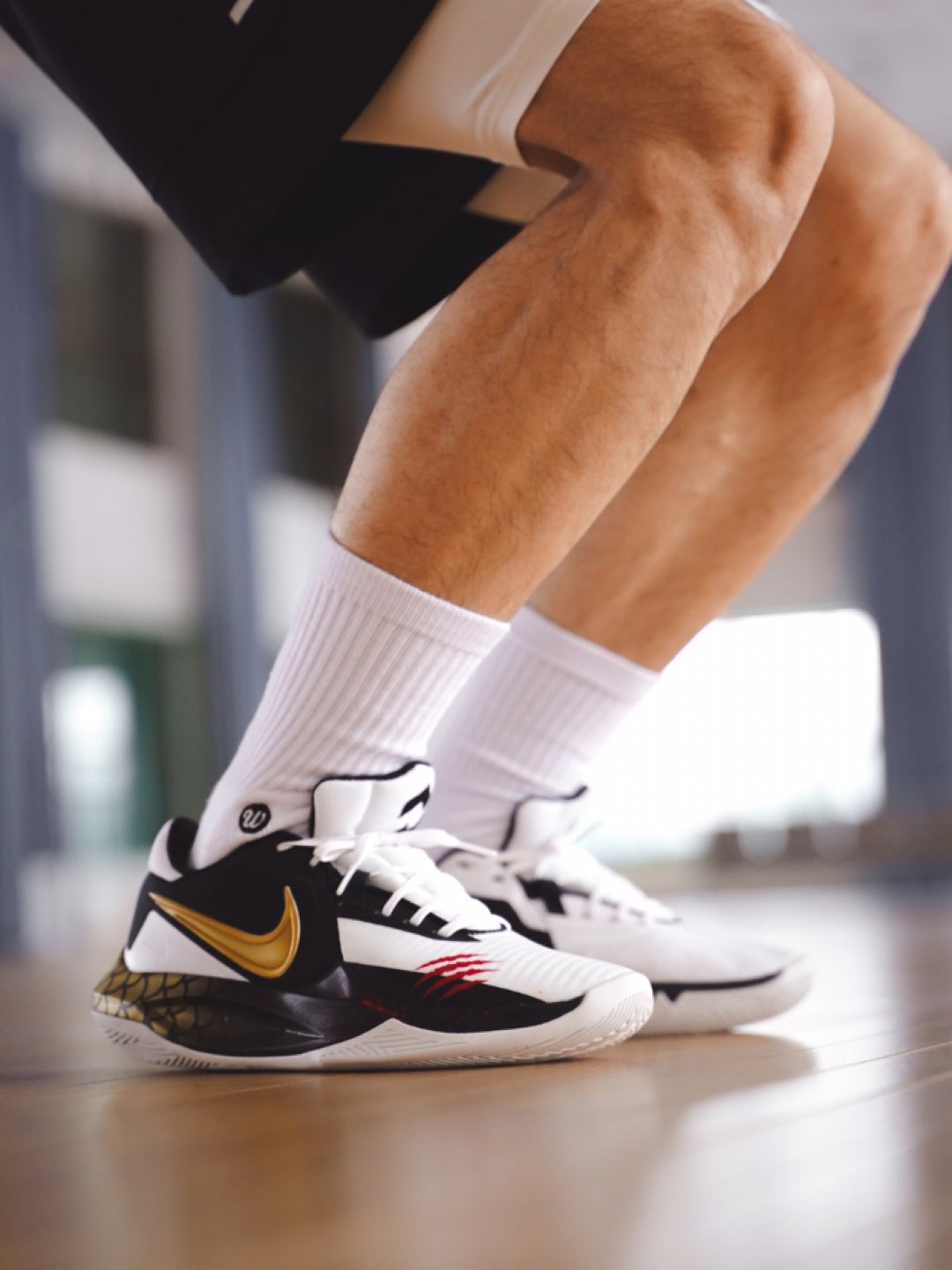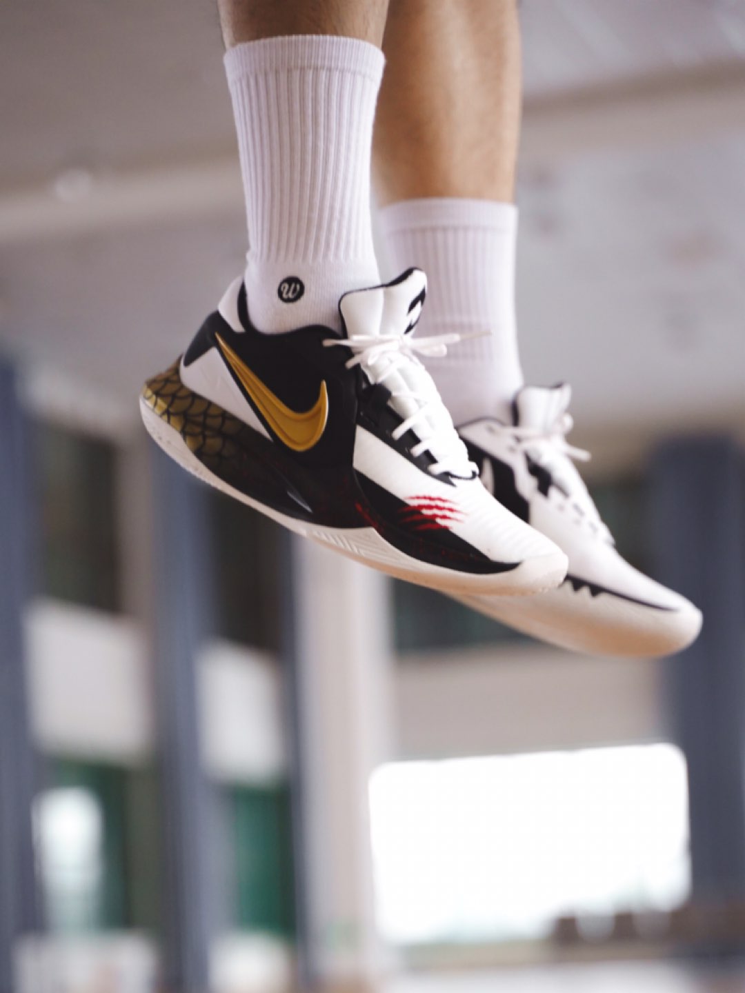 第一眼看到精密6的鞋型的时候,就被它侧面这种有跳跃感的鞋底深深吸引,虽然我知道他是篮球鞋,但却有一种跑鞋的即视感,穿上脚就会不由自主的想跳,金色的swoosh和龙鳞的鞋底,真的太适配这双黑白相间的配色了,所以我说他是李小龙配色的精密6不为过吧? 毕竟,2824,龙年就要来了!龙年穿龙鞋!