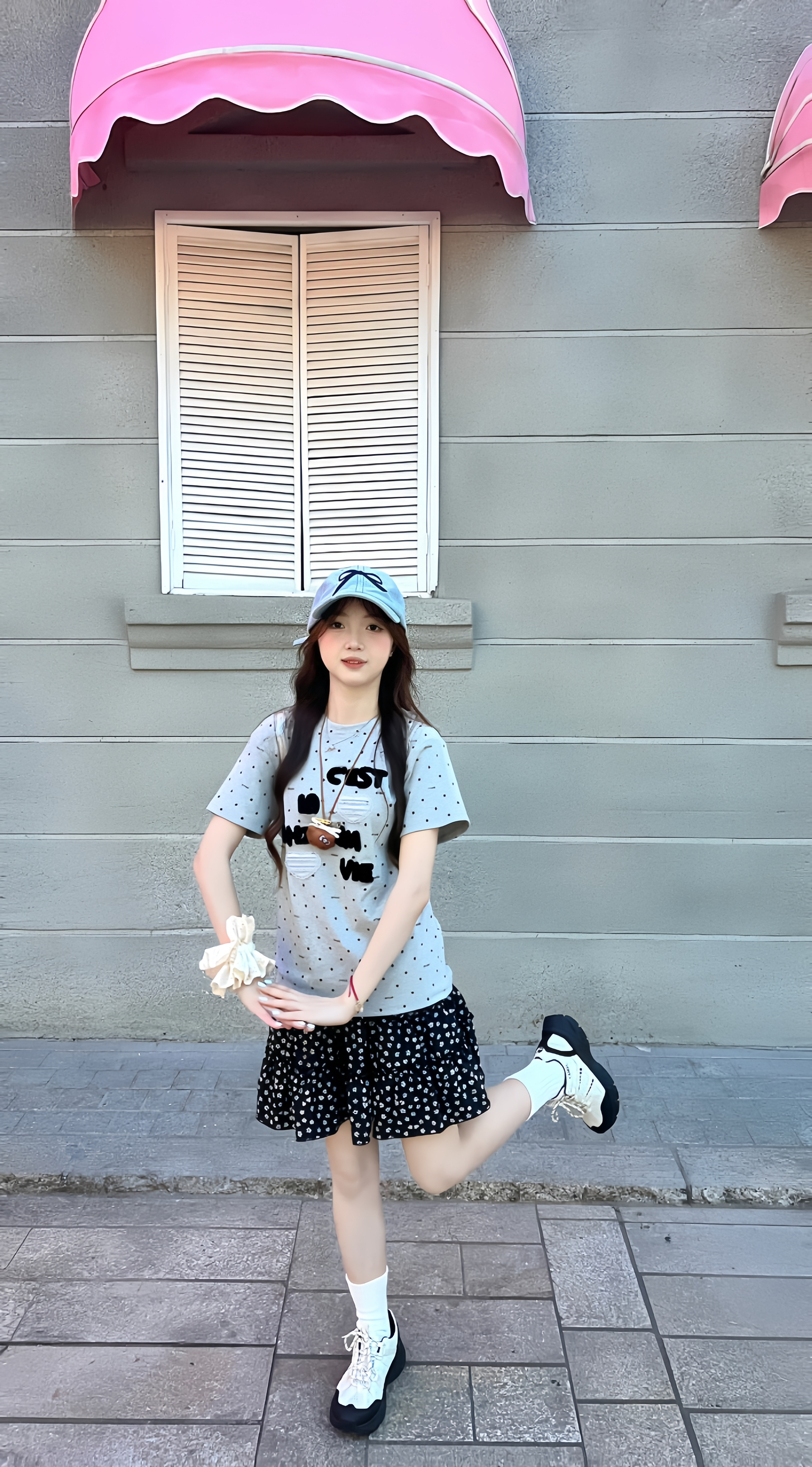 🫧存一些户外街边松弛感拍照~ 👕:ENJOG studio 👟:骆驼城野 💭最近挖到一双夏日休闲鞋👟 上脚的很轻便舒适 长时间的citywalk也不会累脚 搭配的素一身灰色系和波点图案元素 日常ootd 松弛感拿捏!