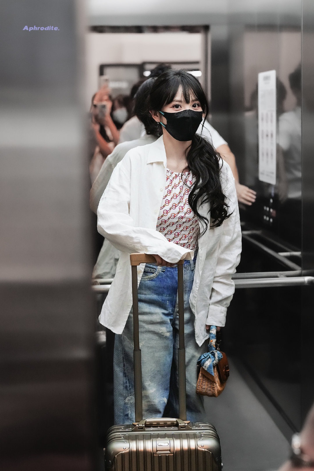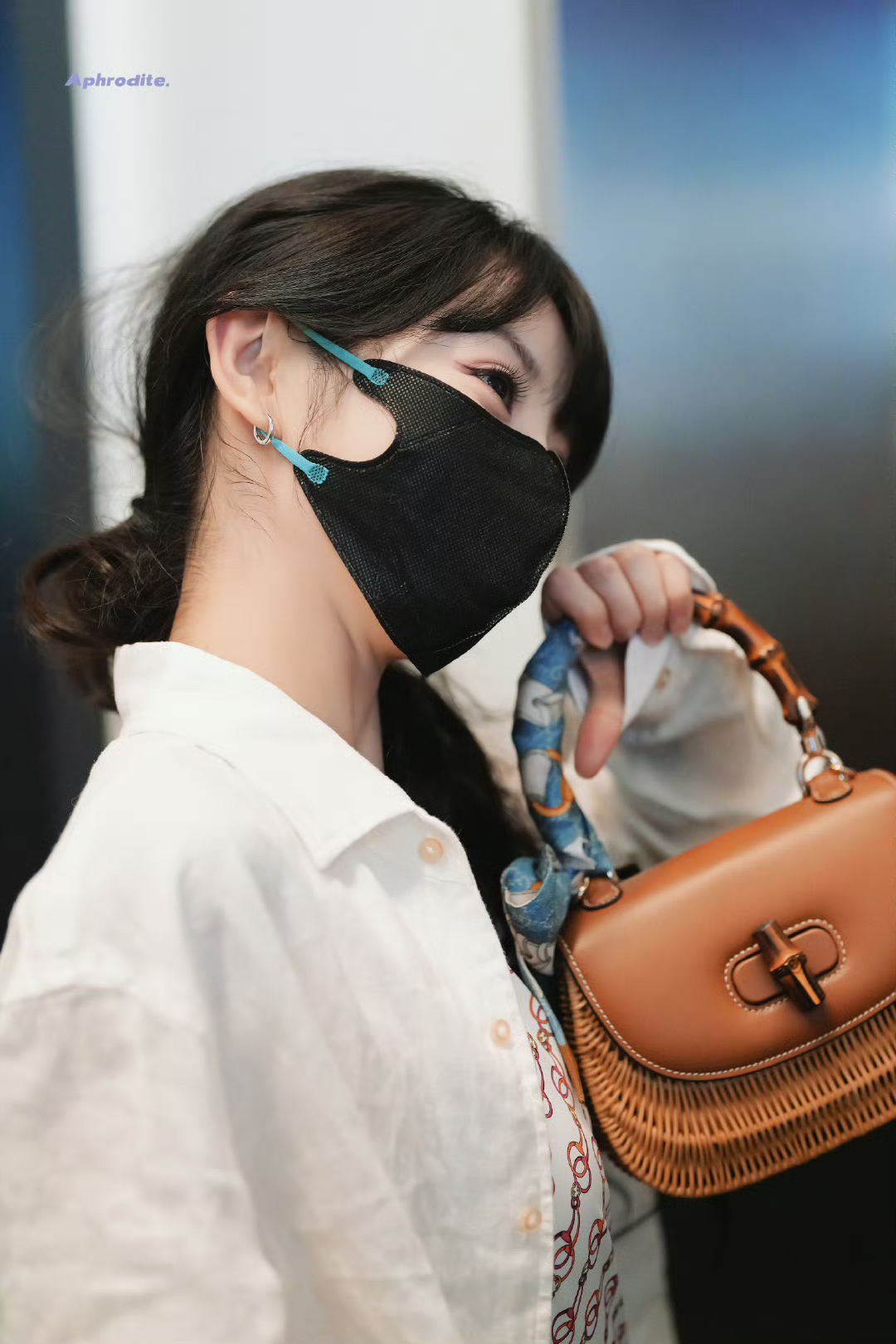 田曦薇更新了5月26日机场私服,白色衬衫内搭印花泳衣,时髦又性感,小田的美背第二没人敢第一了! CR:@Aphrodite_田曦薇 泳衣: GUCCI 裤子: OUR RUNNER 鞋子: GUCCI