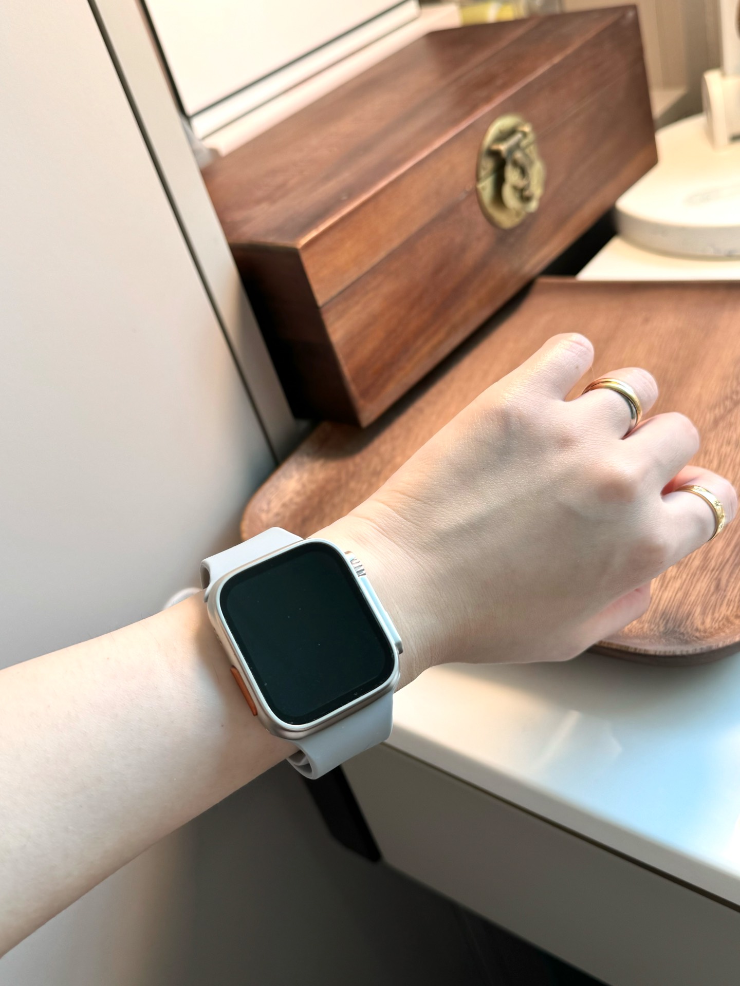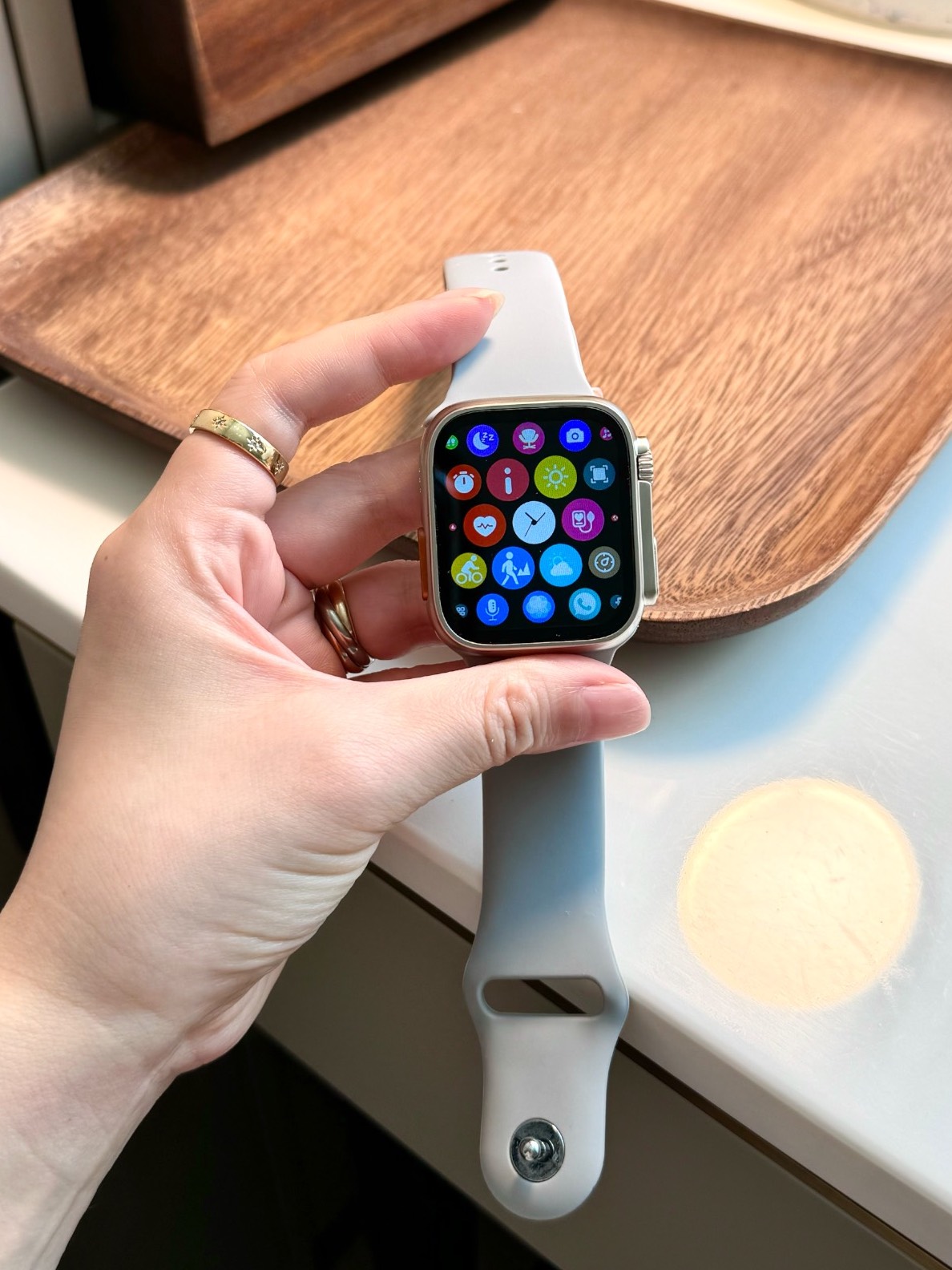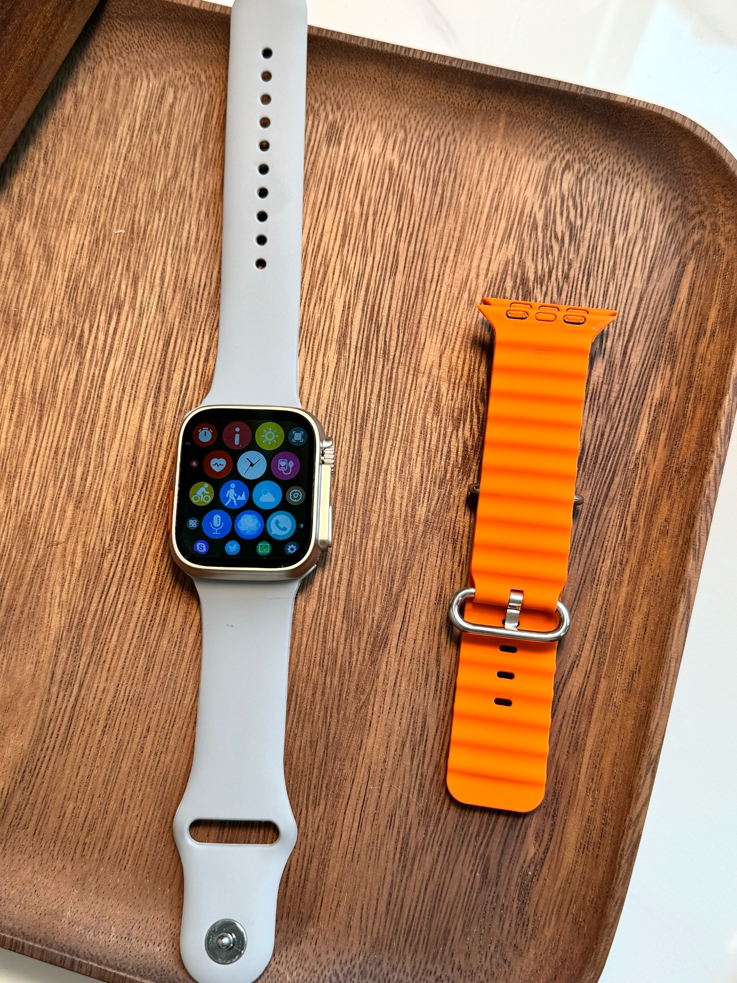 ✨拿到手有被惊艳到,在平价智能手表中能有这个颜值的真的很少啦~屏幕用起来也是很丝滑! 成像也很清晰!✨表盘可选择,心率,运动等功能也是齐全的!表身整体轻巧舒适,配有两根颜色不同的表带,我感觉跟灰色的会更好看一些!
