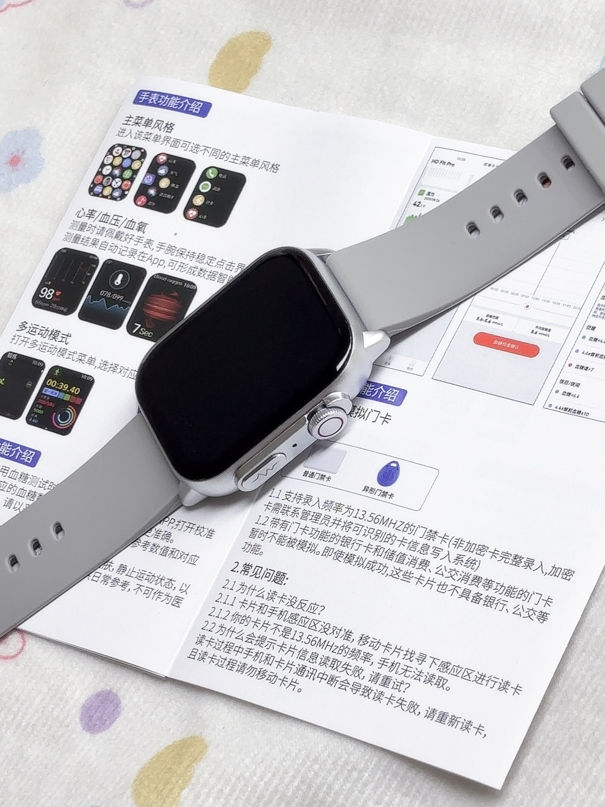 🍀它有很多功能: 比如健康监测超精准,实时追踪心率、步数和睡眠质量像专属私人健康管家,帮咱时刻关注身体状况。就不一一打字了 也可以连接手机什么的 超级方便 外观和其他的手表差不多 但是这个的续航是真的给力 很适合我这种电量焦虑的人