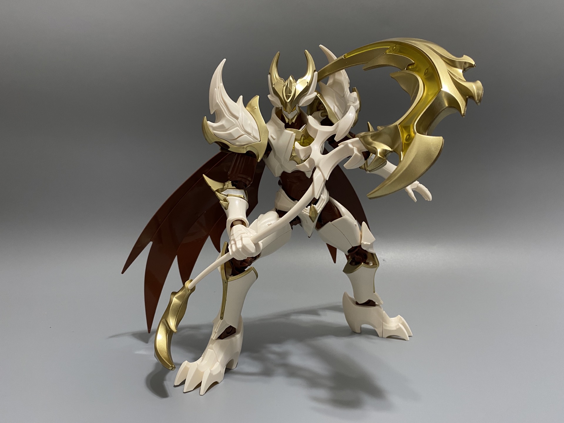 这是我玩的第四款奇妙积木王者荣耀角色了! 拼装过程依然丝滑,而且零件数量相比其他几款也要少一些,可能因为单个零件都比较大的原因。 最关键的是水贴也是最少的一款,一共只有三处需要贴,相比其他几款,节约了不少制作时间! 可动方面除了大腿平抬会受大腿外甲影响,不能抬太高以外,其他可动都比较理想! 虽然武器很重,但摆造型的时候找好支点,也能站得很稳!