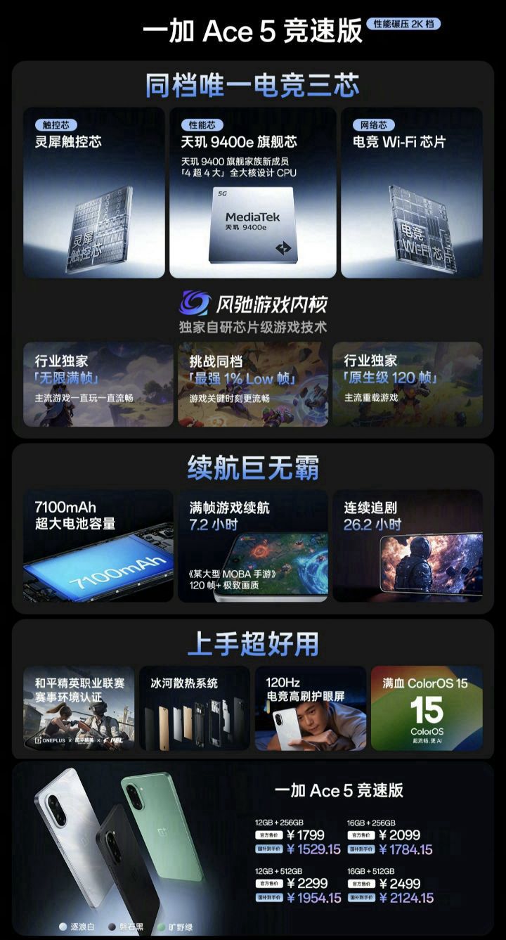 本篇笔记关联了OnePlus/一加 Ace 5 至尊版 手机 天玑9400+ 风驰游戏内核 清风蓝、OnePlus/一加 Ace 5 至尊版 手机 天玑9400+ 风驰游戏内核 燃力钛、OnePlus/一加 Ace 5 竞速版 手机 天玑9400e旗舰芯 游戏性能 风驰游戏内核 全网通 旷野绿等商品,为用户提供真实的使用体验和购买参考。