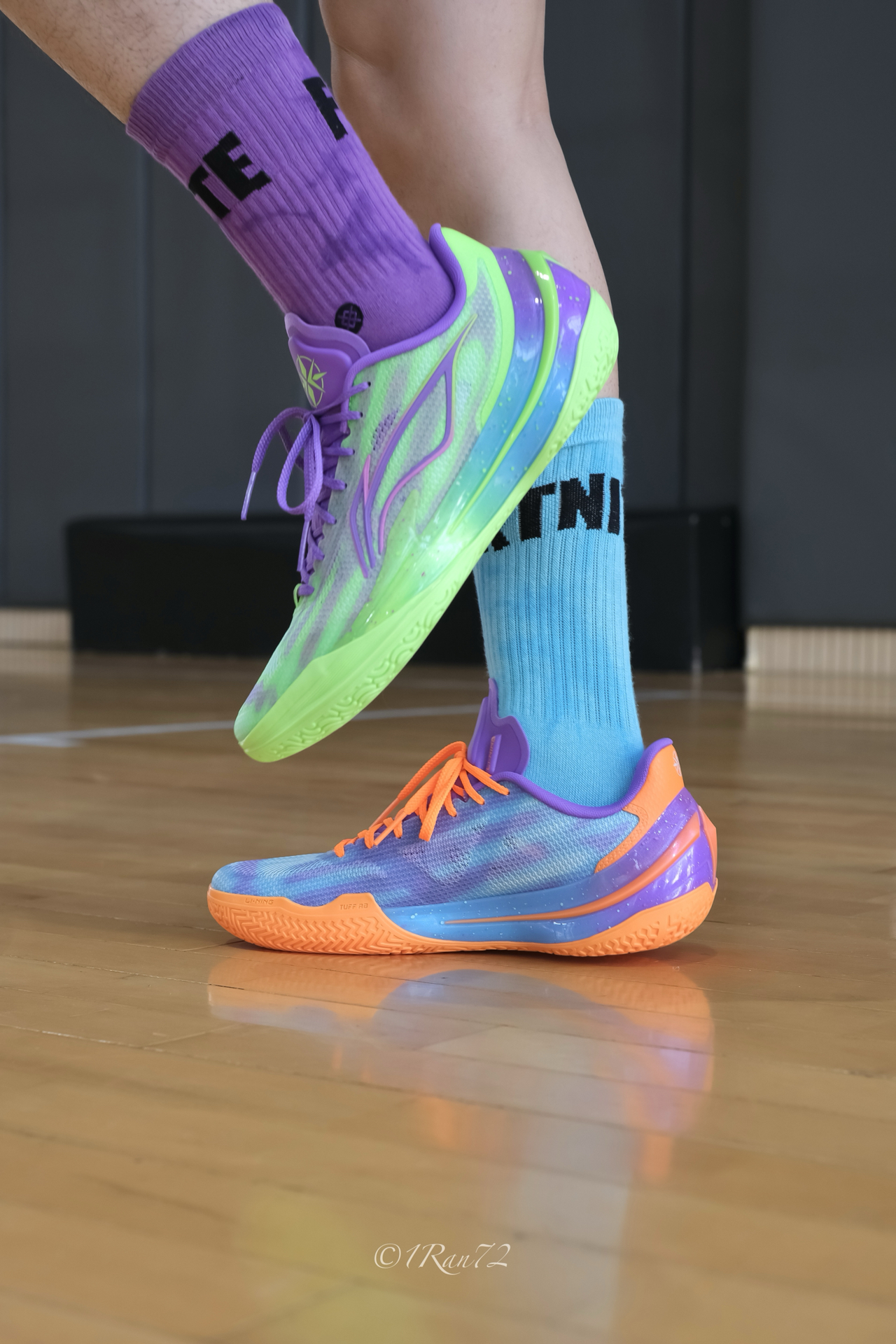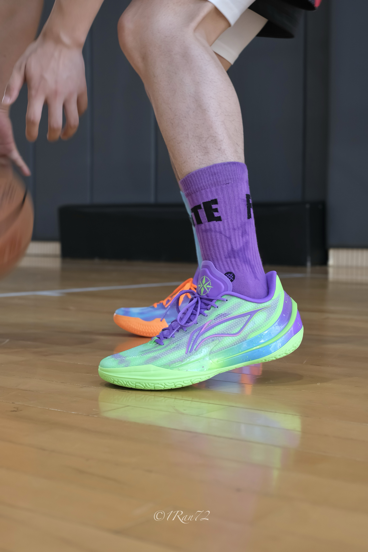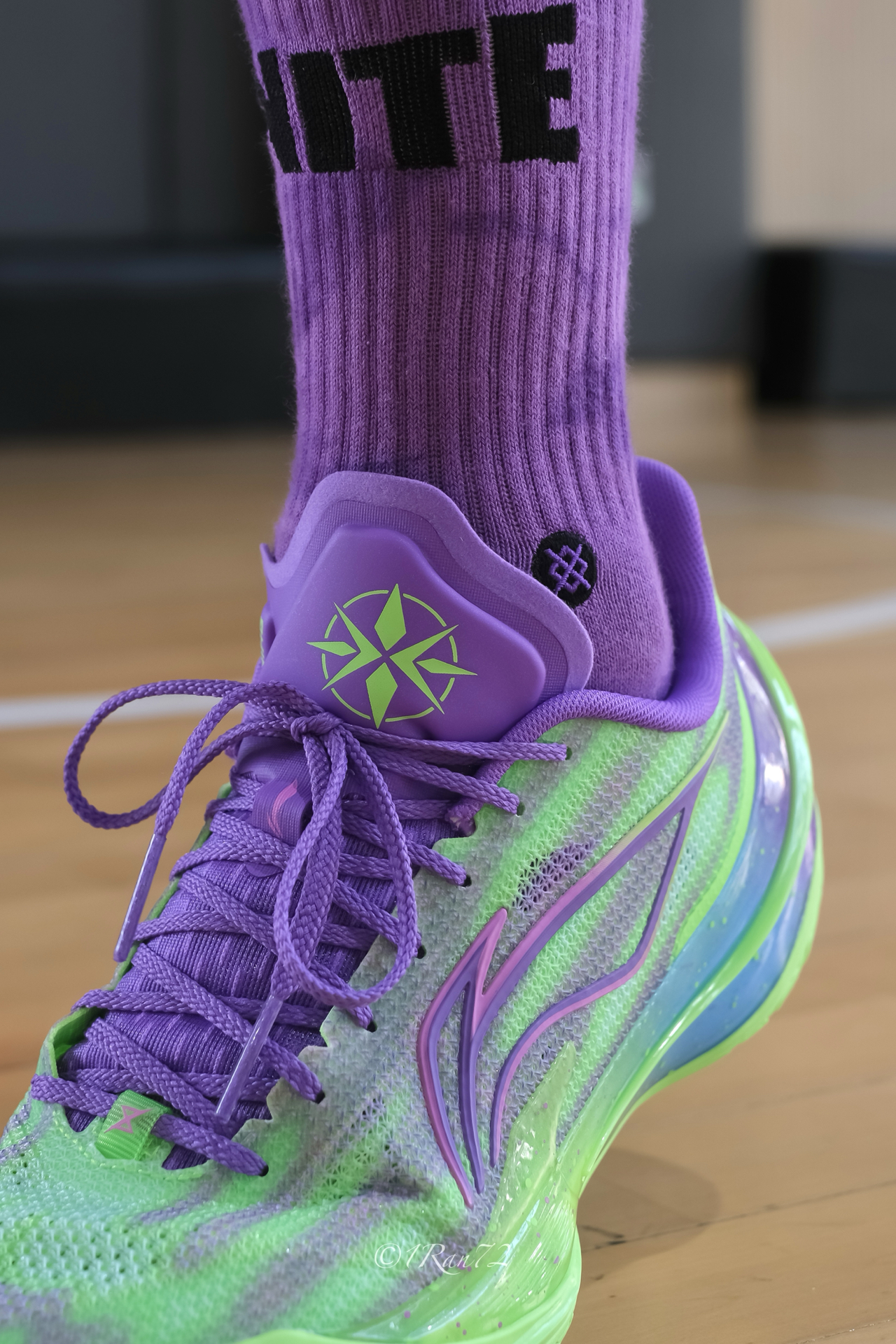 分享下利刃5V2新配色过山峰实战体验,荧光绿紫鸳鸯配色,有点 what the 系列的感觉,回头率拉满。 与之前配色相比鞋面也有微小的改动,混合TPU纱缠绕编织鞋面,网眼更大些,透气也好一些,强度够用。包裹舒适,不需要磨合上脚就能打。中底聚核芯系统,䨻与 Pebax 一体化,脚感韧中带弹,落地缓震明显,不会震脑壳。 TUFF RB橡胶大底,内侧人字纹外侧水波浪纹,纹路深切粗,室内木地板上抓地防...