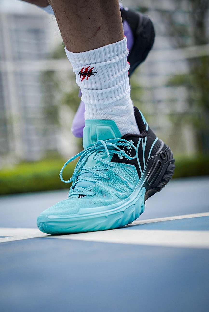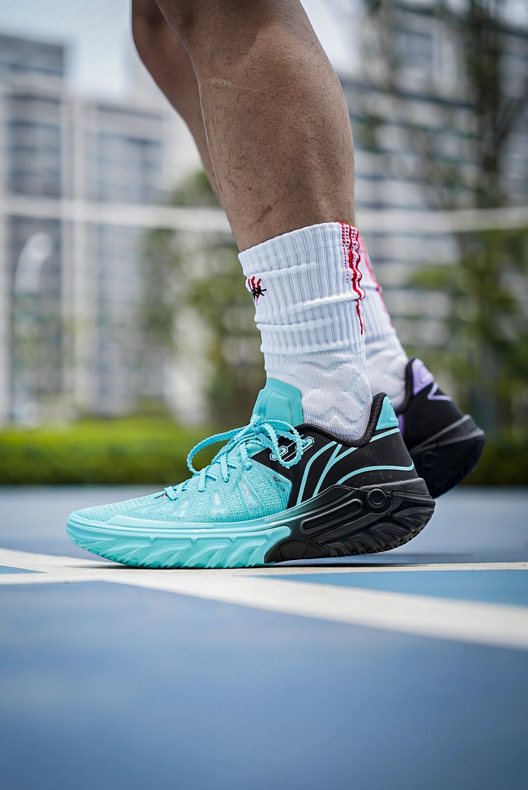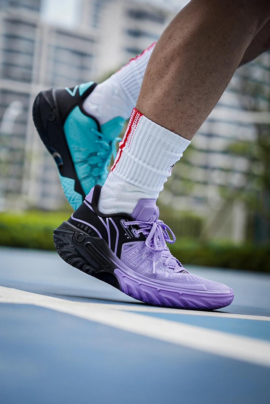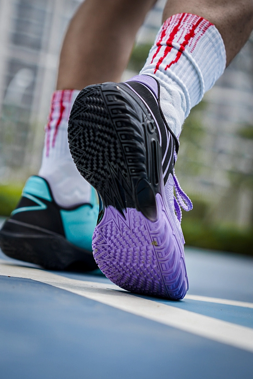 现在一说起外场球鞋,那我首先想到的肯定是桀骜了,这次2代在外观上变得更粗犷,但滚动感却也增加了,这双【毒蝎】配色,紫绿鸳鸯的设计,颜值确实很帅。 2代最重要的就是中底升级为全掌䨻,打外场的差别更加明显,缓震脚感更好,初上脚就能感知前掌回弹与后跟缓冲的平衡。PROBAR LOC稳定系统搭配侧面一块长条形TPU,优化横向支撑纵向抗扭,配合弧形外底设计,灵活性有显著提升。 TUFF OS外底延续粗犷纹...