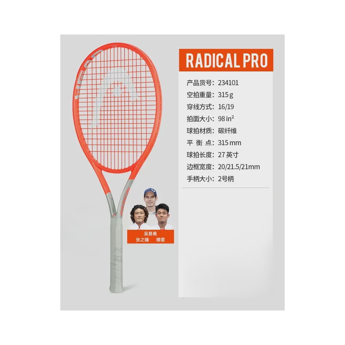 本篇笔记关联了HEAD/海德 RADICAL 限量款 专业级 耐打 稳定 经久耐用 手感舒适 全碳素 耐用 单人 拍重 网球拍 234101 RADICAL PRO橙白等商品,为用户提供真实的使用体验和购买参考。